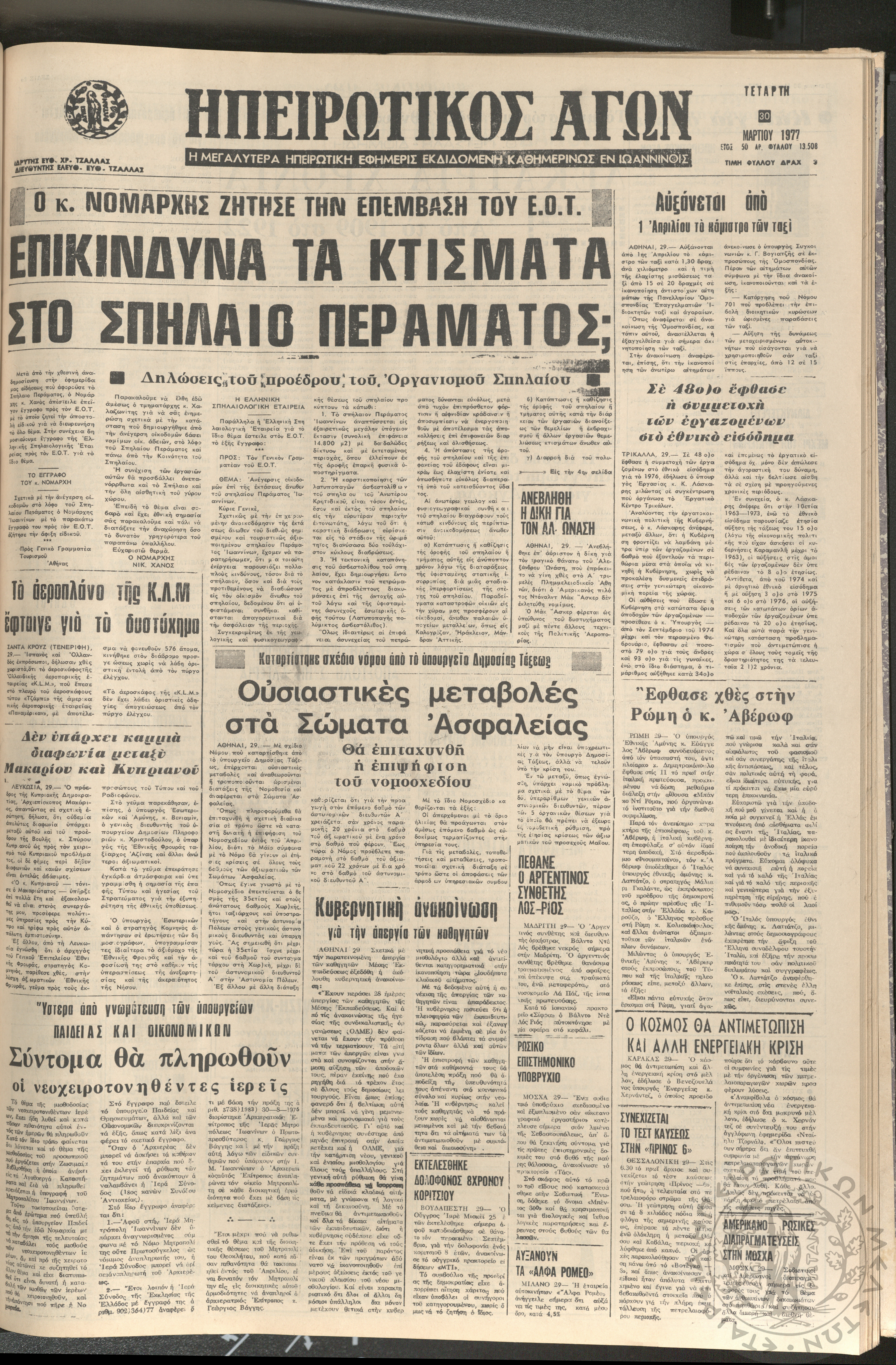 Ηπειρωτικός Αγών: η μεγαλυτέρα ηπειρωτική εφημερίς εκδιδόμενη καθημερινώς εν Ιωαννίνοις 1977 (φ. 13508)Έτος 50, Φ. 13508...