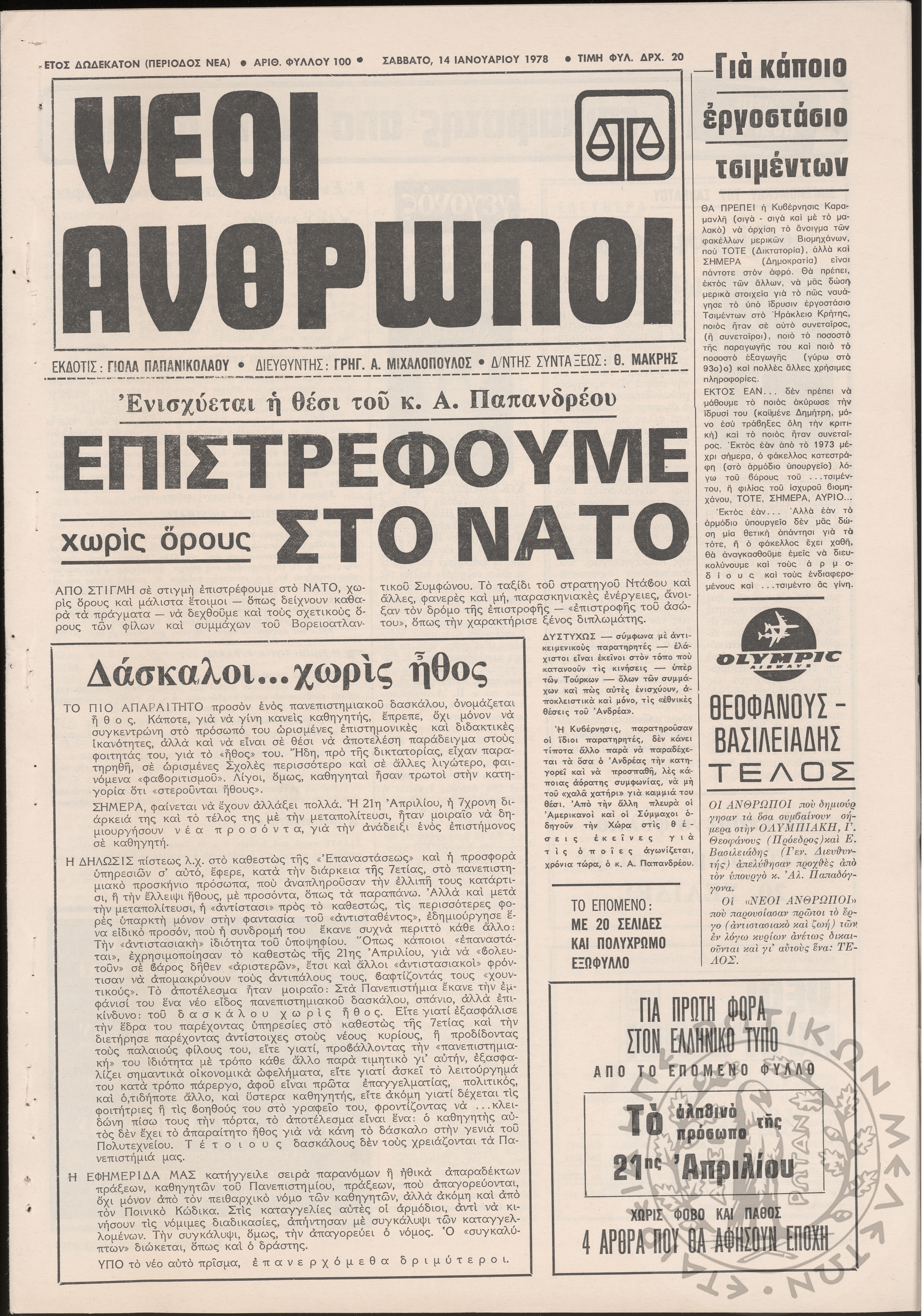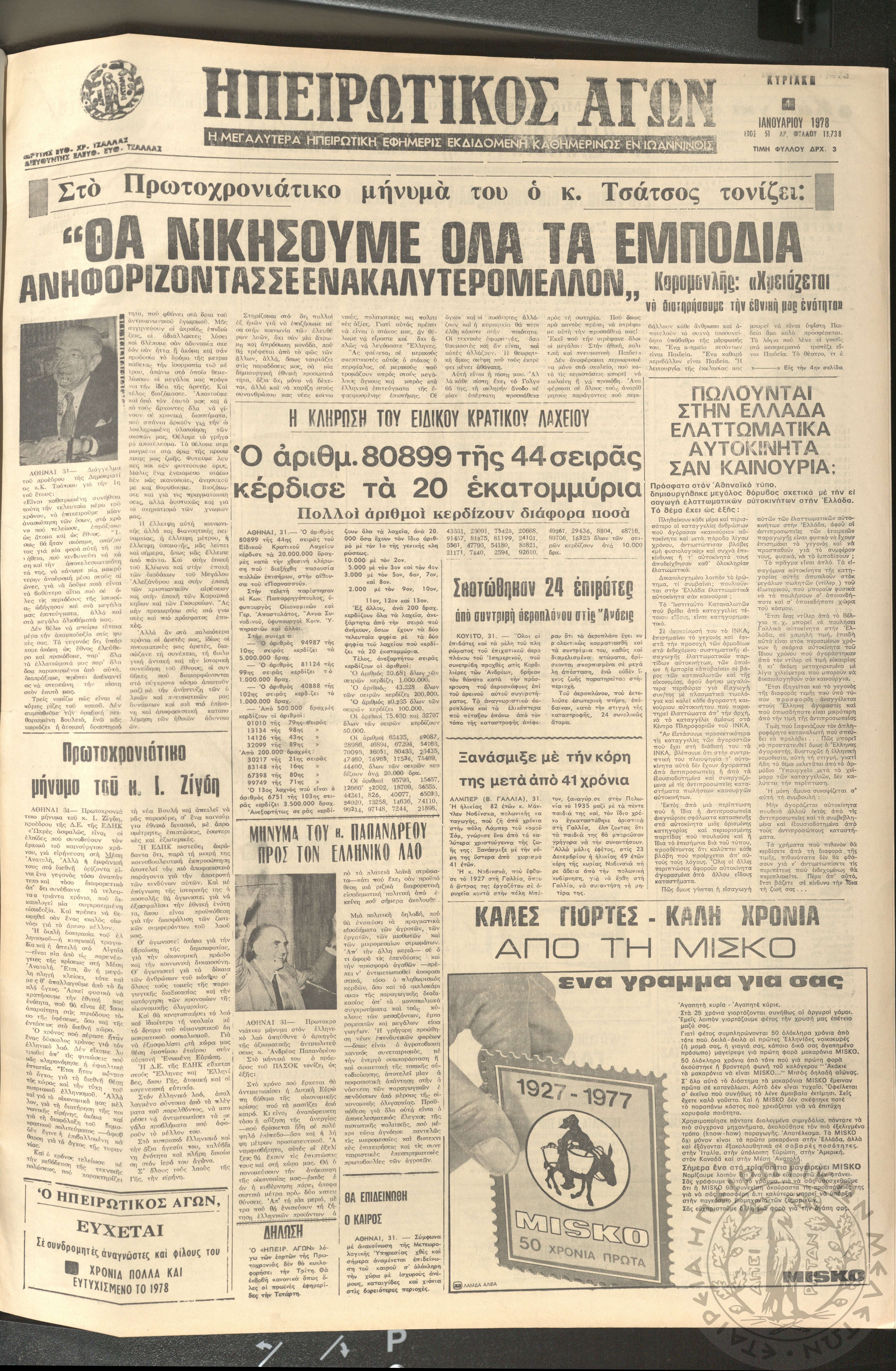 Ηπειρωτικός Αγών: η μεγαλυτέρα ηπειρωτική εφημερίς εκδιδόμενη καθημερινώς εν Ιωαννίνοις, 1978, φ. 13738Έτος 51, φ. 13738...