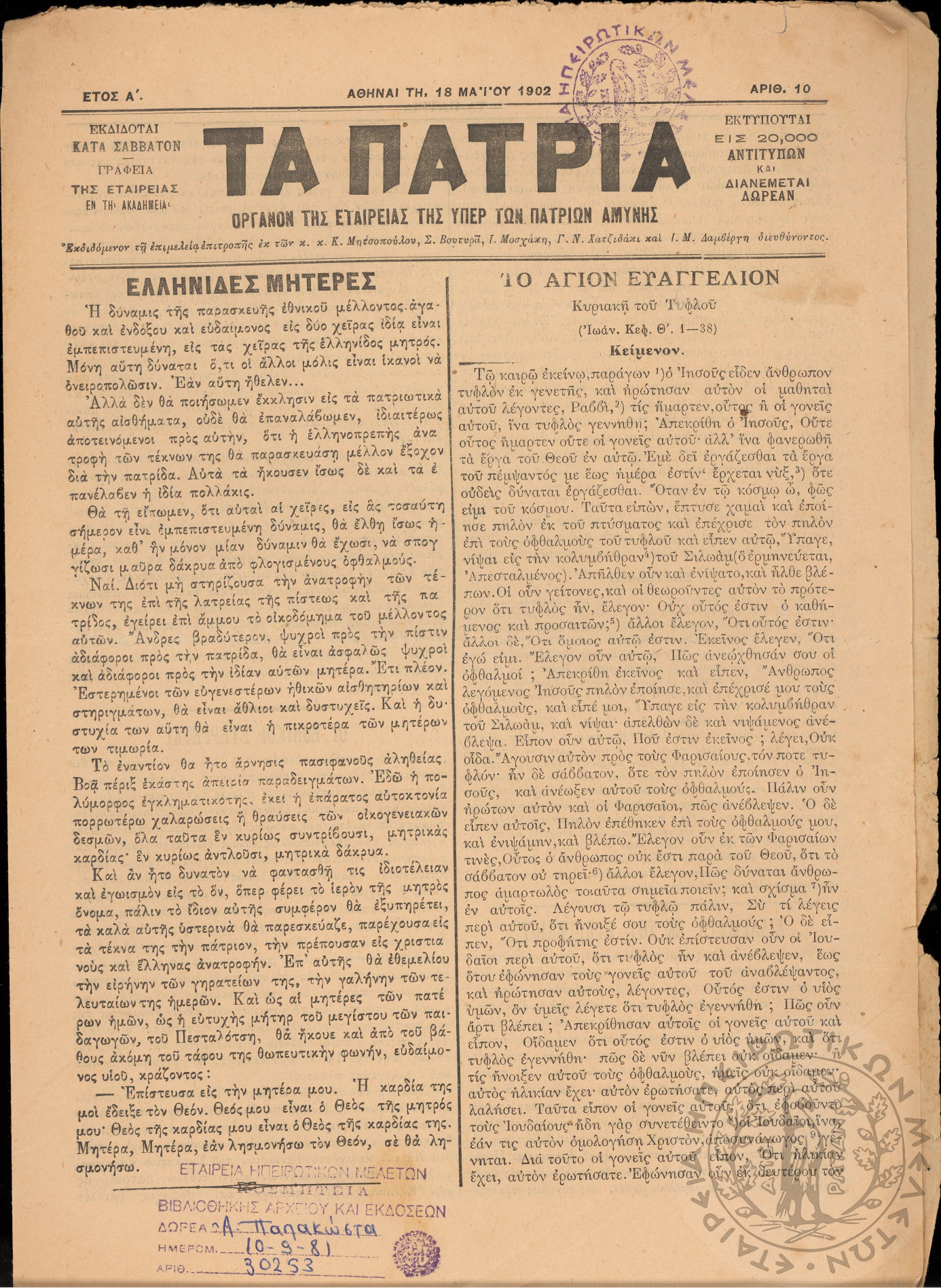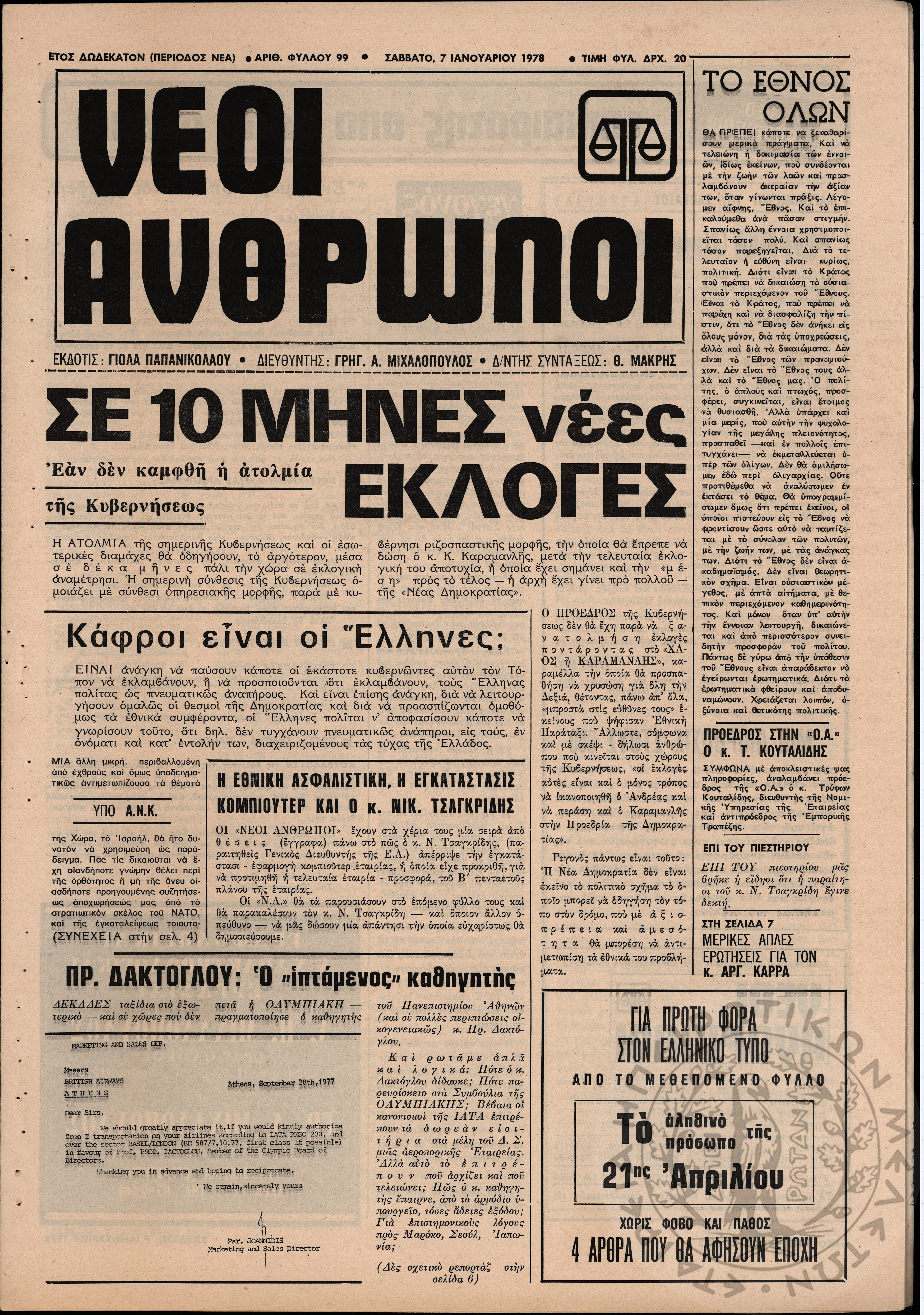Ηπειρωτικός Αγών: η μεγαλυτέρα ηπειρωτική εφημερίς εκδιδόμενη καθημερινώς εν Ιωαννίνοις, 1978, φ. 13810Έτος 51, φ. 13810...