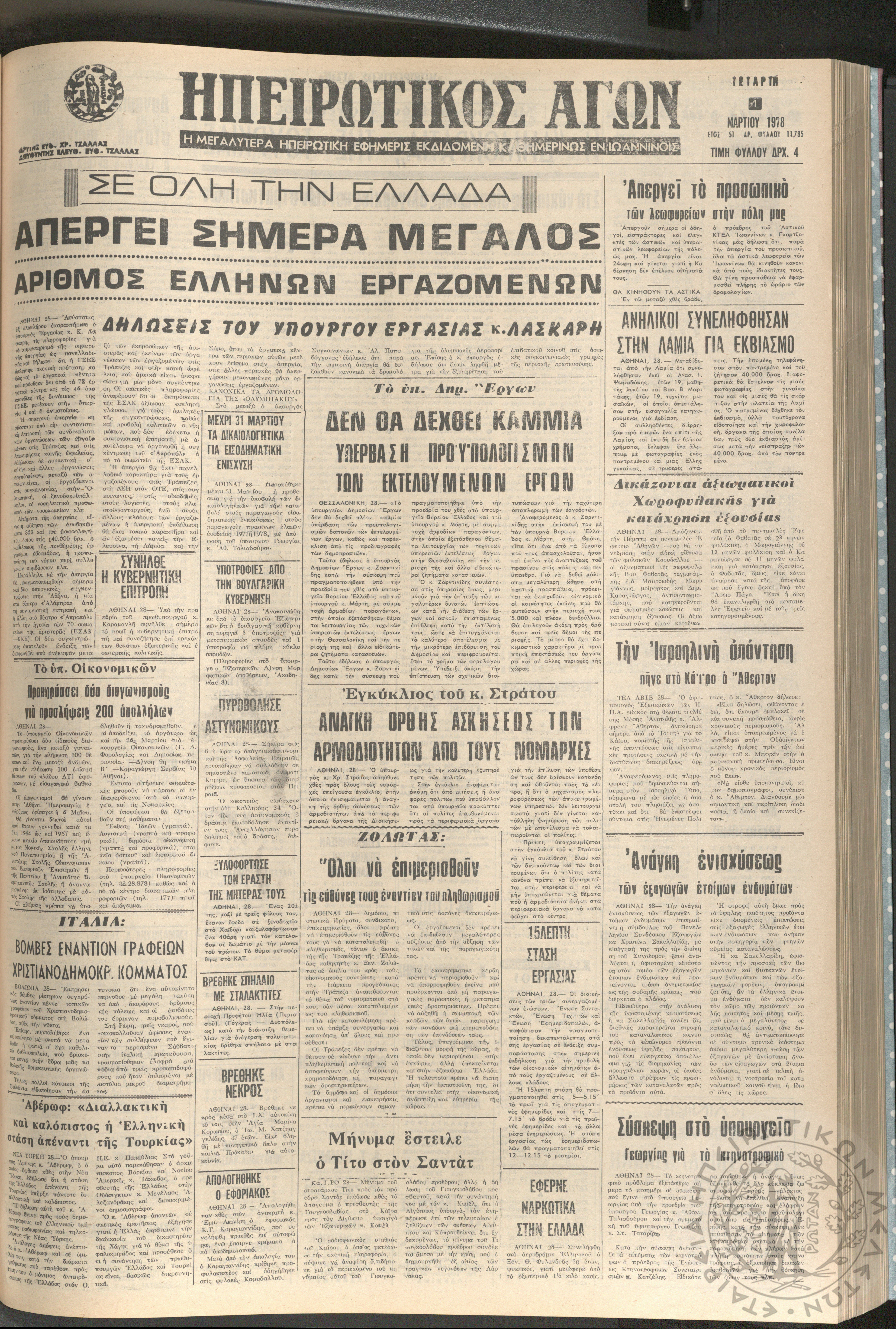 Ηπειρωτικός Αγών: η μεγαλυτέρα ηπειρωτική εφημερίς εκδιδόμενη καθημερινώς εν Ιωαννίνοις, 1978, φ. 13785Έτος 51, φ. 13785...