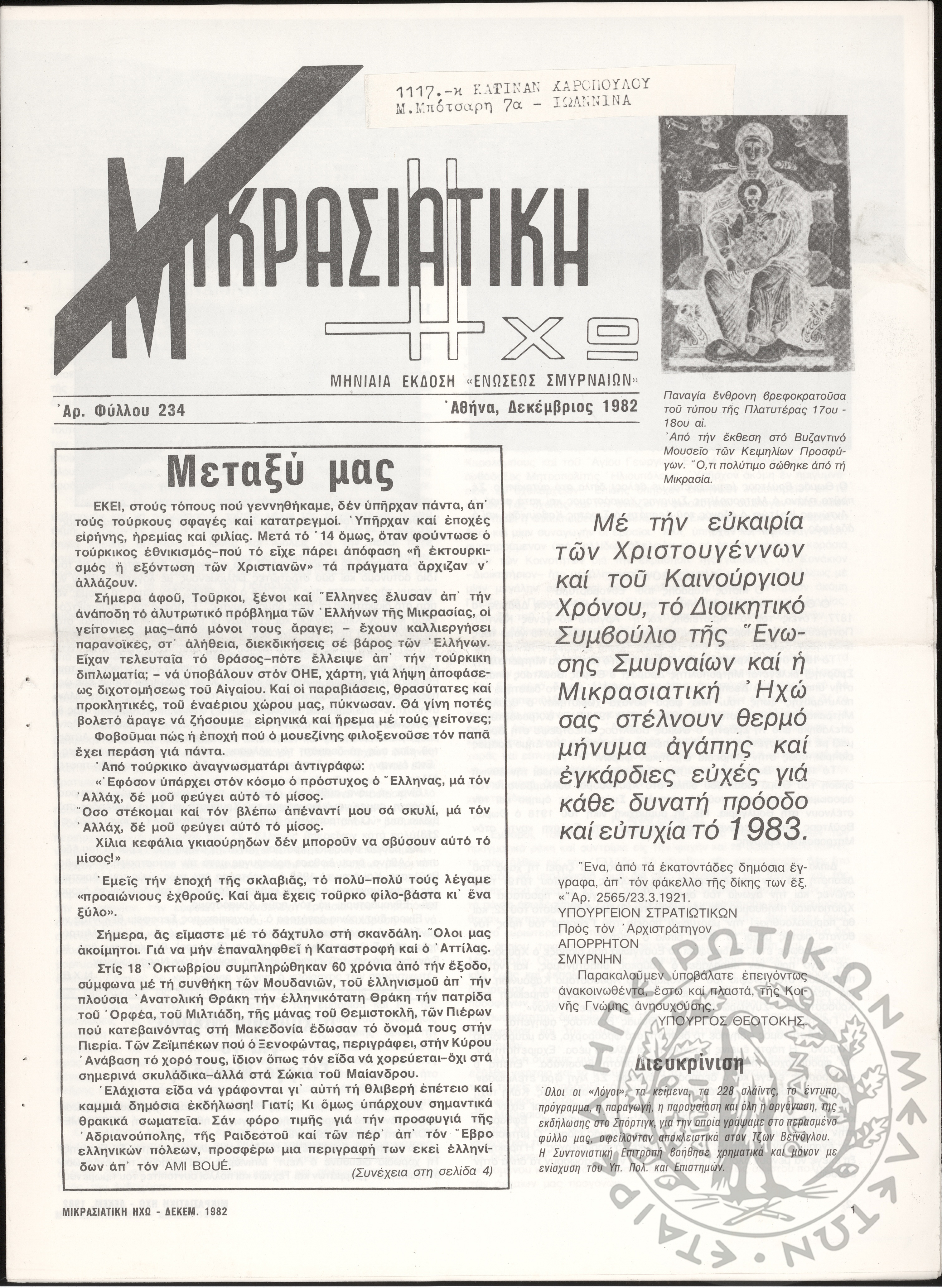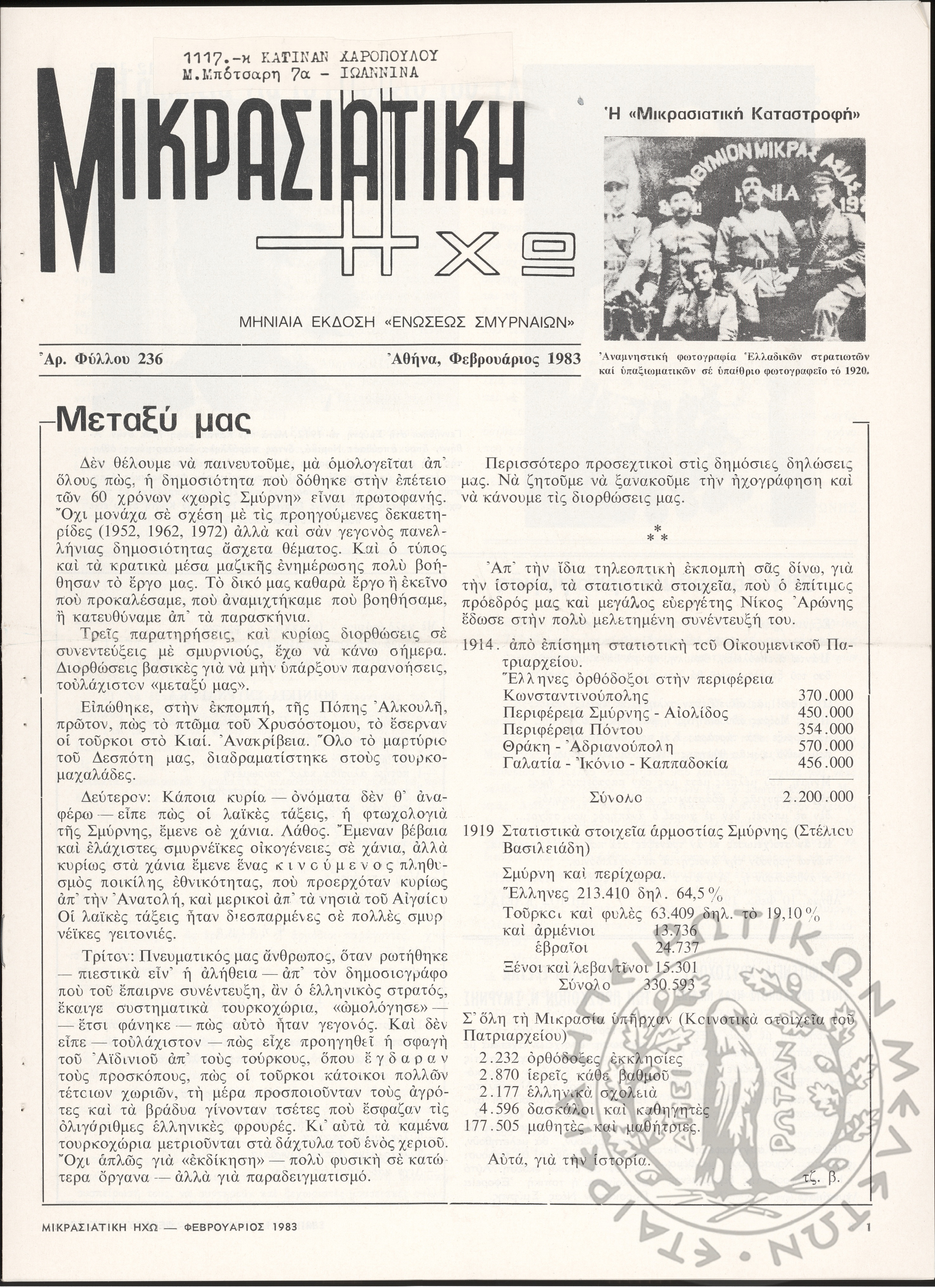 Ηπειρωτικός Αγών: η μεγαλυτέρα ηπειρωτική εφημερίς εκδιδόμενη καθημερινώς εν Ιωαννίνοις 1977 (φ. 13460)Έτος 50, Φ. 13460...