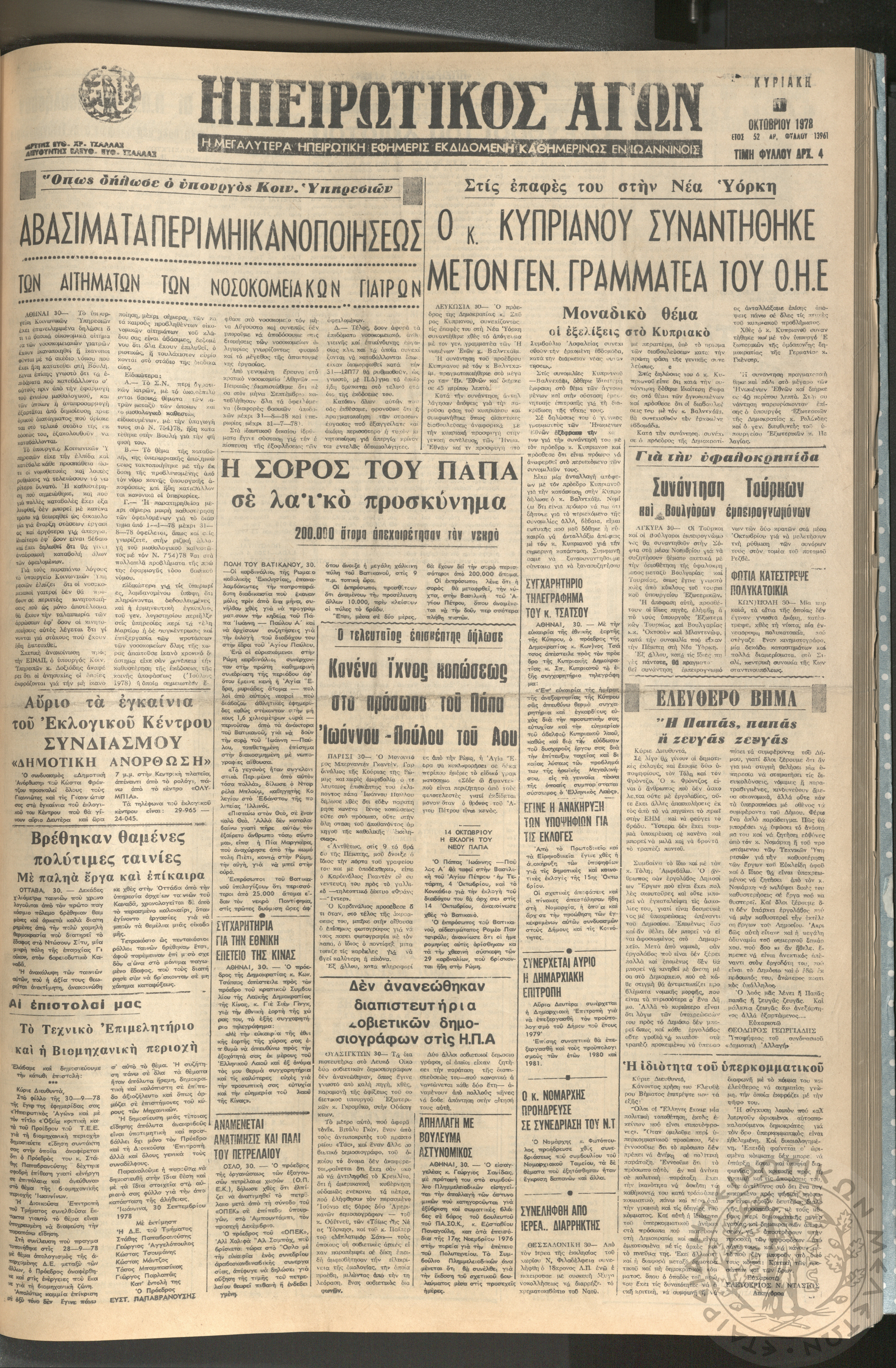 Ηπειρωτικός Αγών: η μεγαλυτέρα ηπειρωτική εφημερίς εκδιδόμενη καθημερινώς εν Ιωαννίνοις, 1978, φ. 13860Έτος 51, φ. 13860...