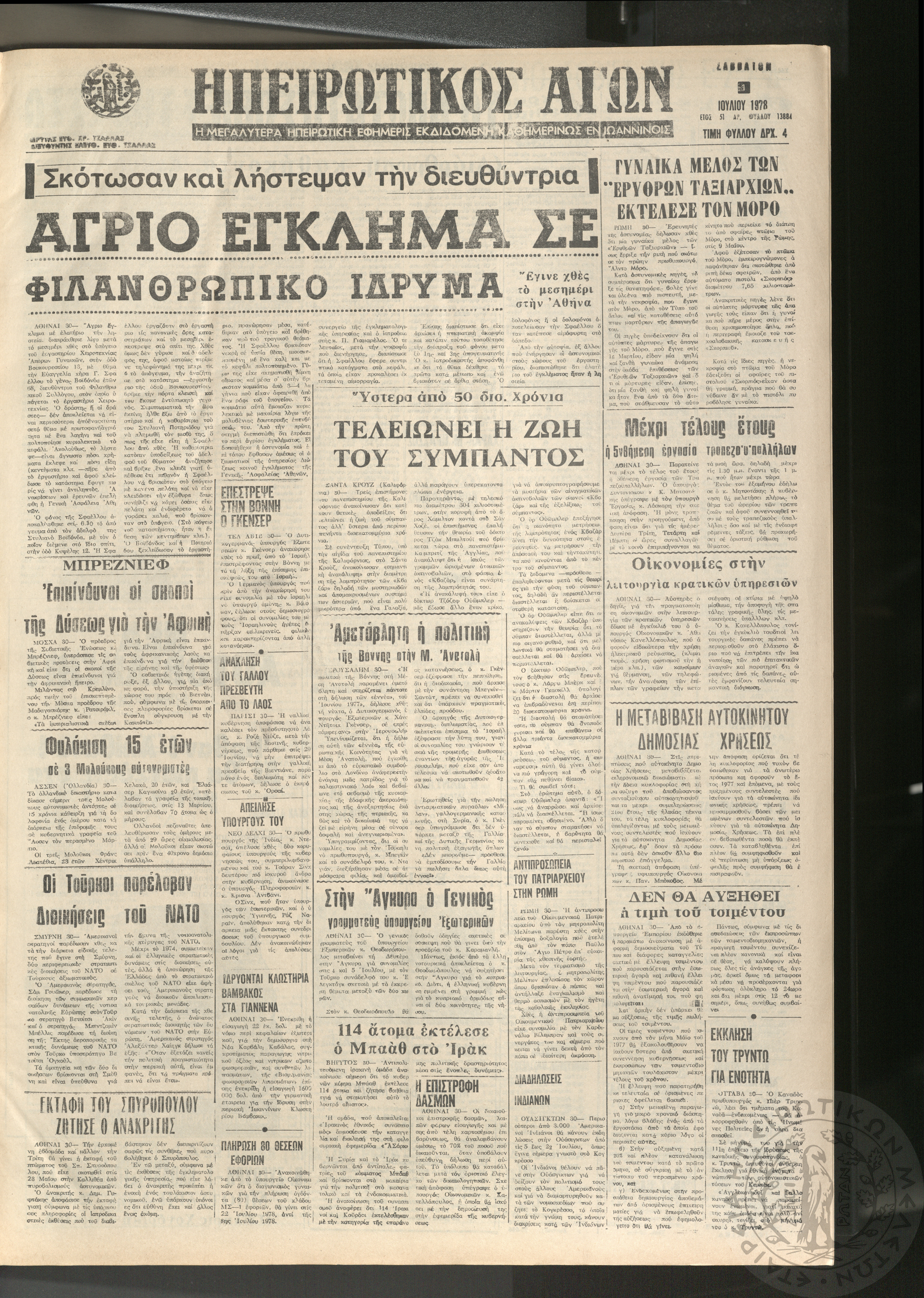 Ηπειρωτικός Αγών: η μεγαλυτέρα ηπειρωτική εφημερίς εκδιδόμενη καθημερινώς εν Ιωαννίνοις, 1978, φ. 13884Έτος 51, φ. 13884...