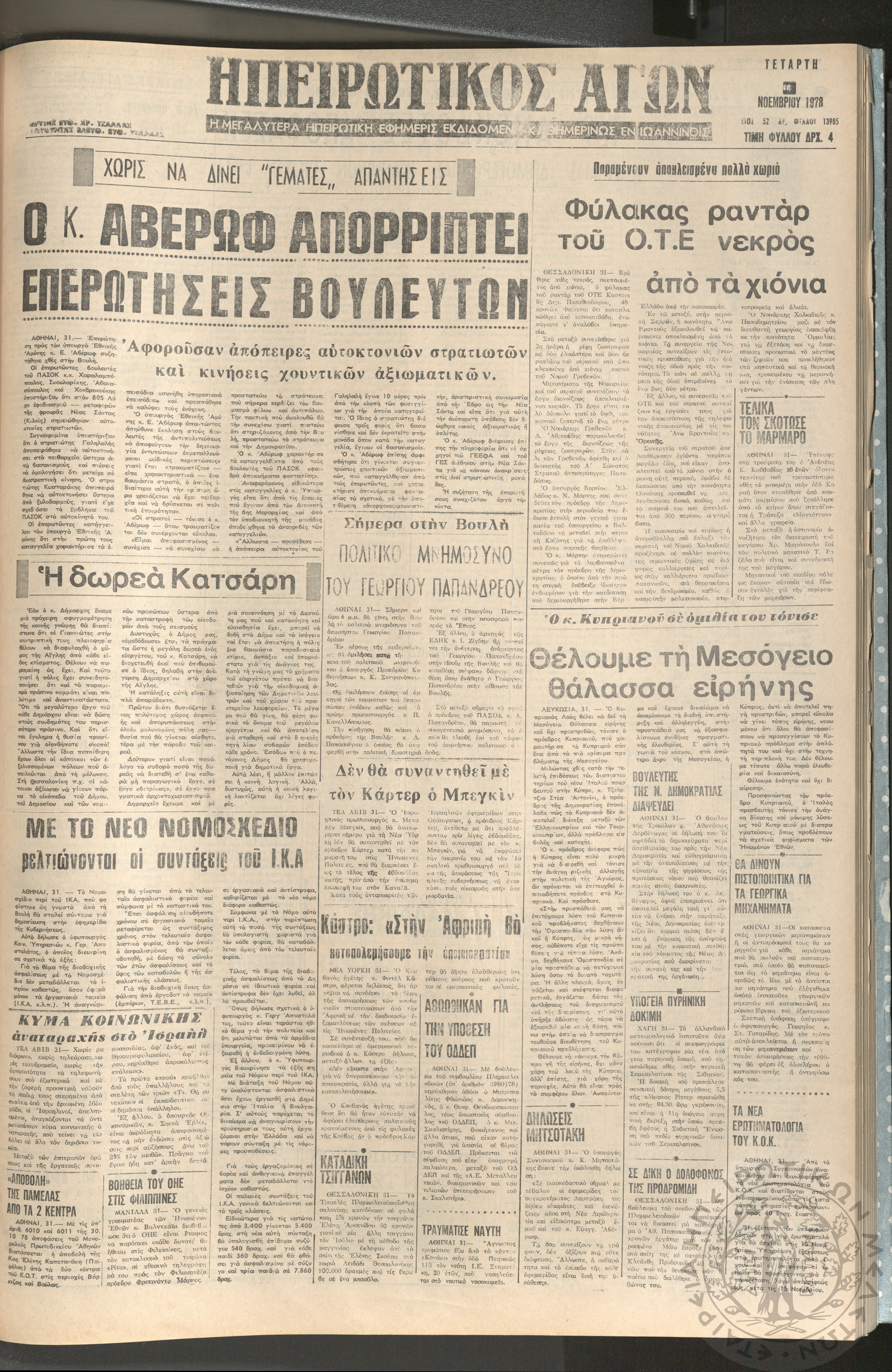Ηπειρωτικός Αγών: η μεγαλυτέρα ηπειρωτική εφημερίς εκδιδόμενη καθημερινώς εν Ιωαννίνοις, 1978, φ. 13985Έτος 52, φ. 13985...