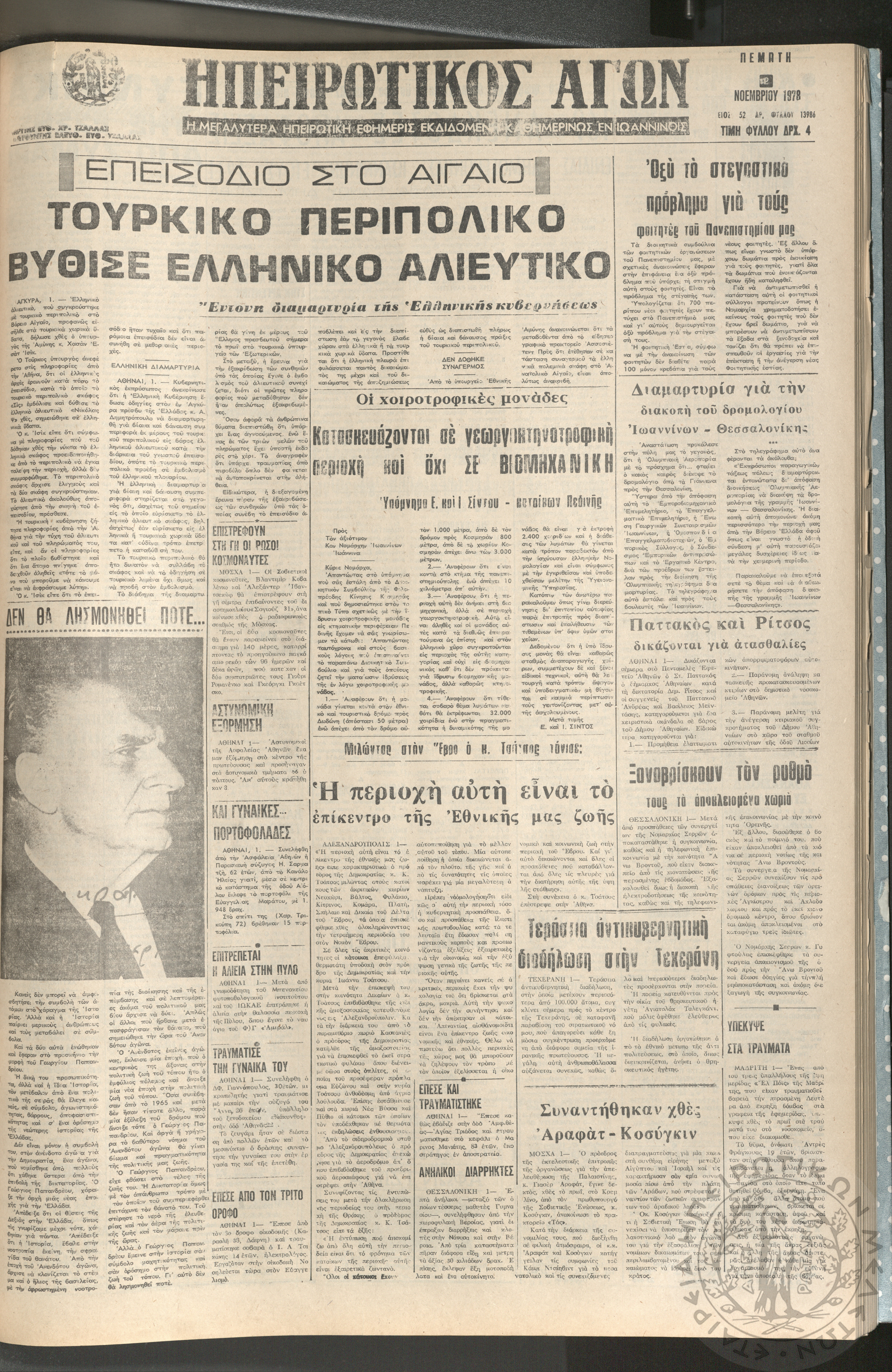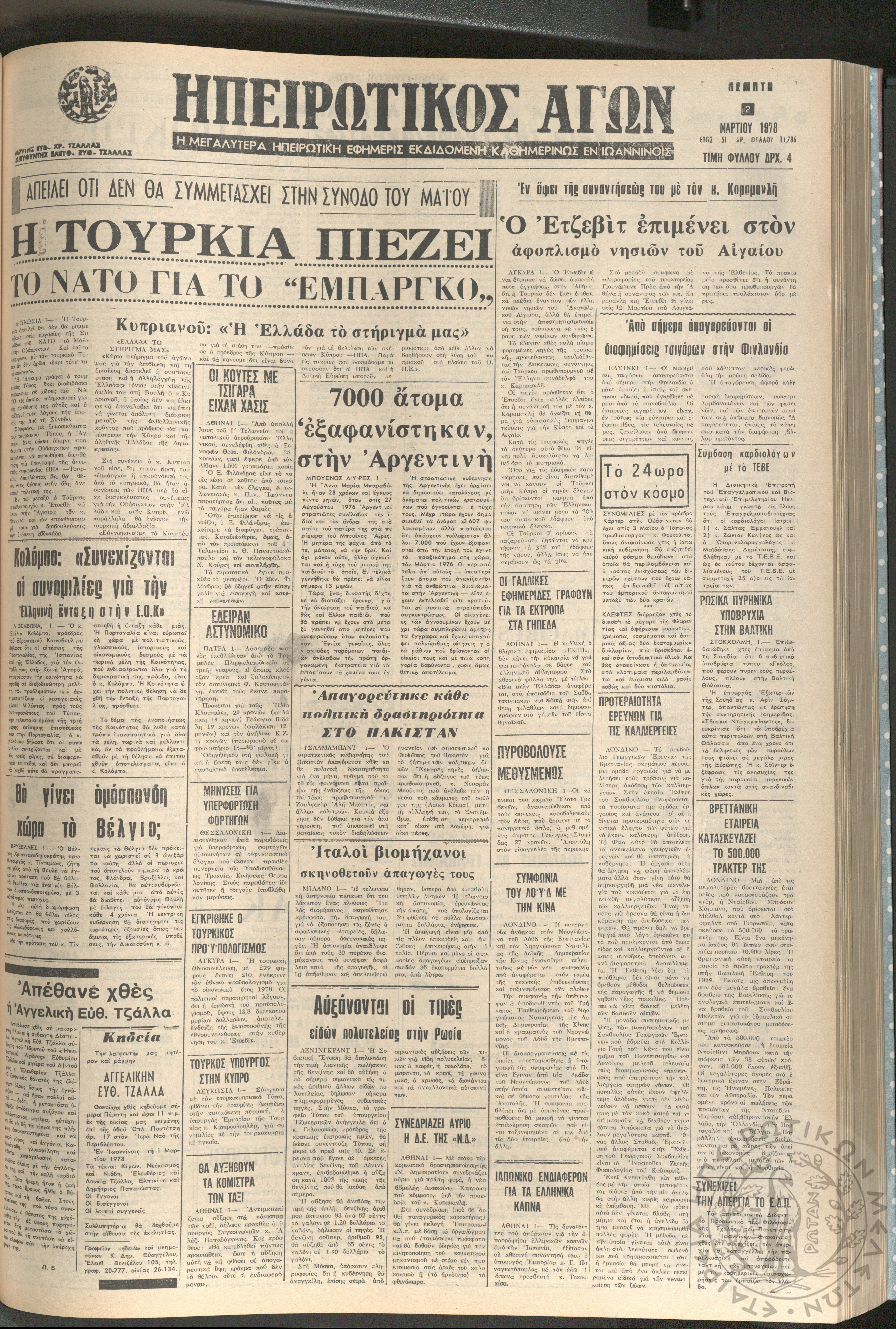 Ηπειρωτικός Αγών: η μεγαλυτέρα ηπειρωτική εφημερίς εκδιδόμενη καθημερινώς εν Ιωαννίνοις, 1978, φ. 13786Έτος 51, φ. 13786...