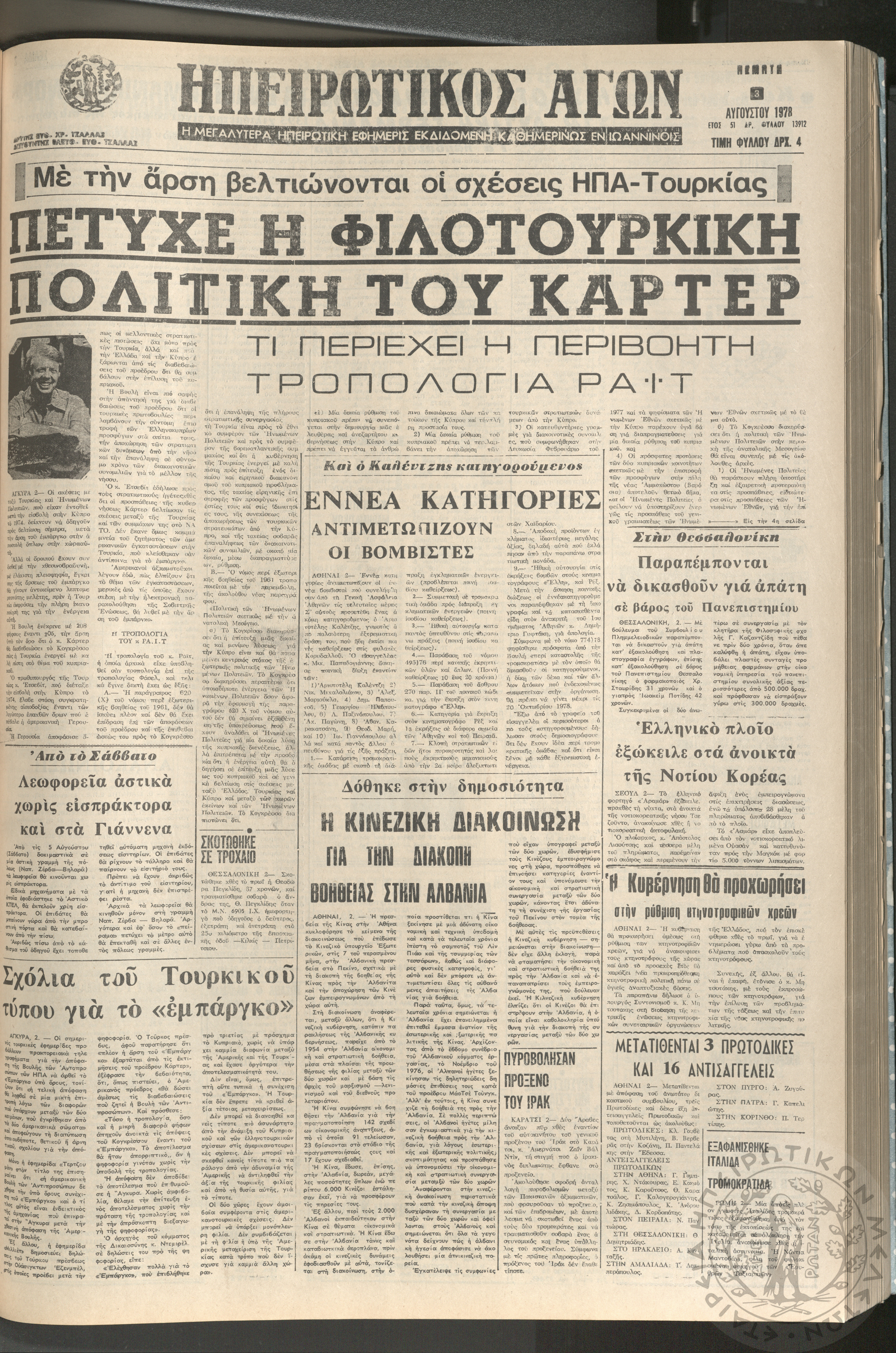 Ηπειρωτικός Αγών: η μεγαλυτέρα ηπειρωτική εφημερίς εκδιδόμενη καθημερινώς εν Ιωαννίνοις, 1978, φ. 13912Έτος 51, φ. 13912...