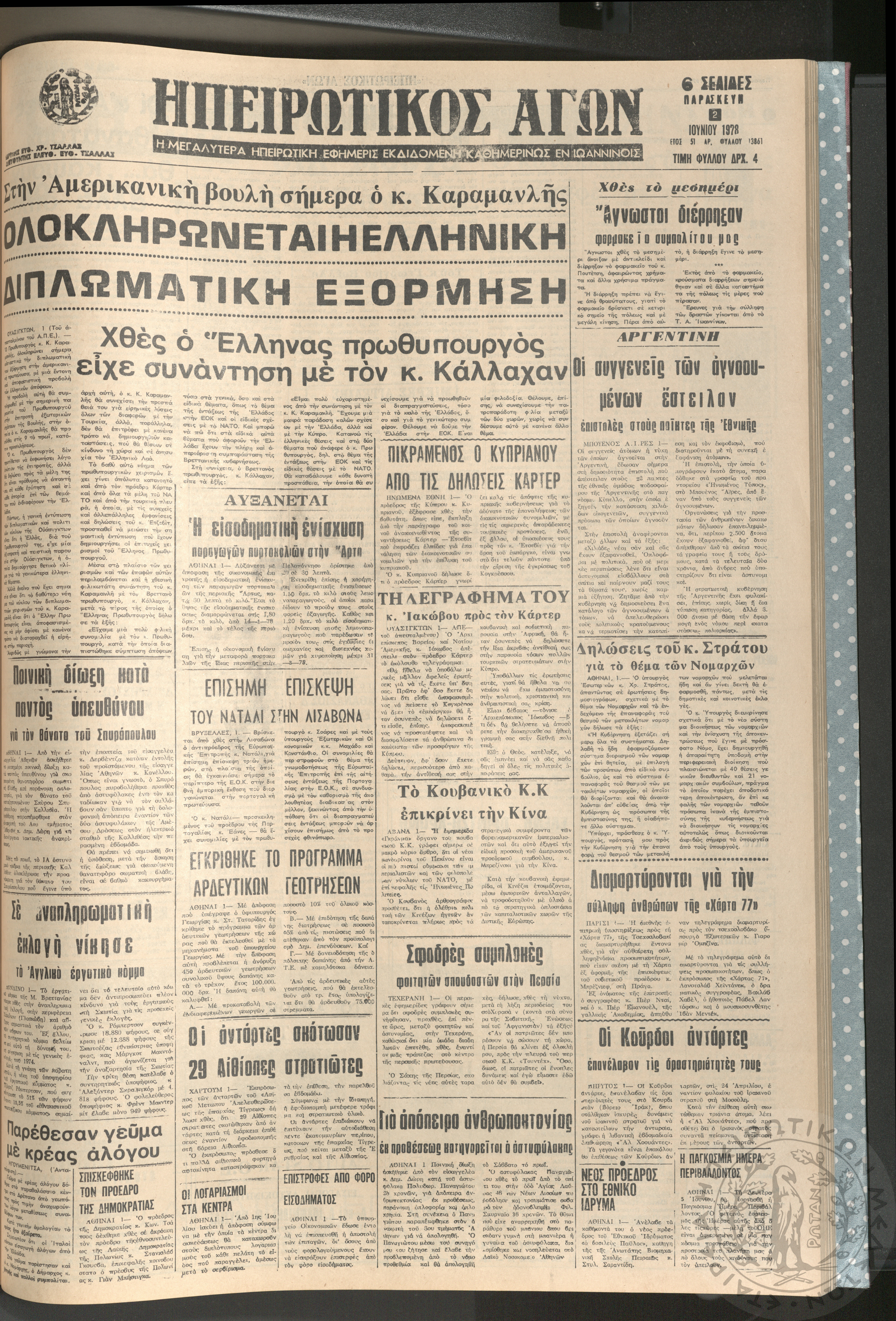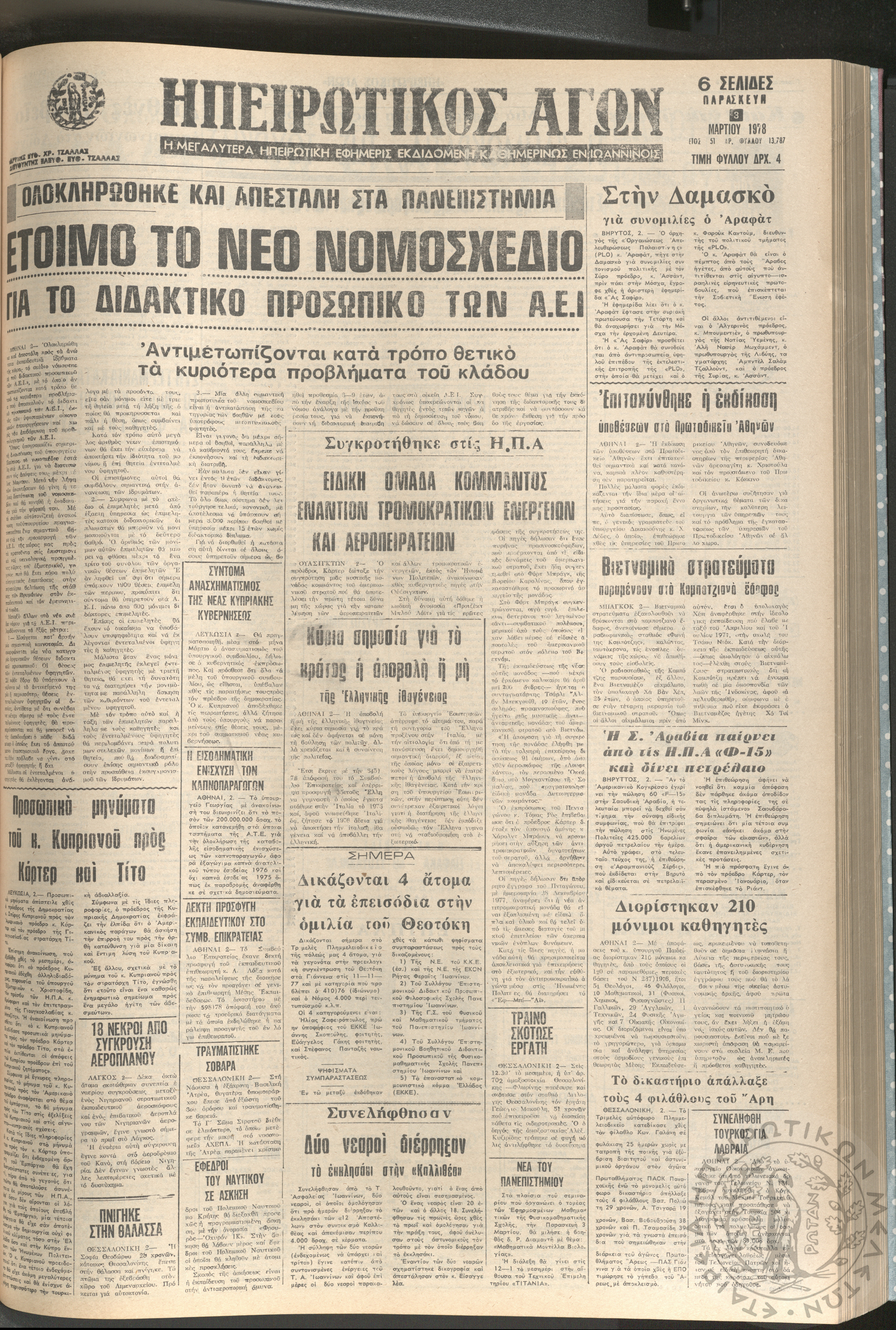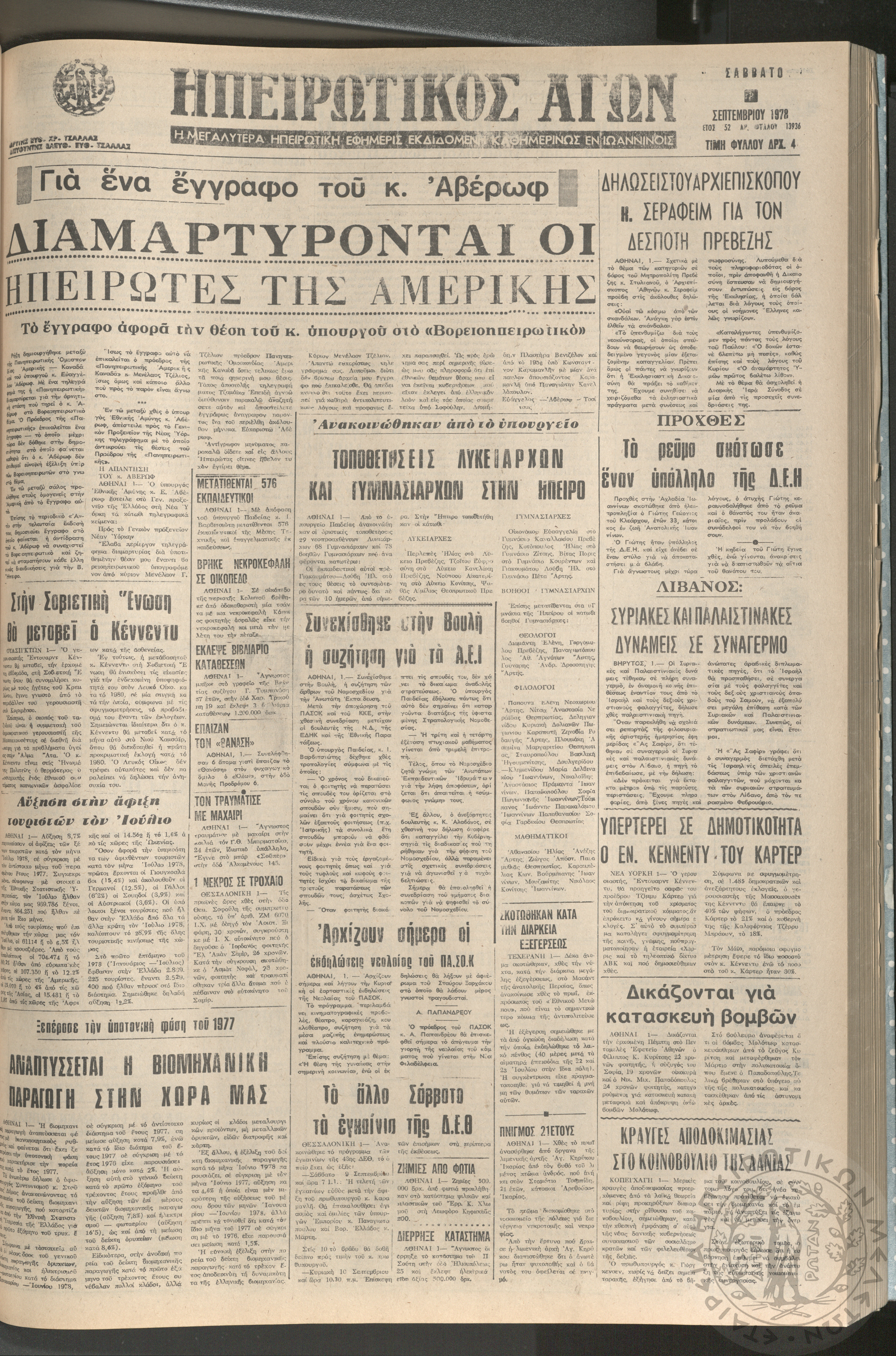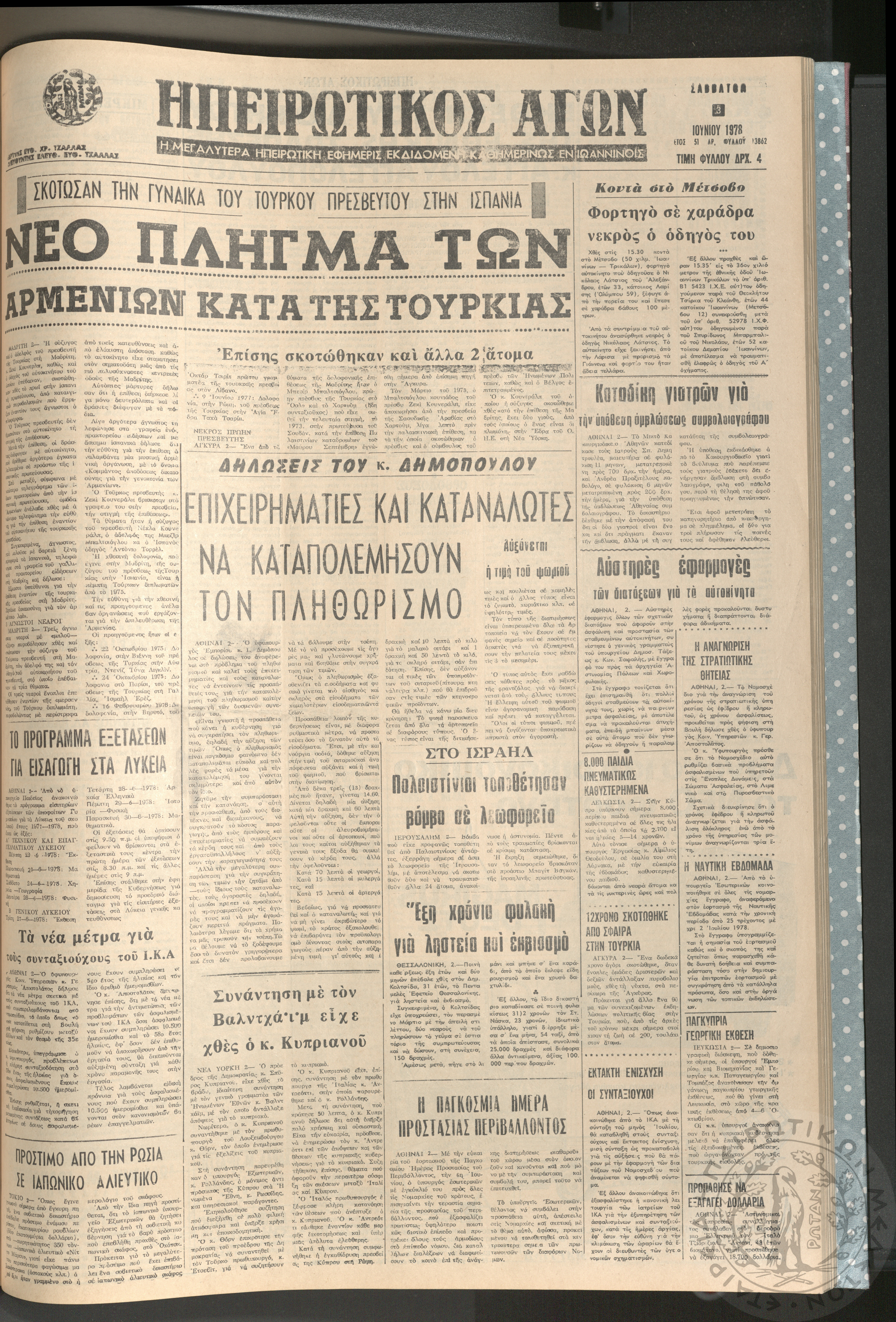 Ηπειρωτικός Αγών: η μεγαλυτέρα ηπειρωτική εφημερίς εκδιδόμενη καθημερινώς εν Ιωαννίνοις, 1978, φ. 13861Έτος 51, φ. 13861...