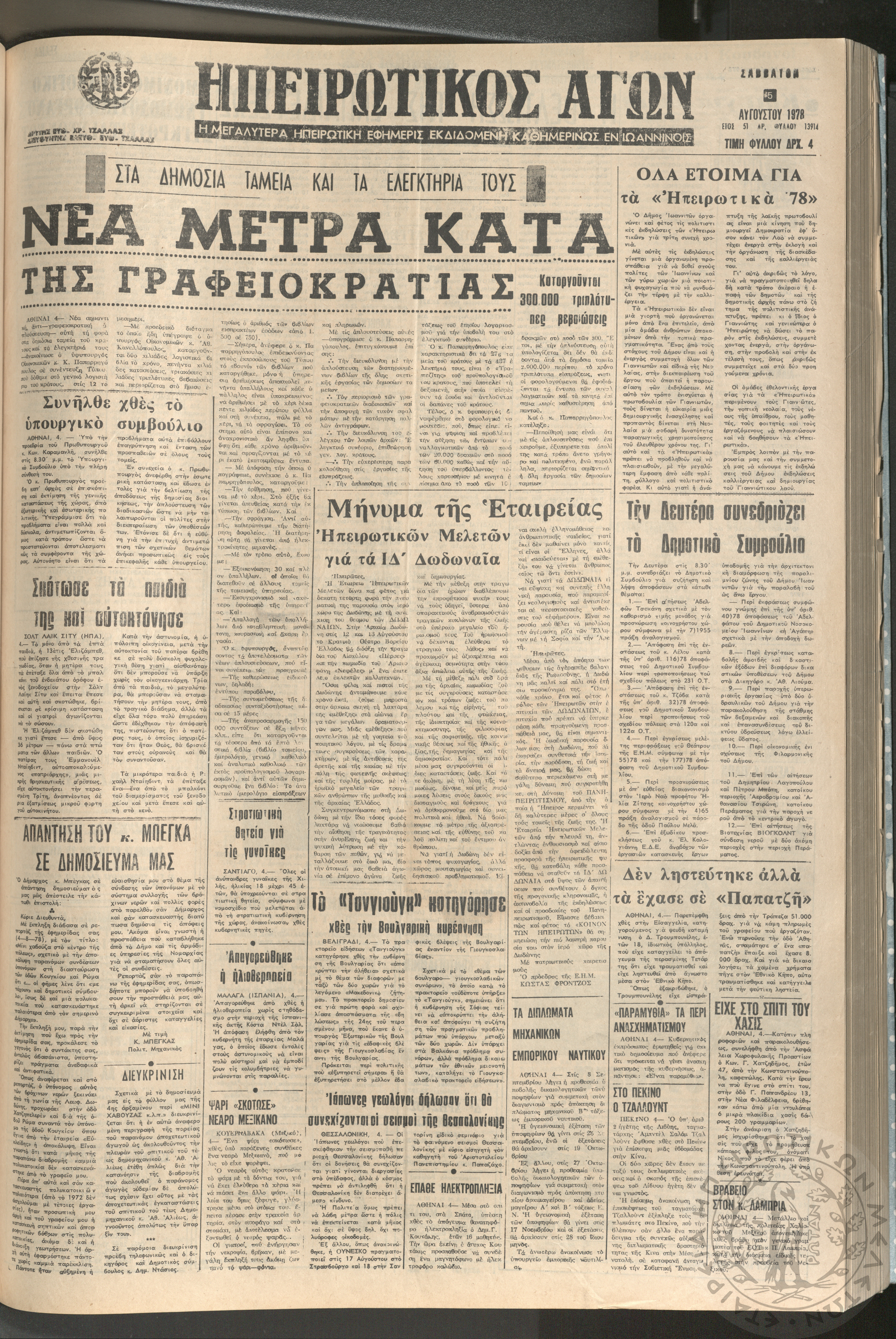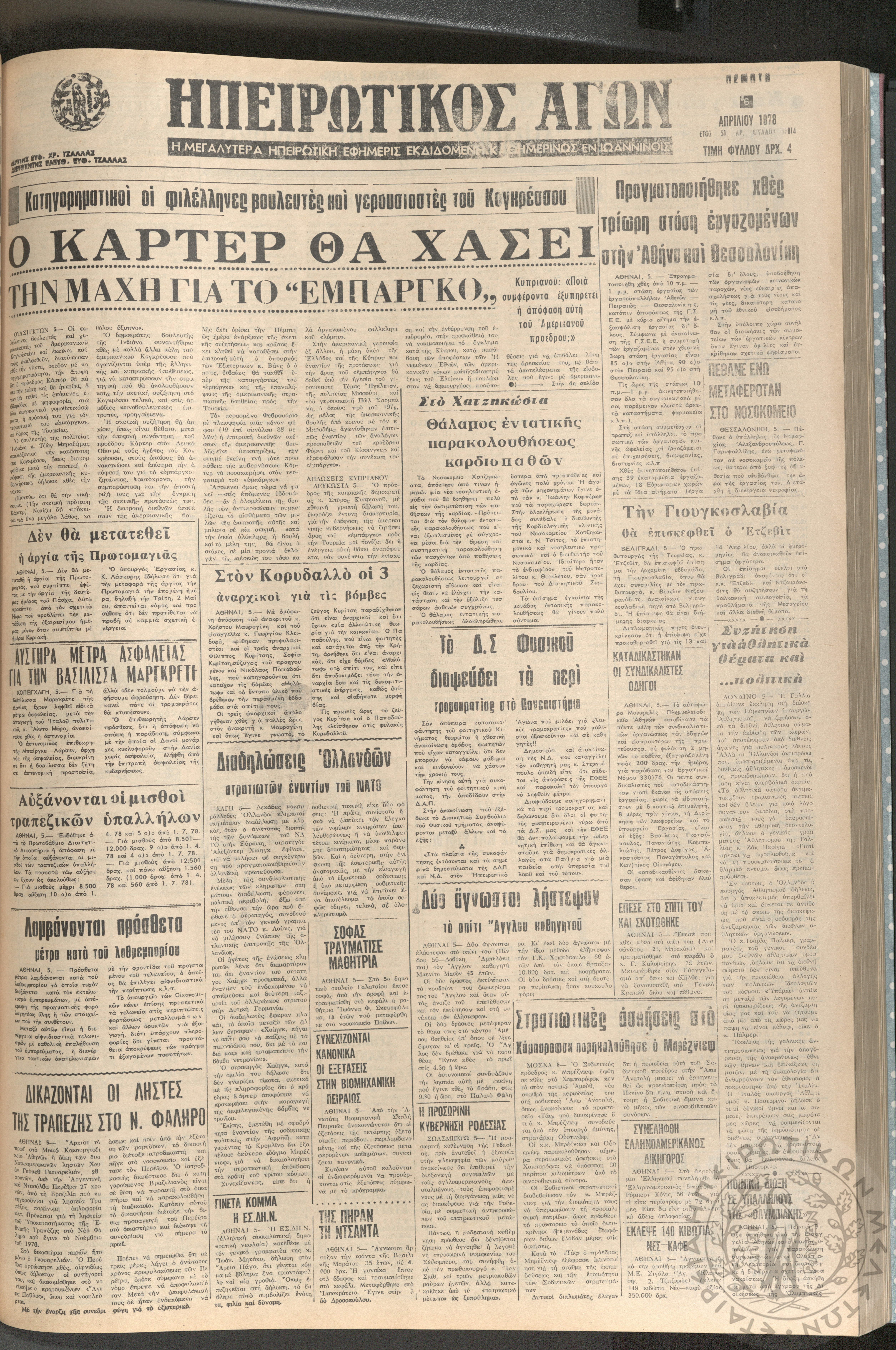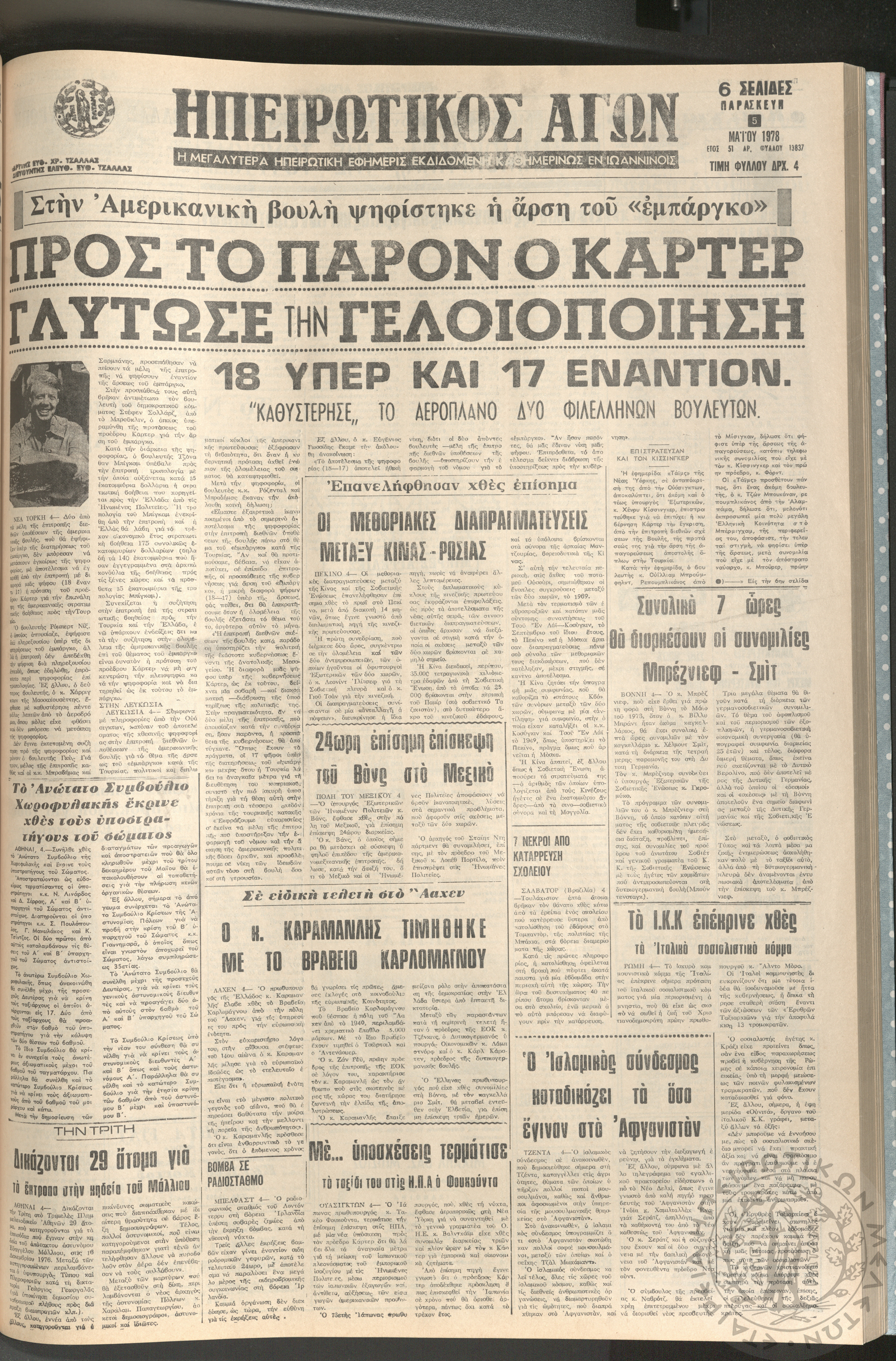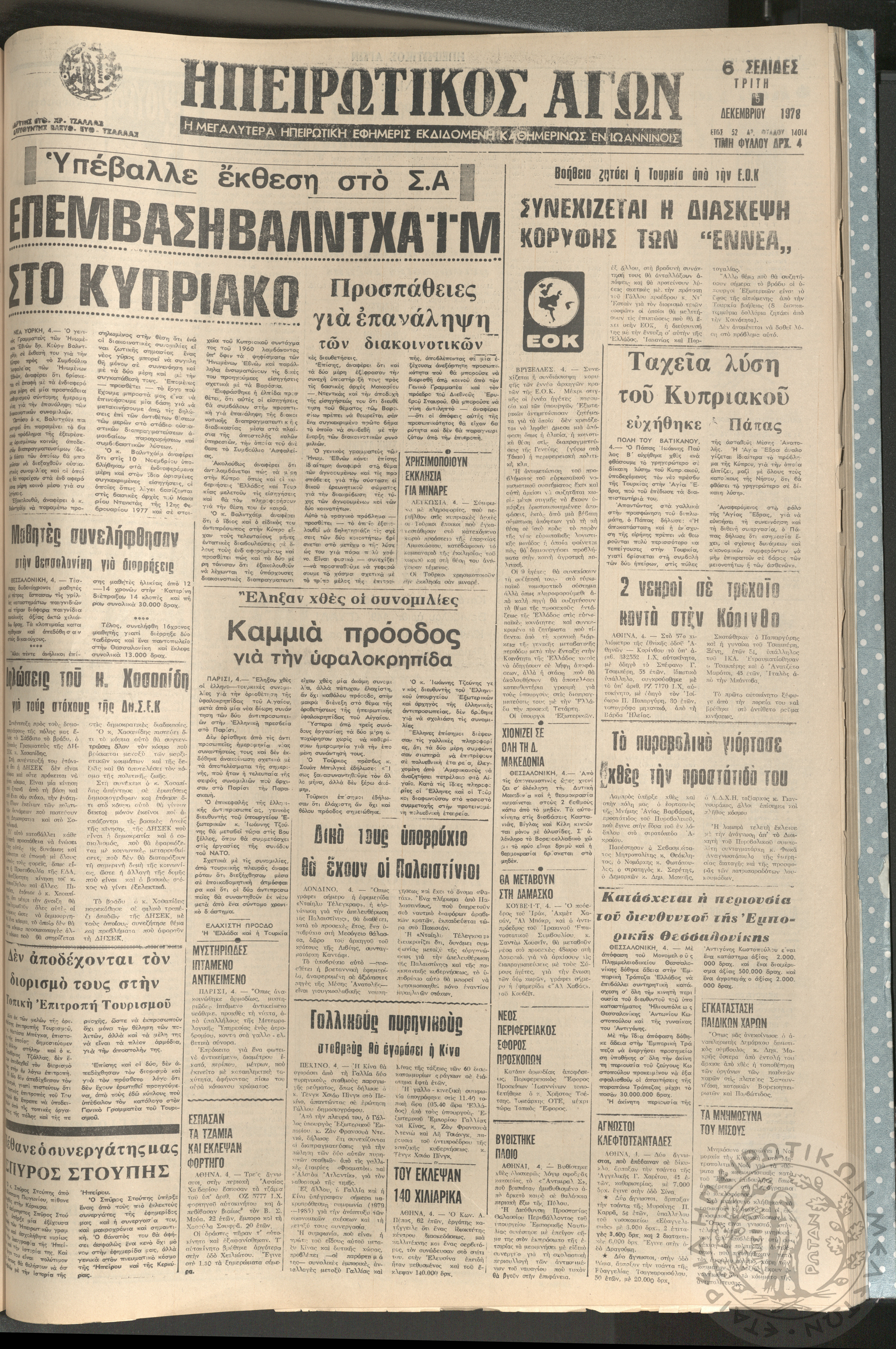 Ηπειρωτικός Αγών: η μεγαλυτέρα ηπειρωτική εφημερίς εκδιδόμενη καθημερινώς εν Ιωαννίνοις, 1978, φ. [1381]Έτος 51, φ. [1381]...