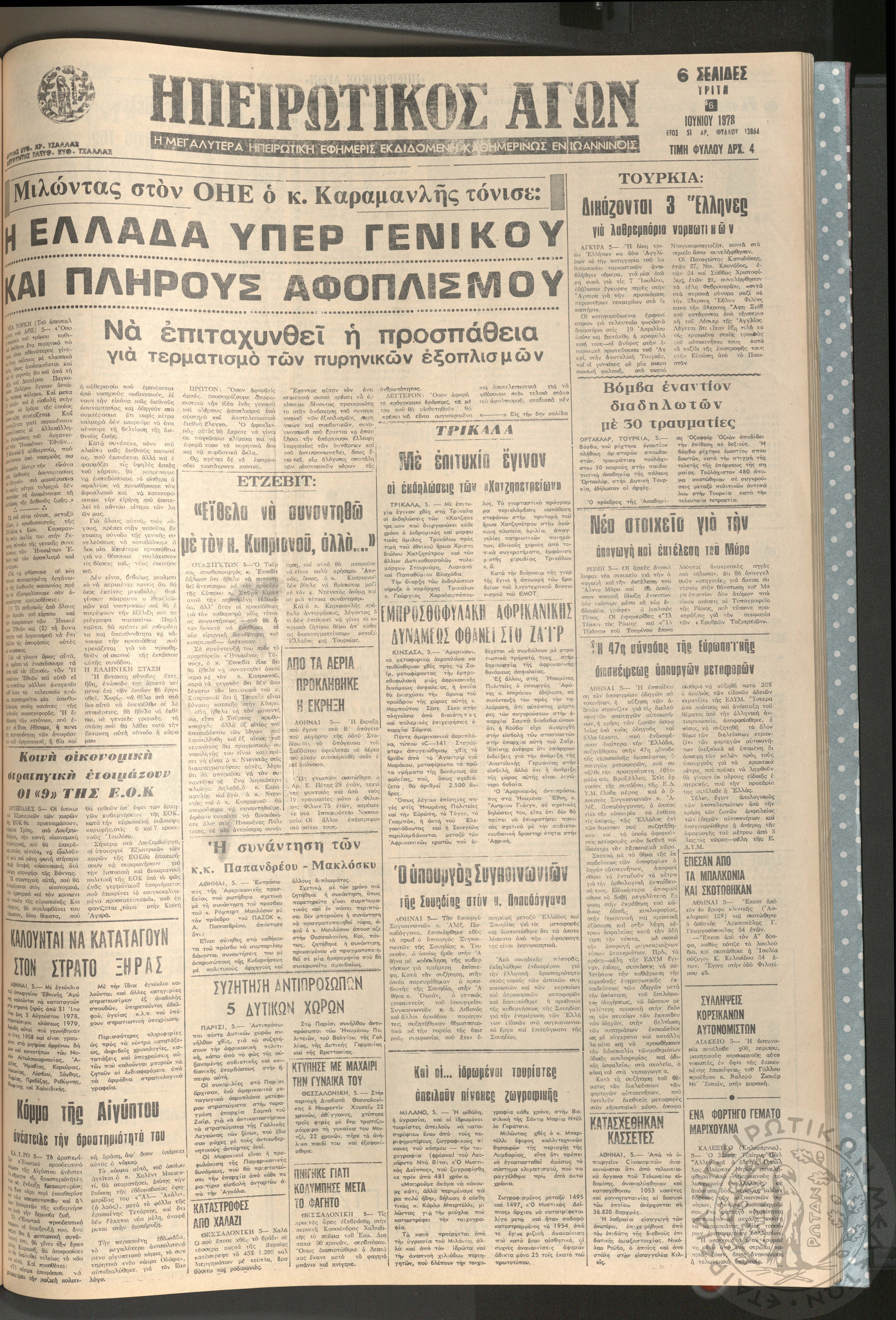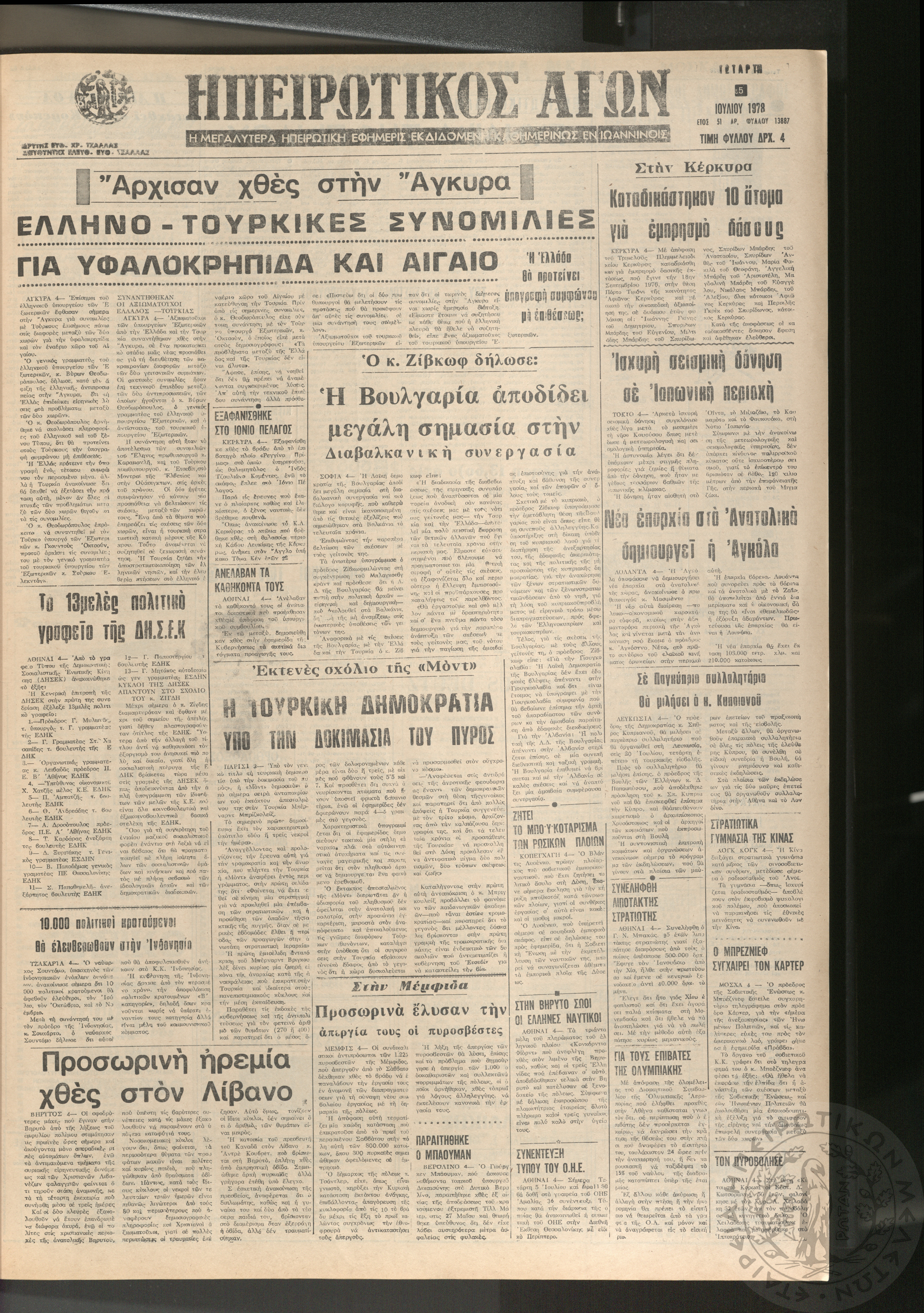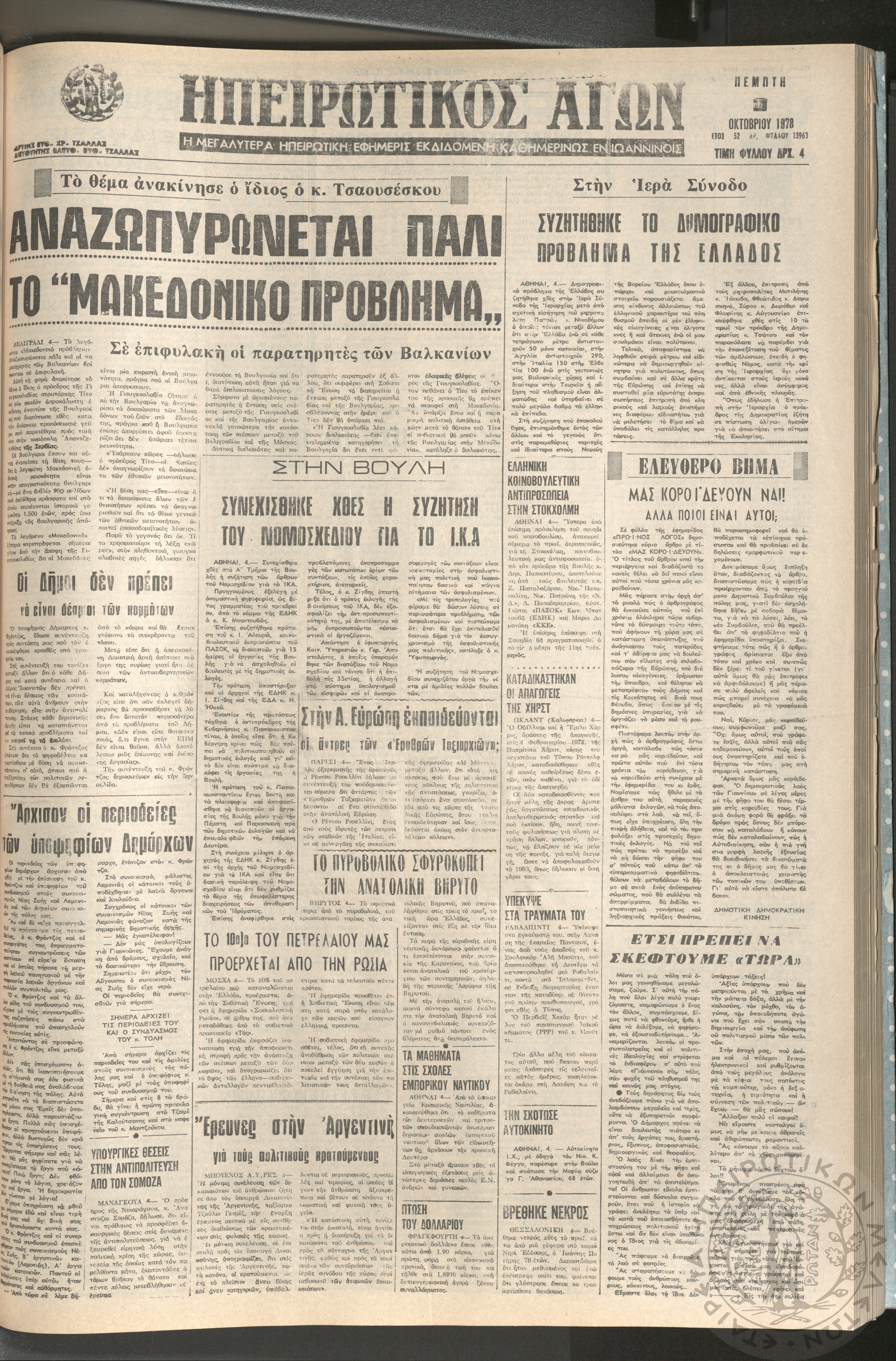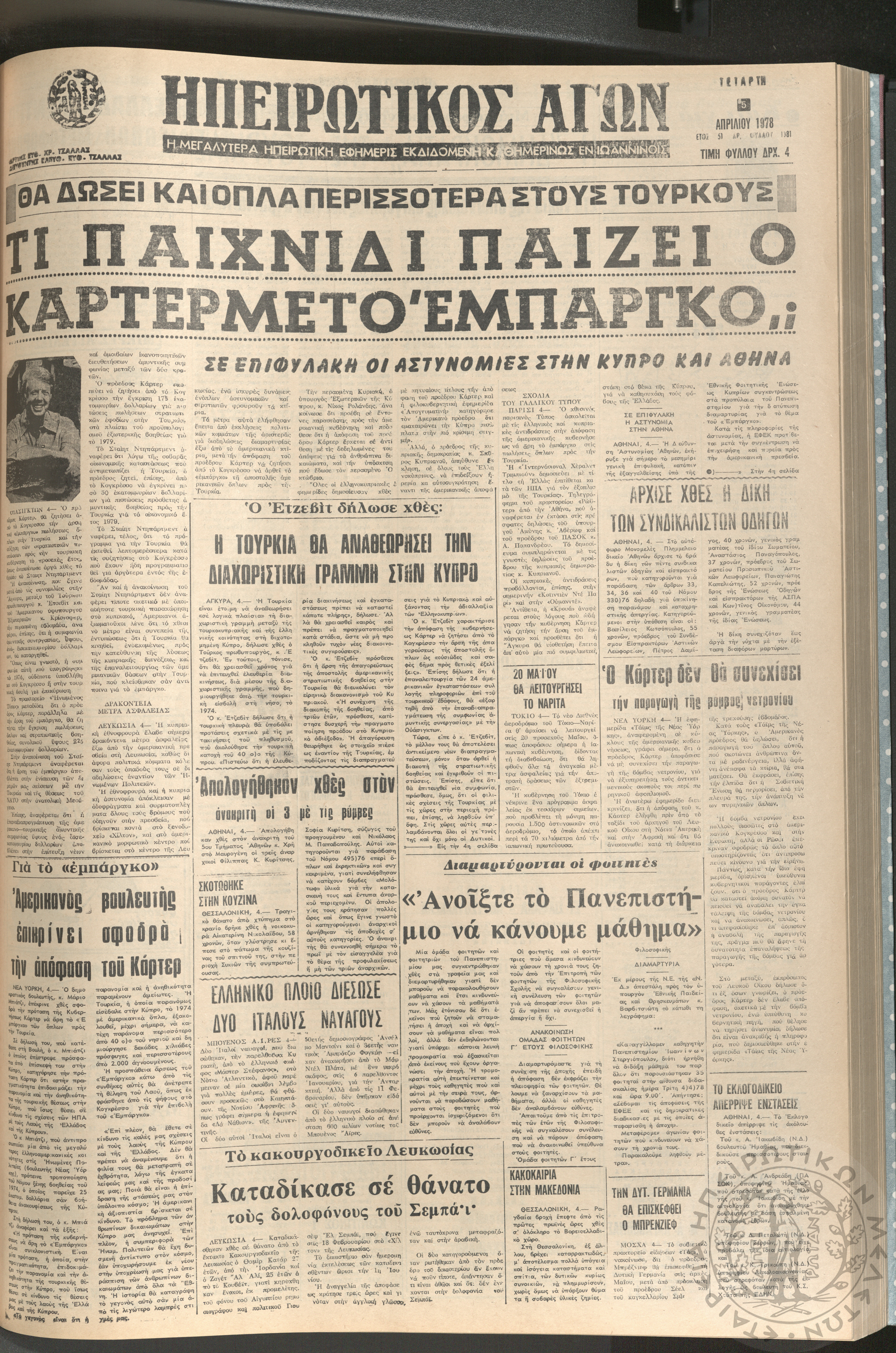 Ηπειρωτικός Αγών: η μεγαλυτέρα ηπειρωτική εφημερίς εκδιδόμενη καθημερινώς εν Ιωαννίνοις, 1978, φ. [1381]Έτος 51, φ. [1381]...