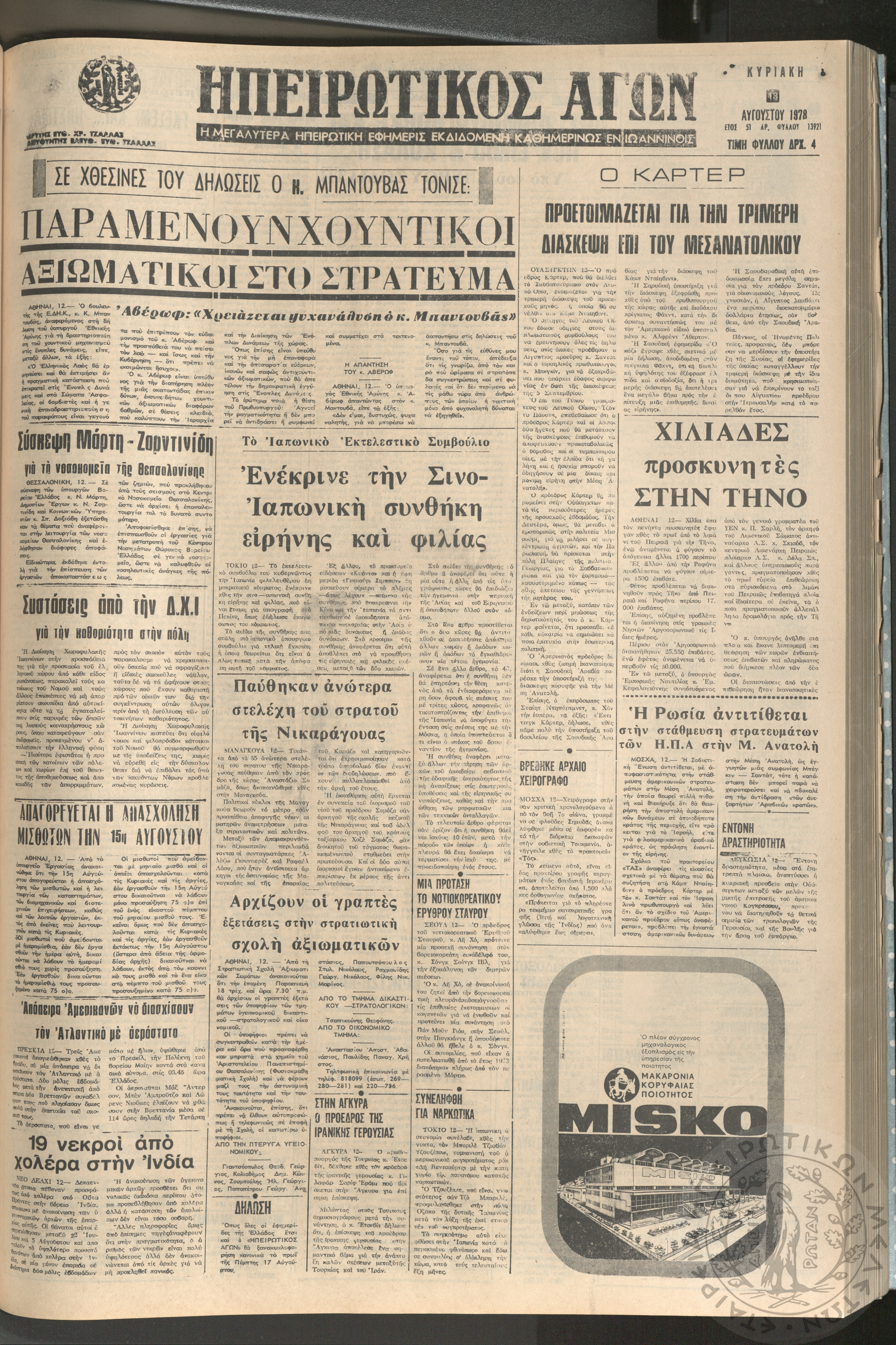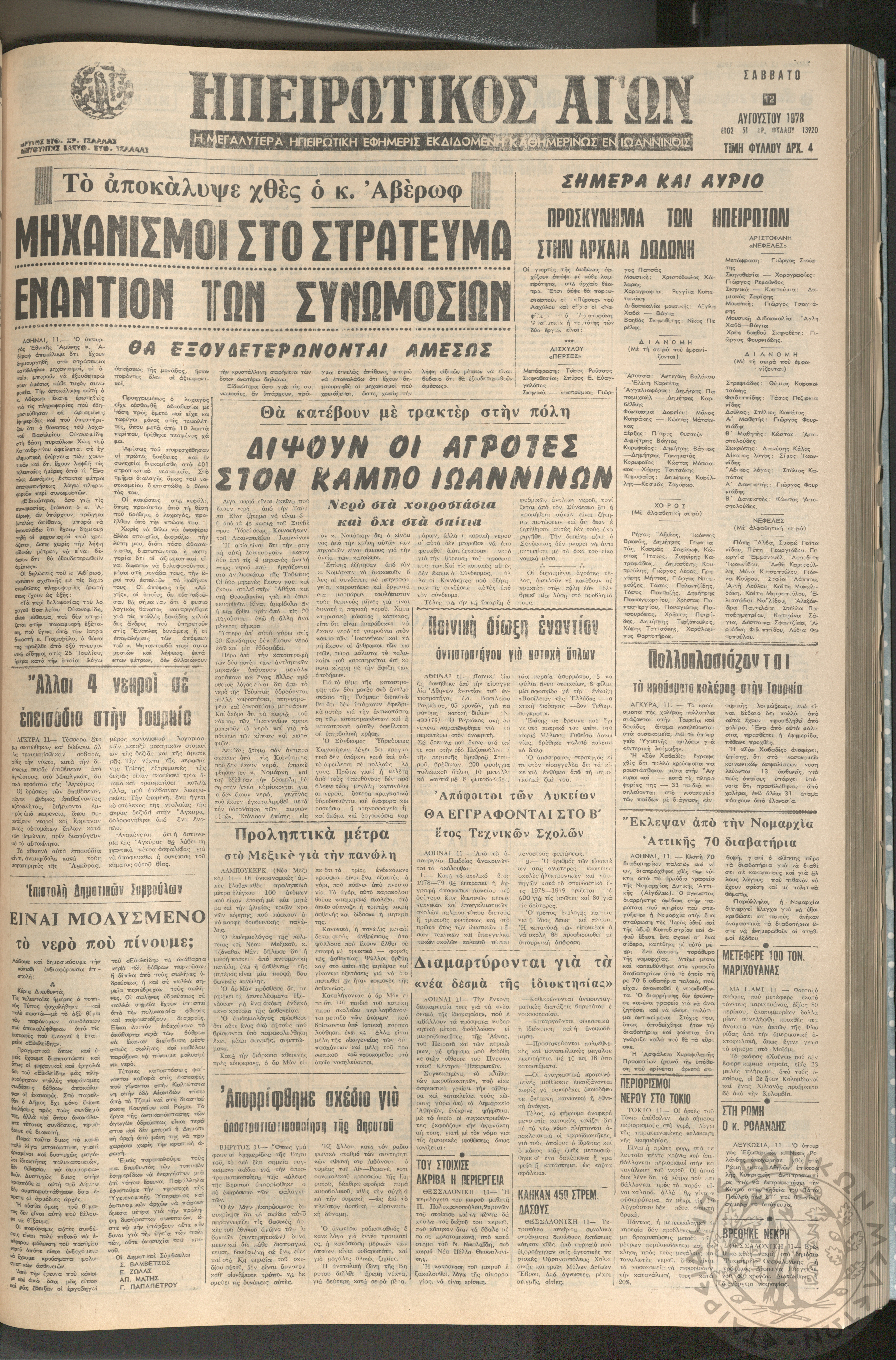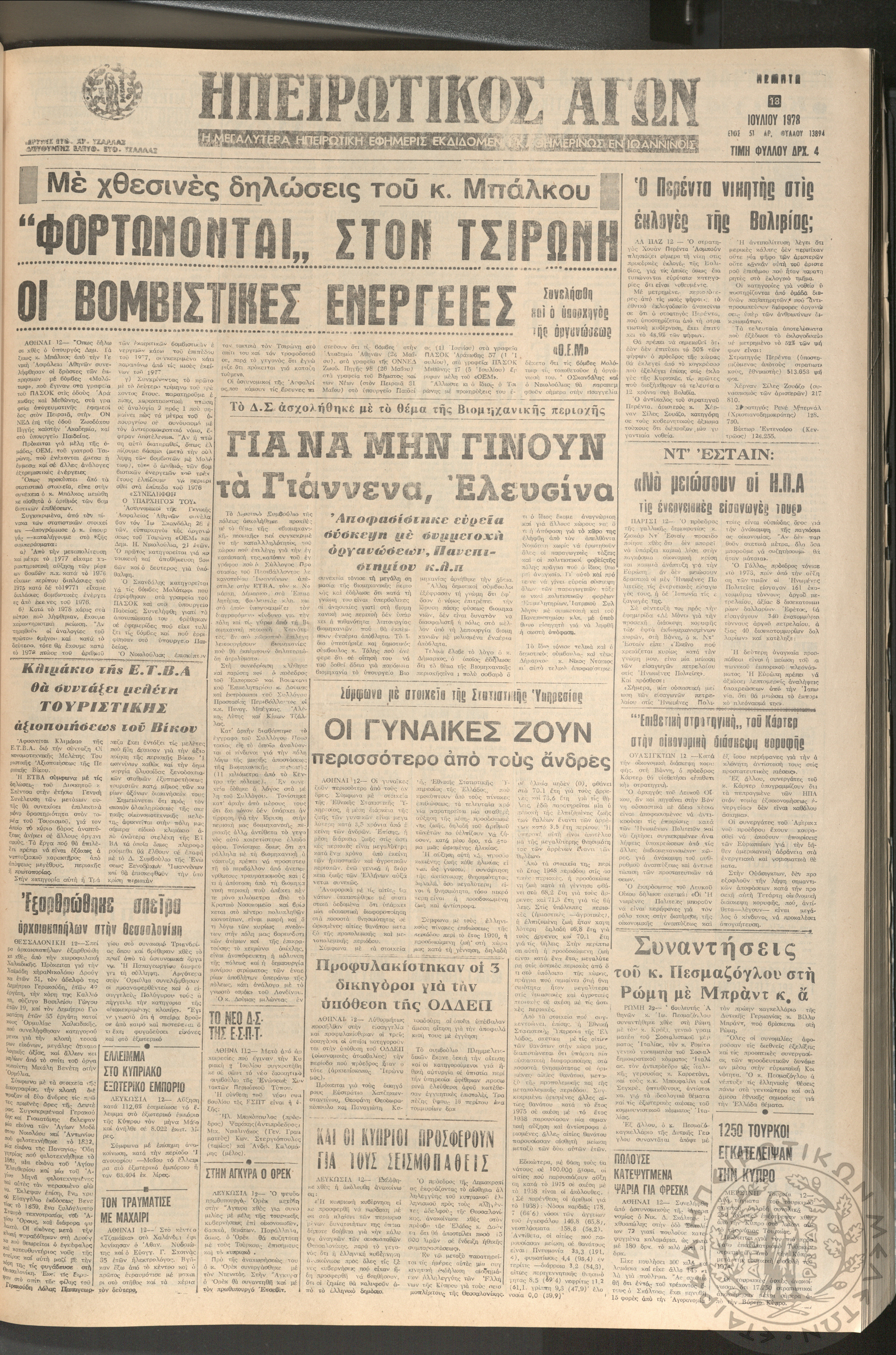 Ηπειρωτικός Αγών: η μεγαλυτέρα ηπειρωτική εφημερίς εκδιδόμενη καθημερινώς εν Ιωαννίνοις, 1978, φ. 13920Έτος 51, φ. 13920...