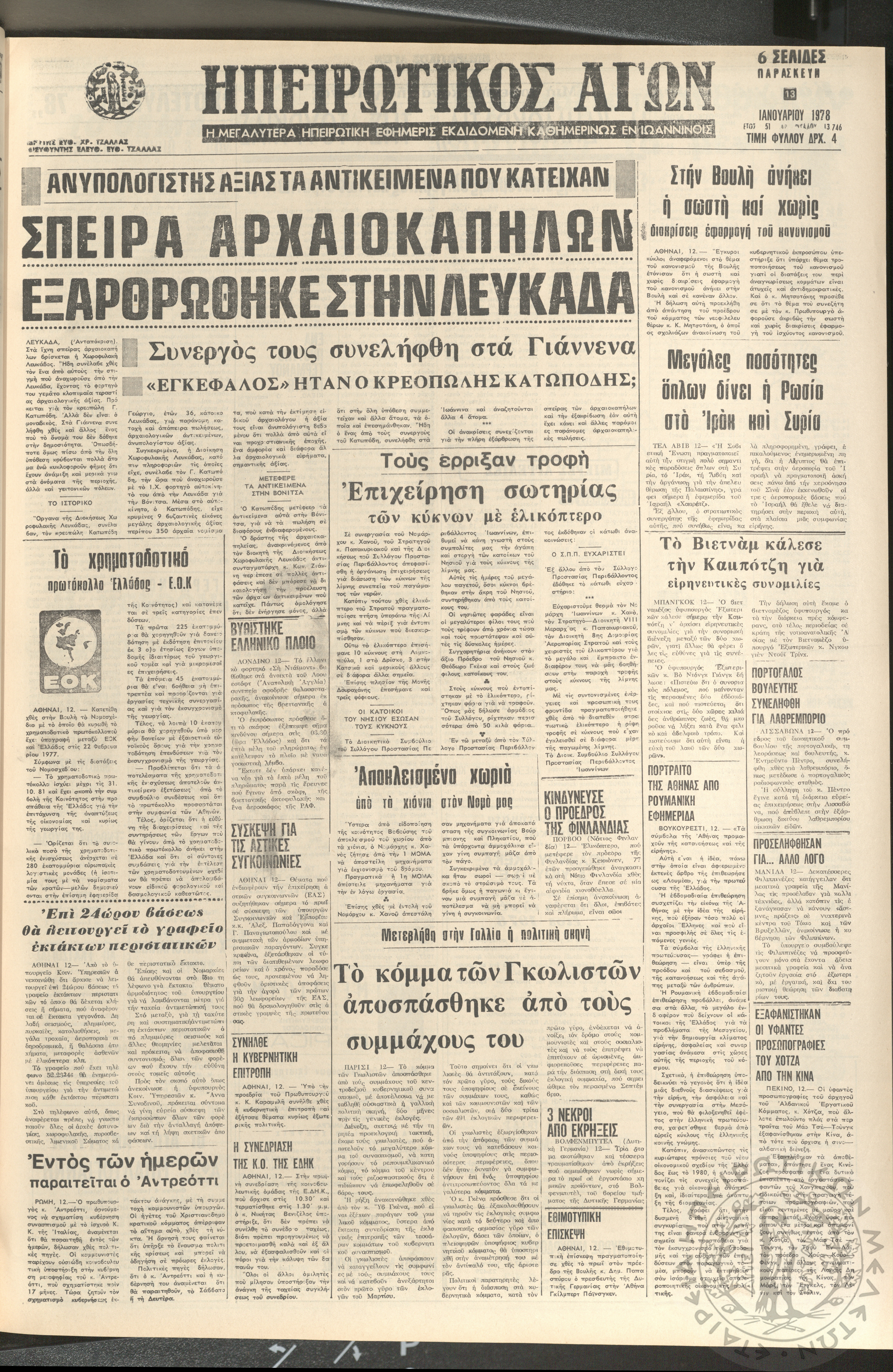 Ηπειρωτικός Αγών: η μεγαλυτέρα ηπειρωτική εφημερίς εκδιδόμενη καθημερινώς εν Ιωαννίνοις, 1978, φ. 13819Έτος 51, φ. 13819...