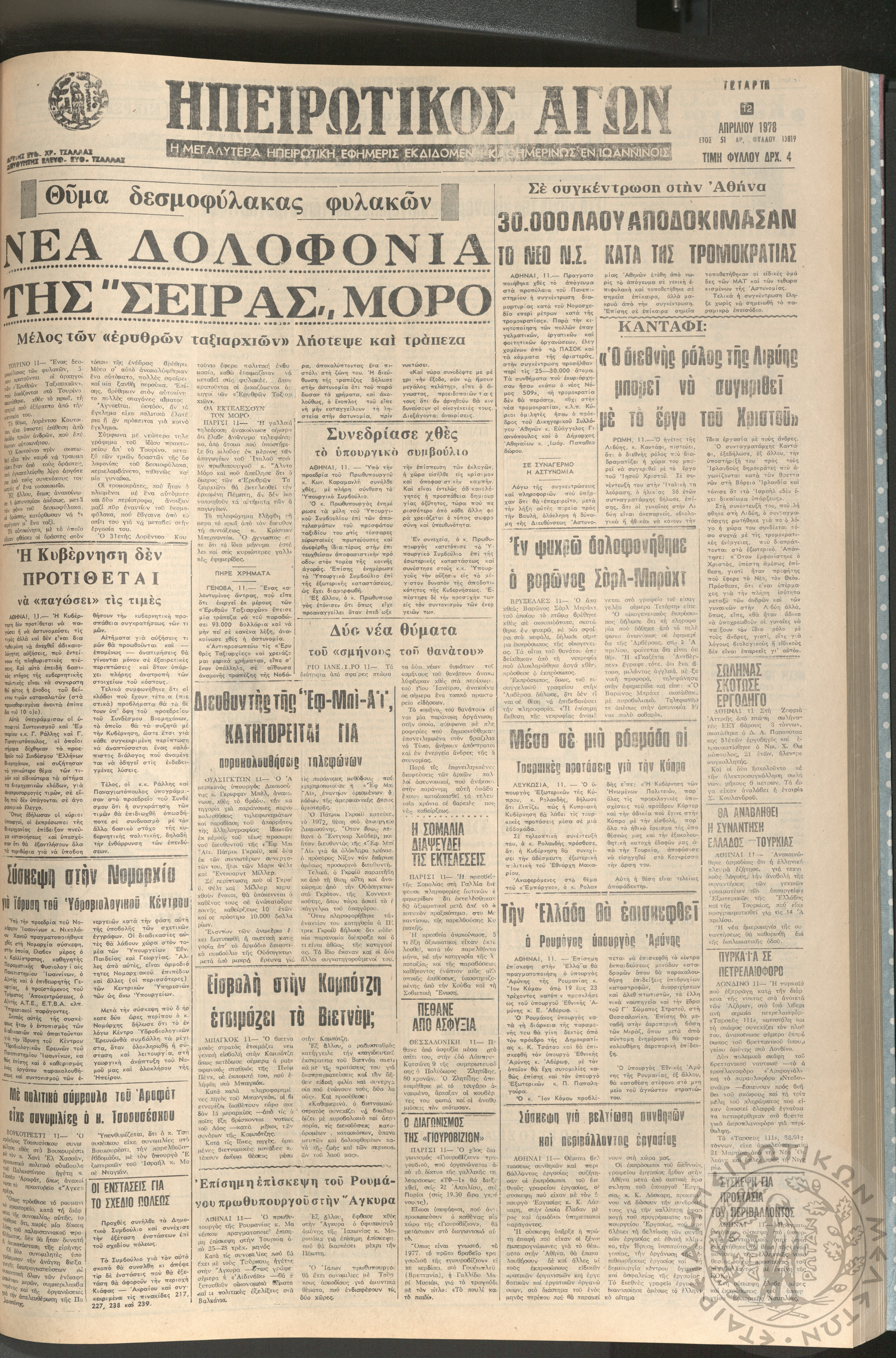 Ηπειρωτικός Αγών: η μεγαλυτέρα ηπειρωτική εφημερίς εκδιδόμενη καθημερινώς εν Ιωαννίνοις, 1978, φ. 13869Έτος 51, φ. 13869...