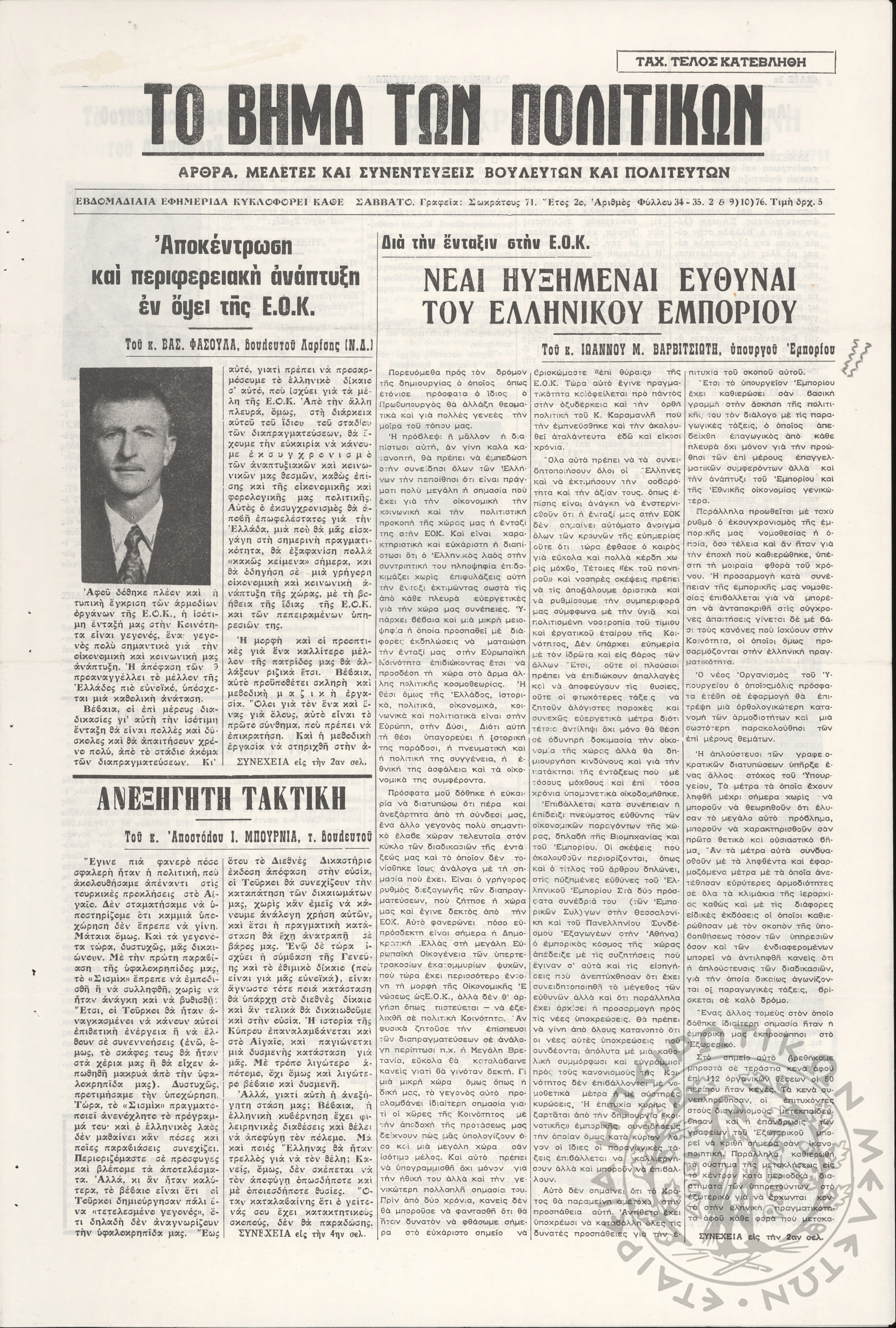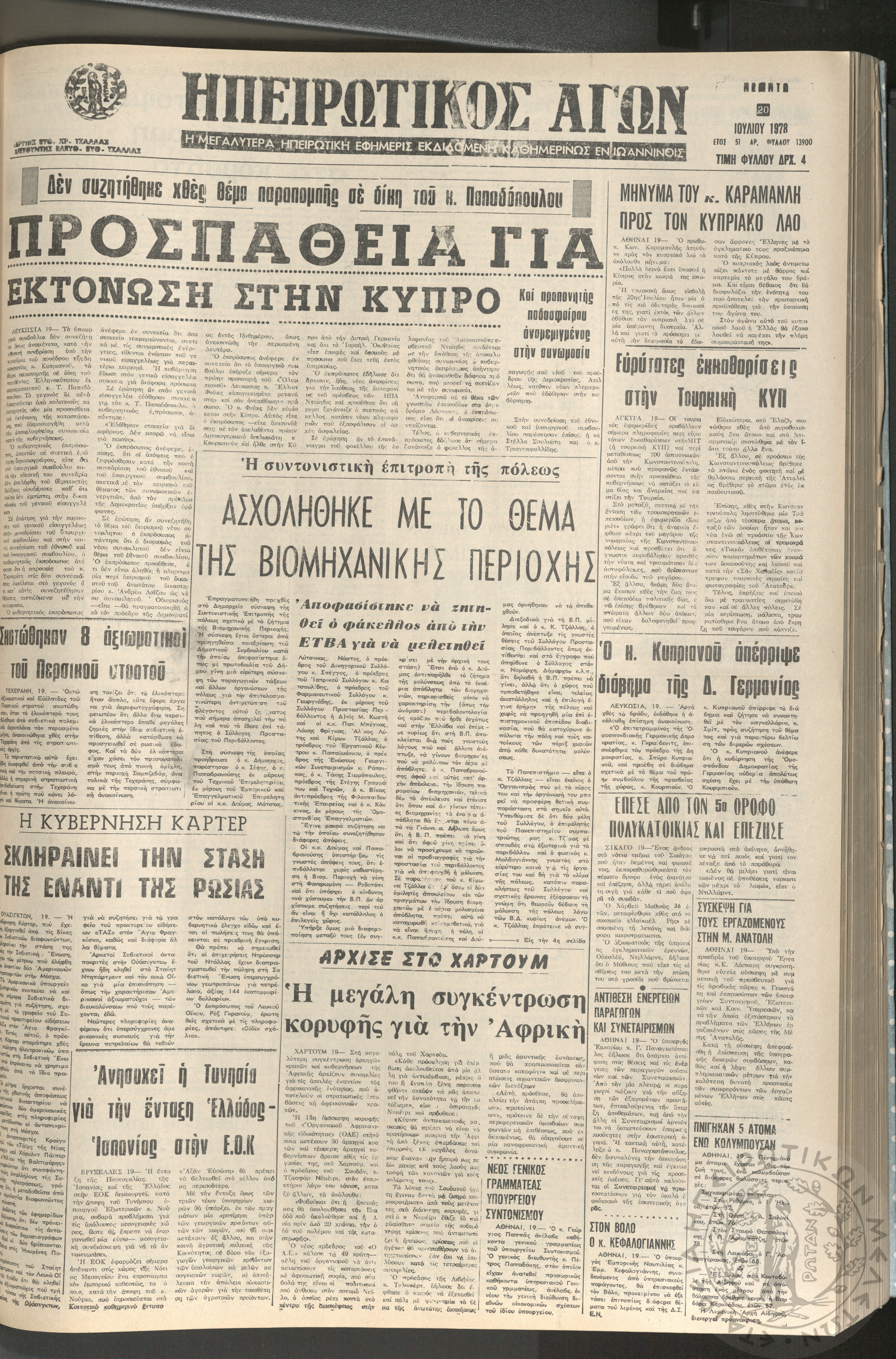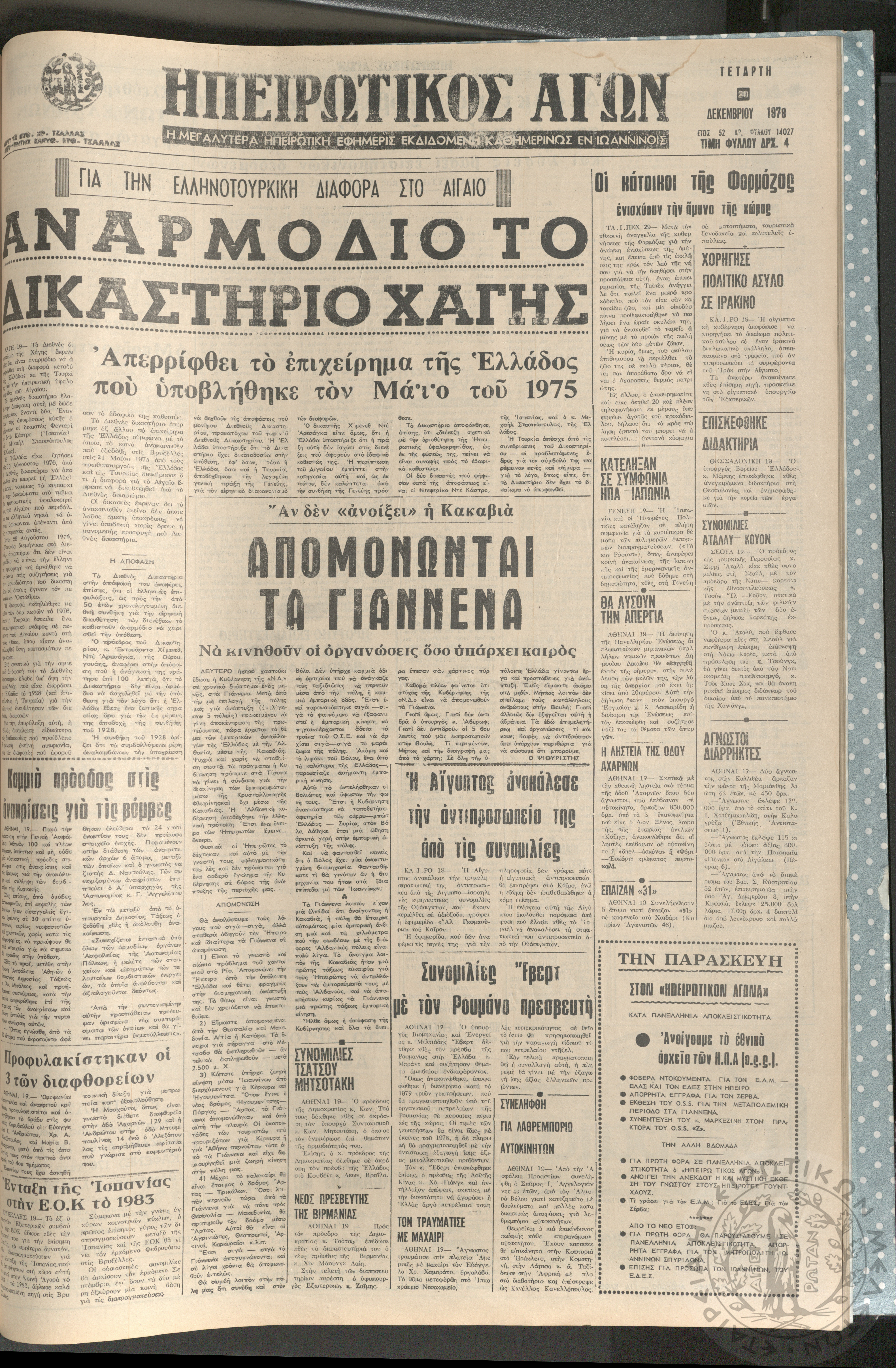 Ηπειρωτικός Αγών: η μεγαλυτέρα ηπειρωτική εφημερίς εκδιδόμενη καθημερινώς εν Ιωαννίνοις, 1978, φ. 13900Έτος 51, φ. 13900...