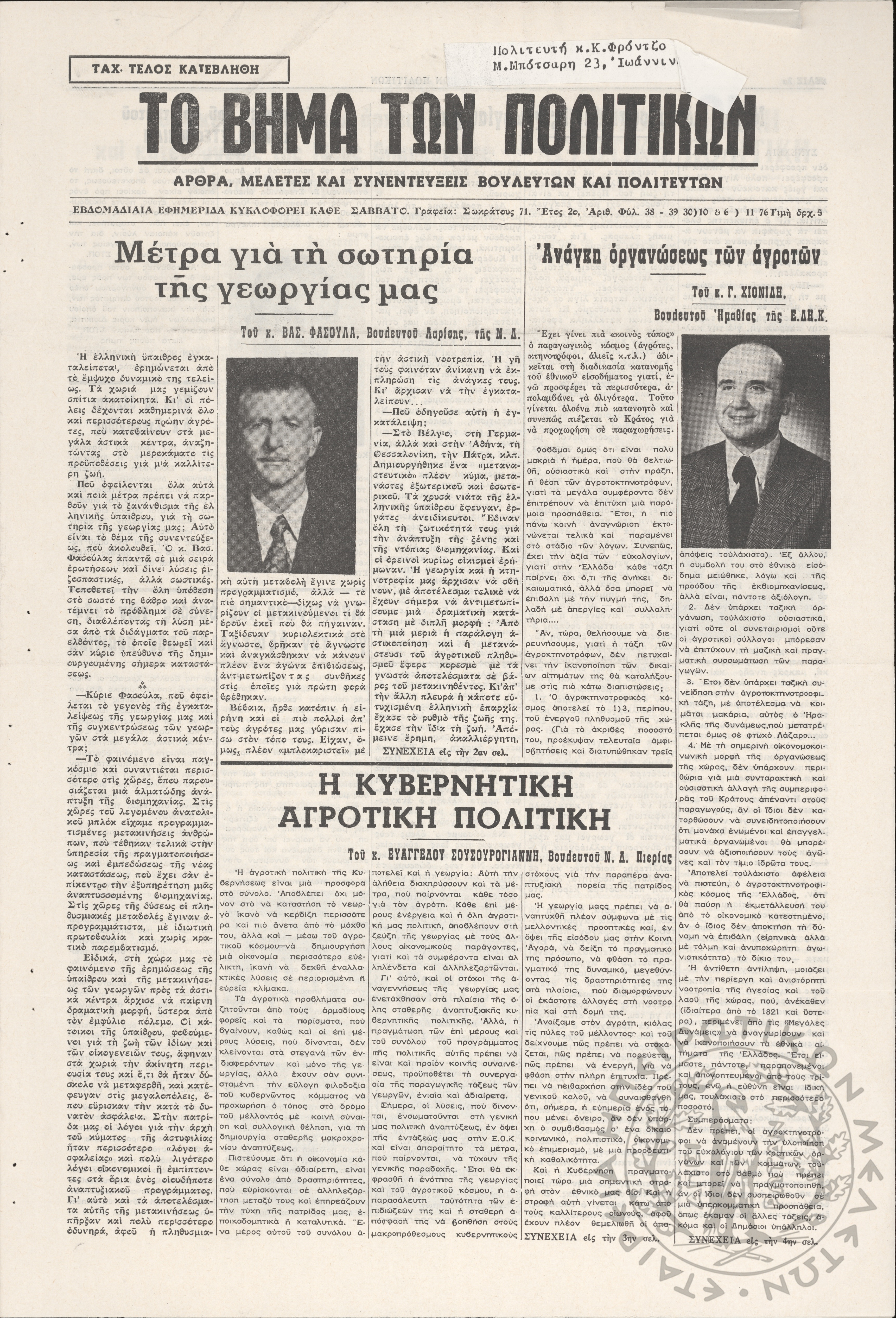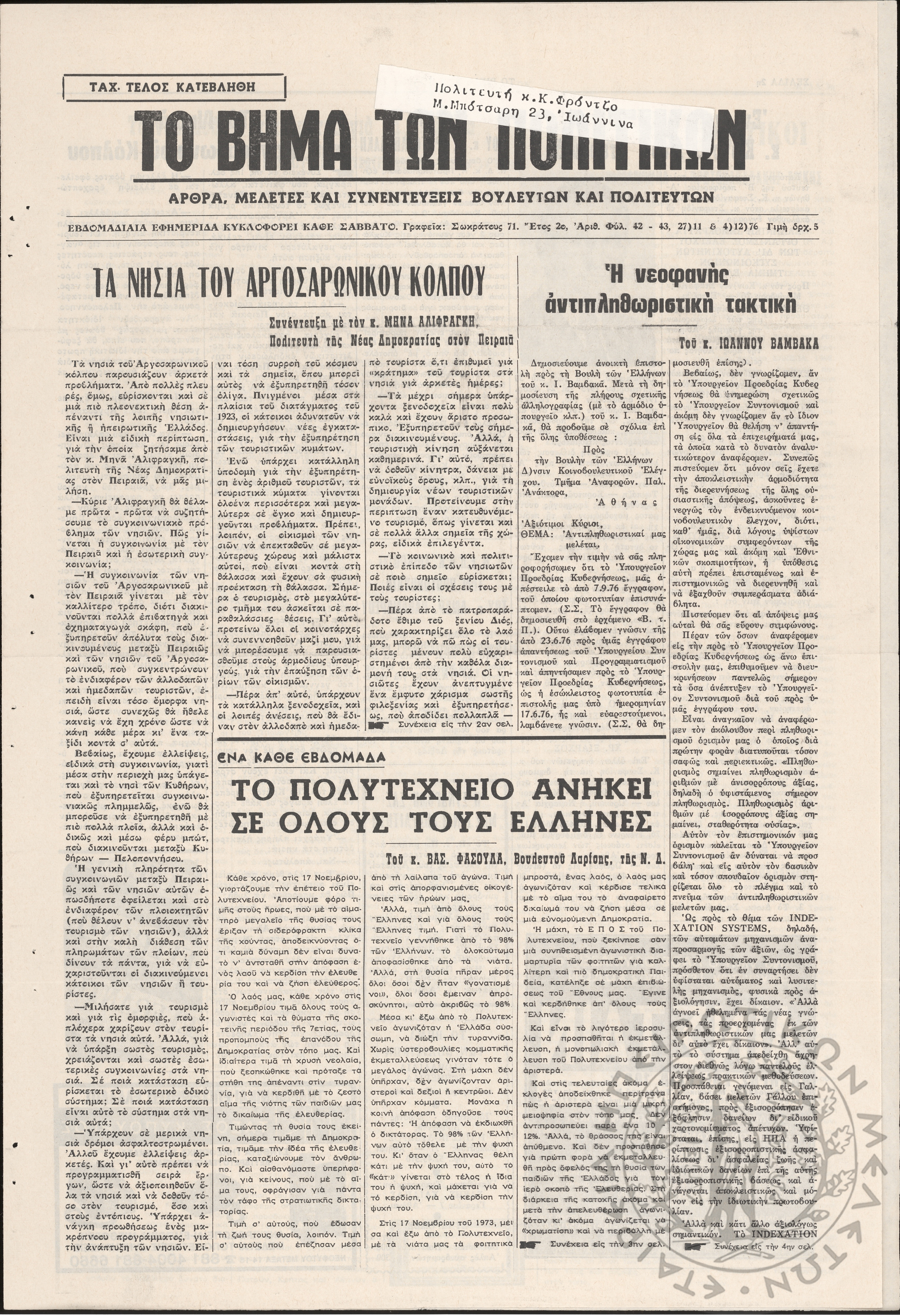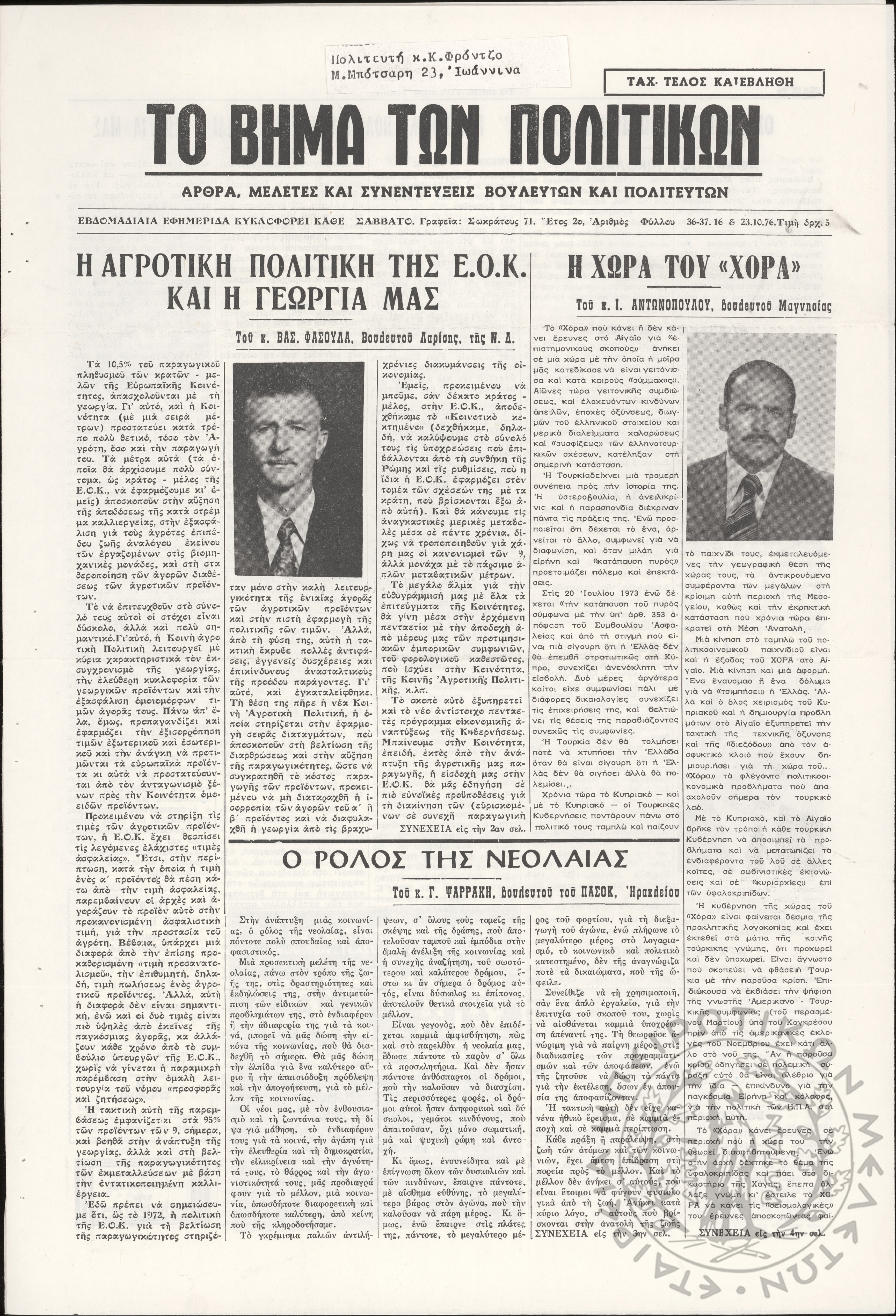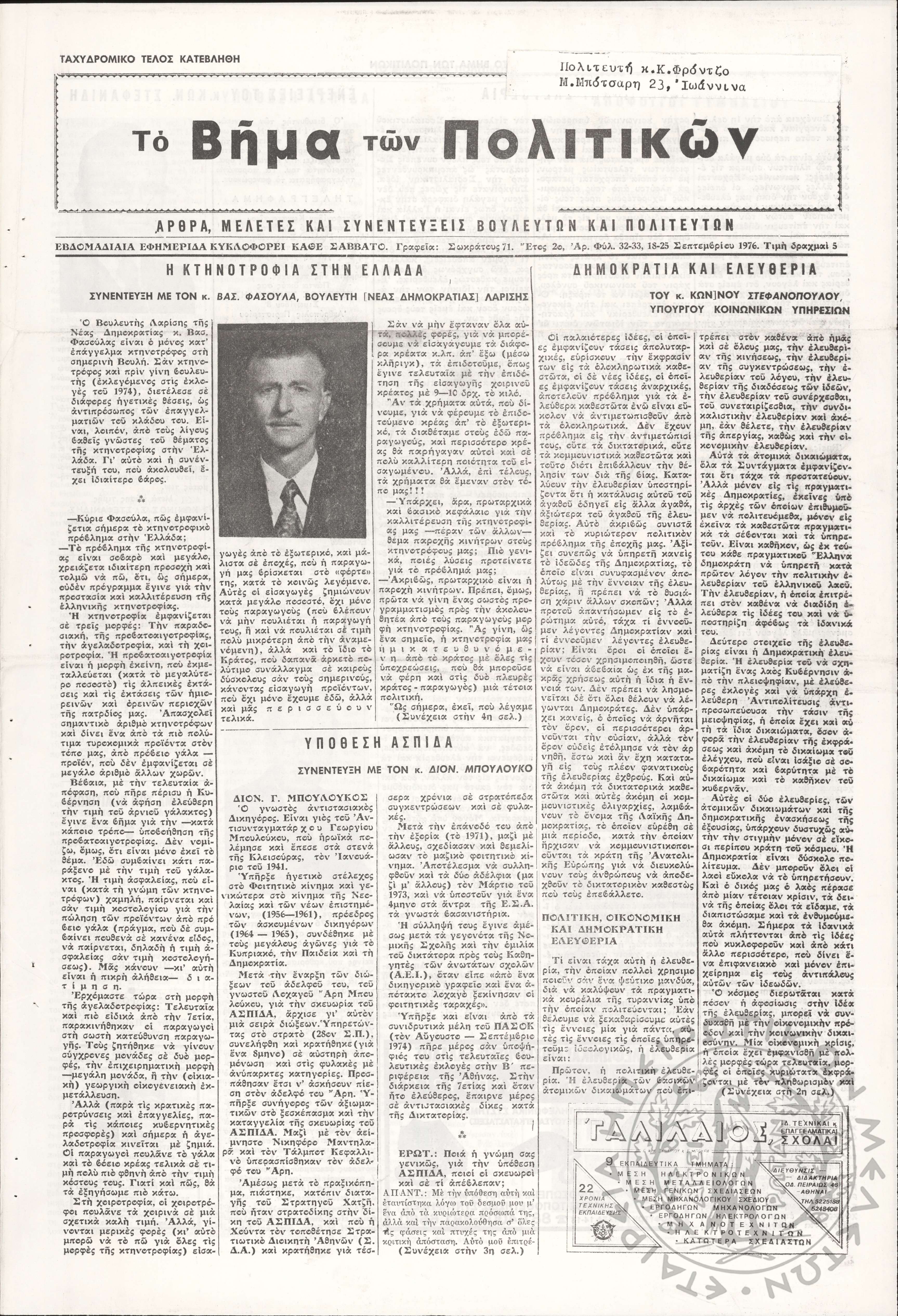 Ηπειρωτικός Αγών: η μεγαλυτέρα ηπειρωτική εφημερίς εκδιδόμενη καθημερινώς εν Ιωαννίνοις, 1978, φ. 13900Έτος 51, φ. 13900...