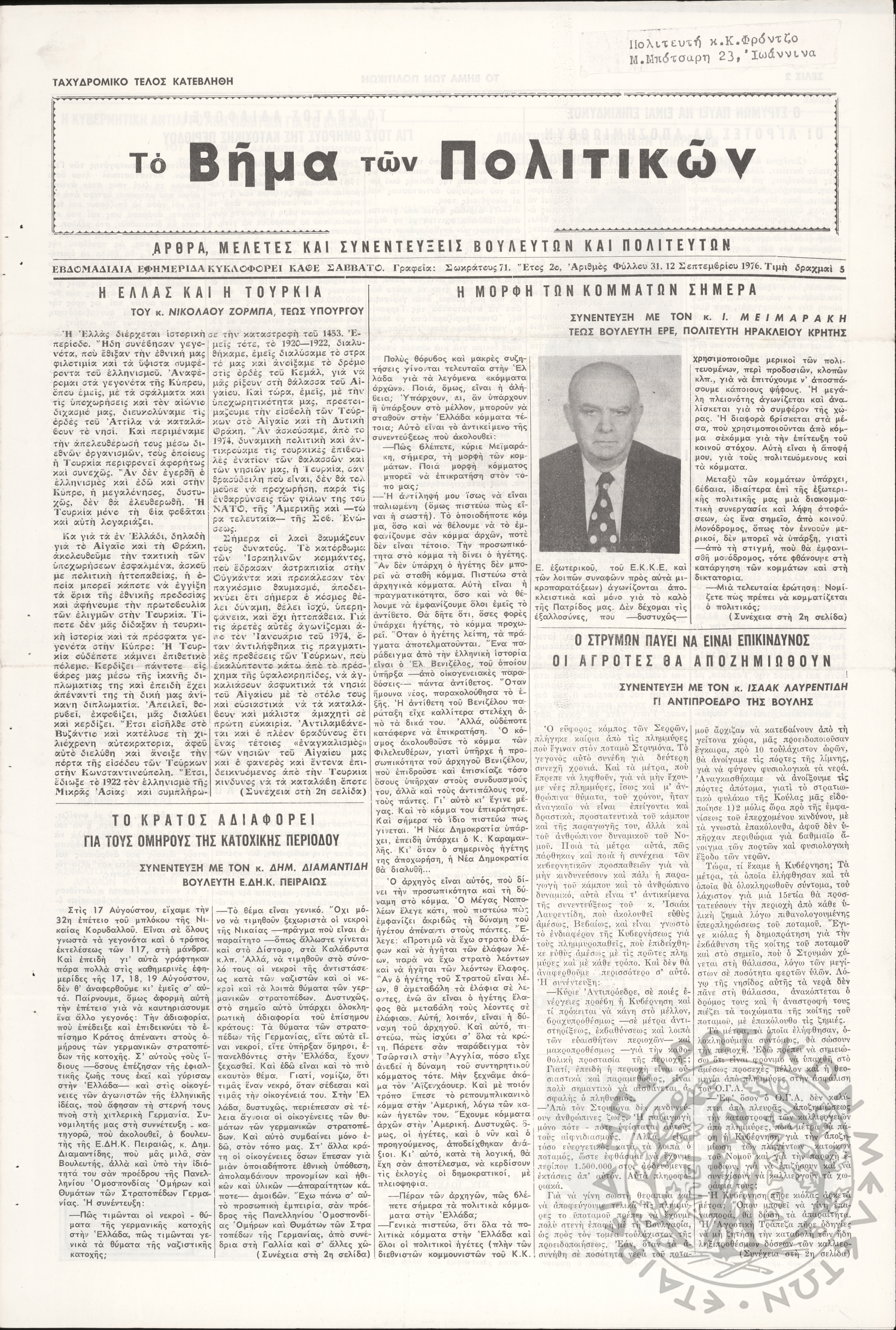 Ηπειρωτικός Αγών: η μεγαλυτέρα ηπειρωτική εφημερίς εκδιδόμενη καθημερινώς εν Ιωαννίνοις, 1978, φ. 13951Έτος 52, φ. 13951...