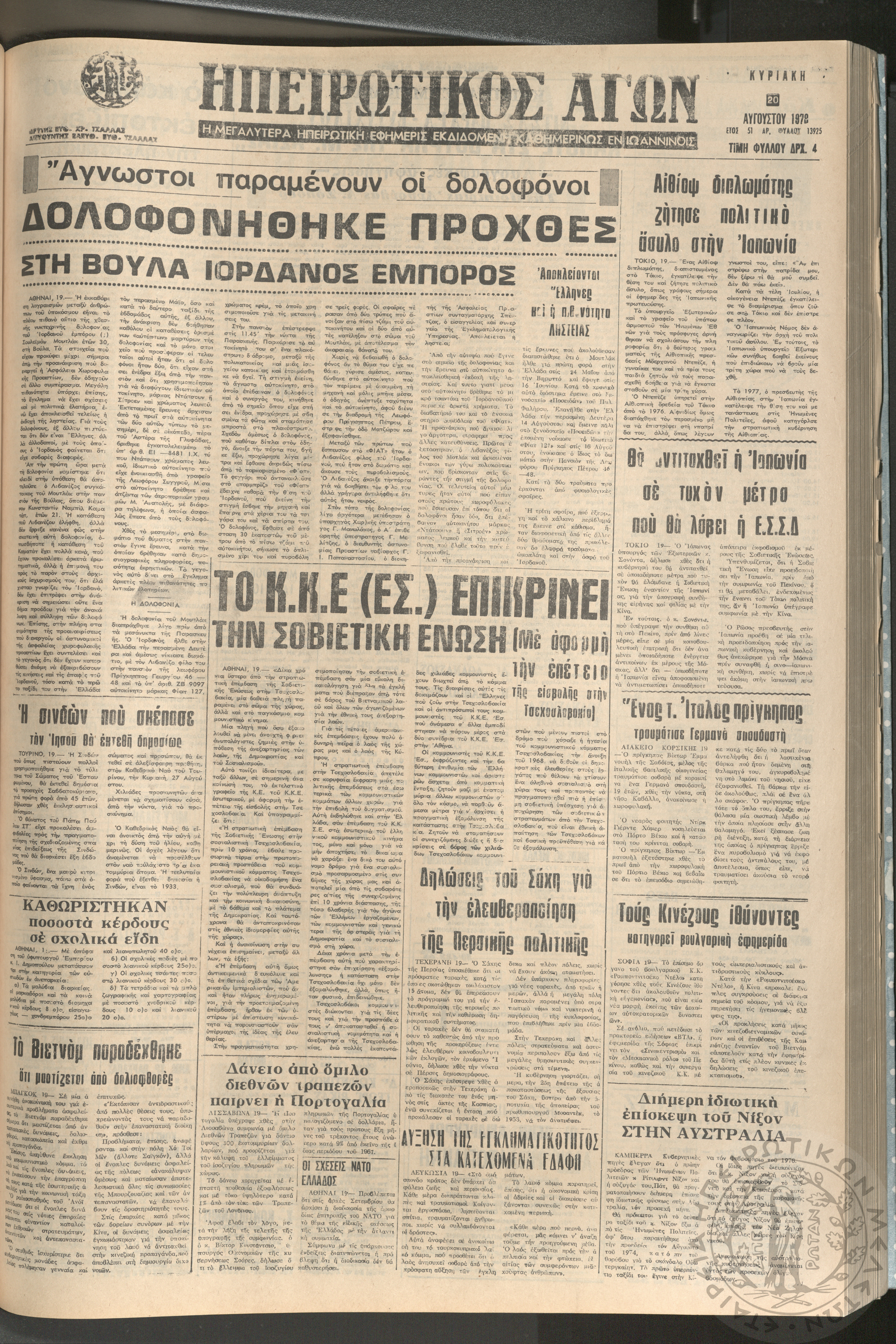 Ηπειρωτικός Αγών: η μεγαλυτέρα ηπειρωτική εφημερίς εκδιδόμενη καθημερινώς εν Ιωαννίνοις, 1978, φ. 13925Έτος 51, φ. 13925...