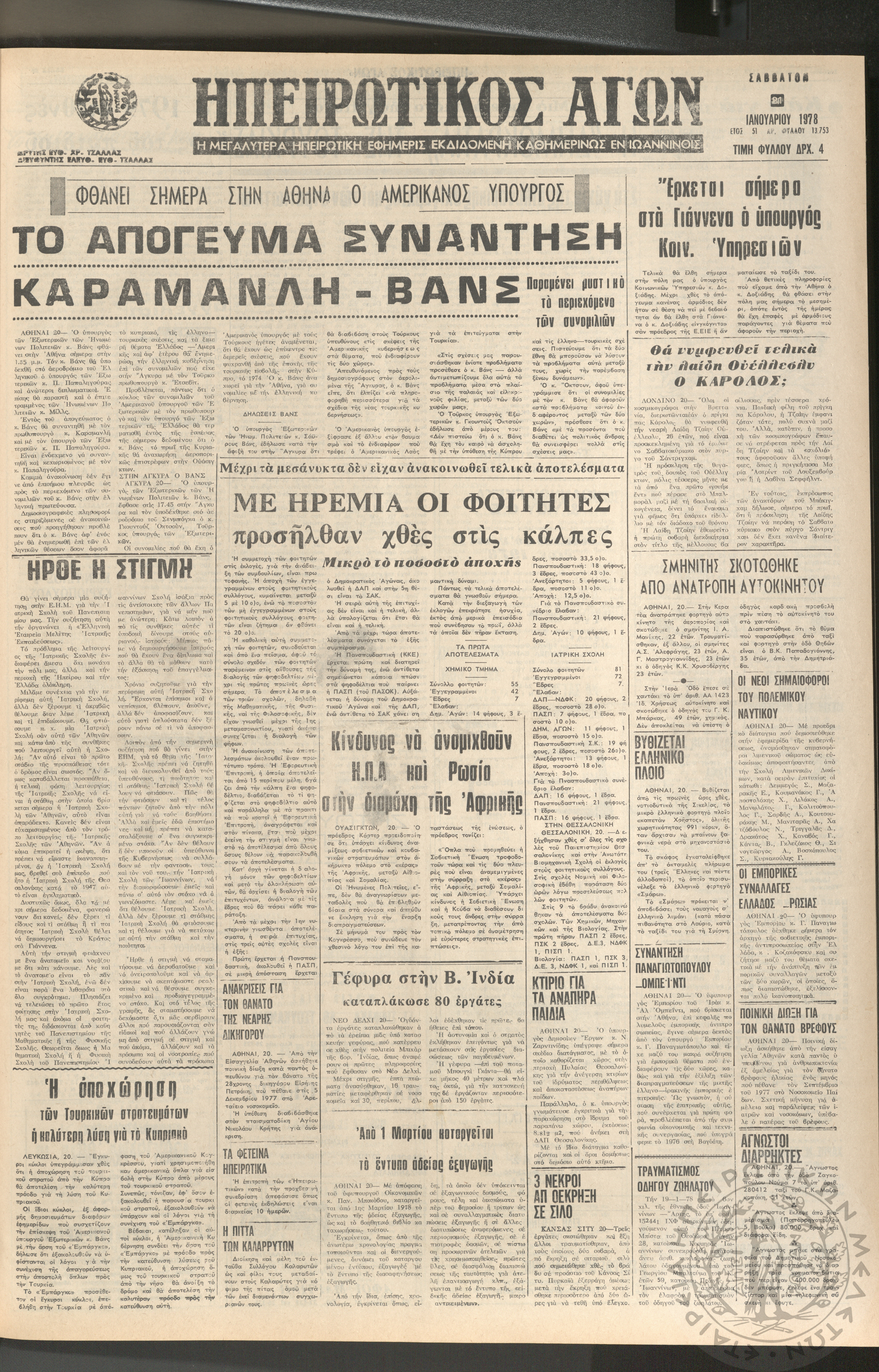 Ηπειρωτικός Αγών: η μεγαλυτέρα ηπειρωτική εφημερίς εκδιδόμενη καθημερινώς εν Ιωαννίνοις, 1978, φ. 13753Έτος 51, φ. 13753...