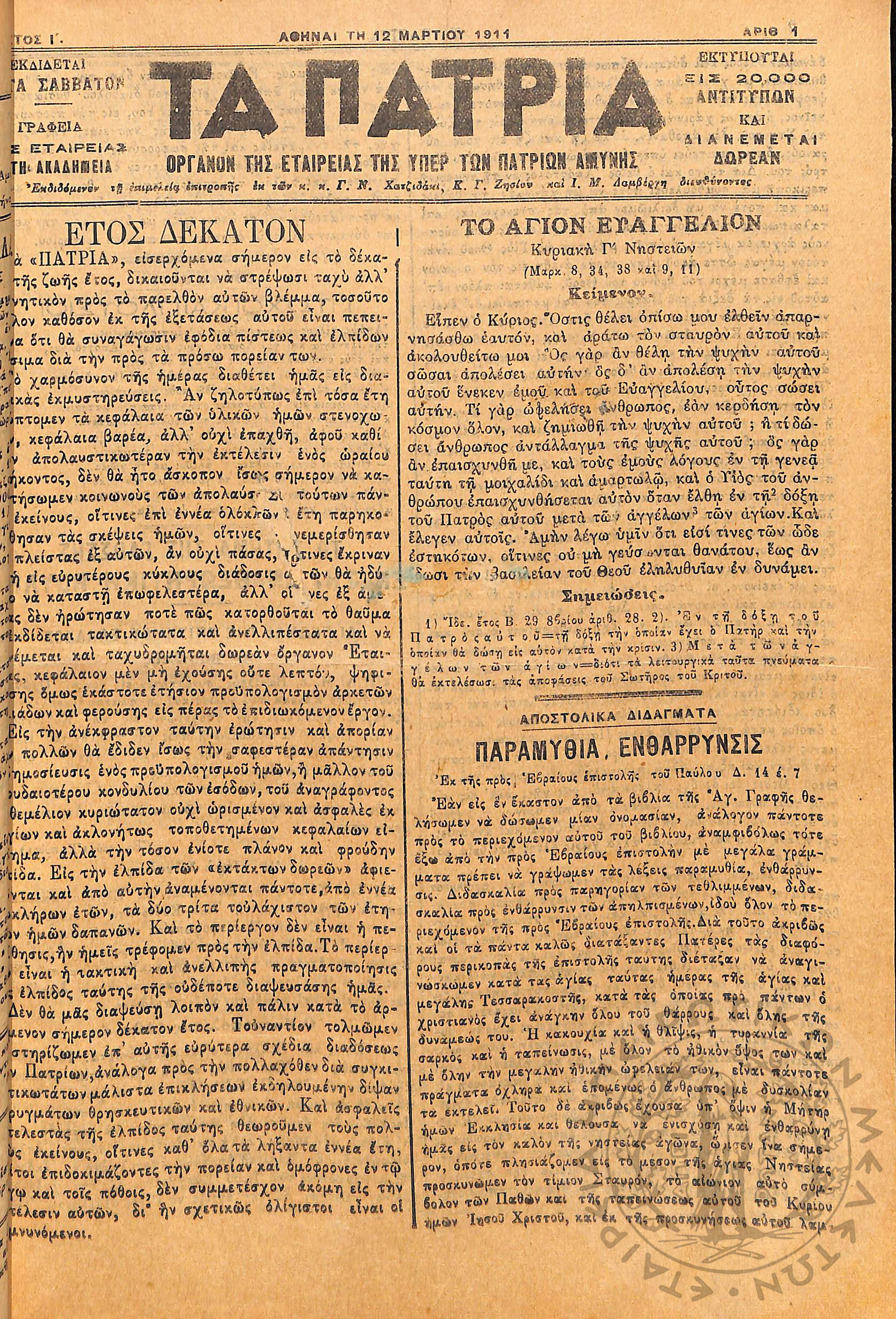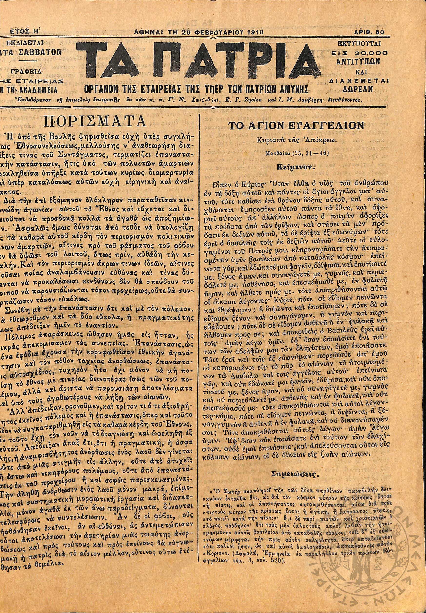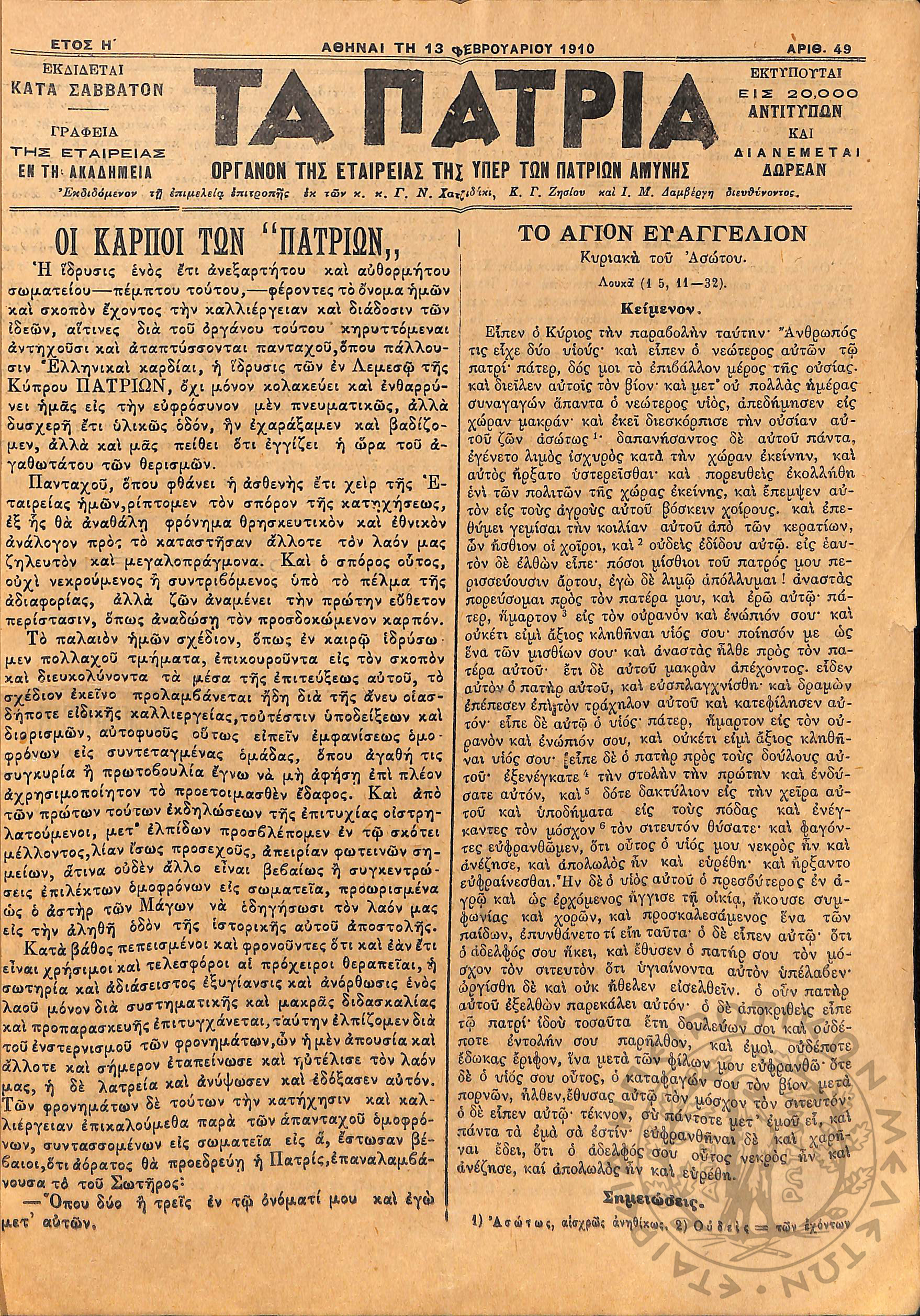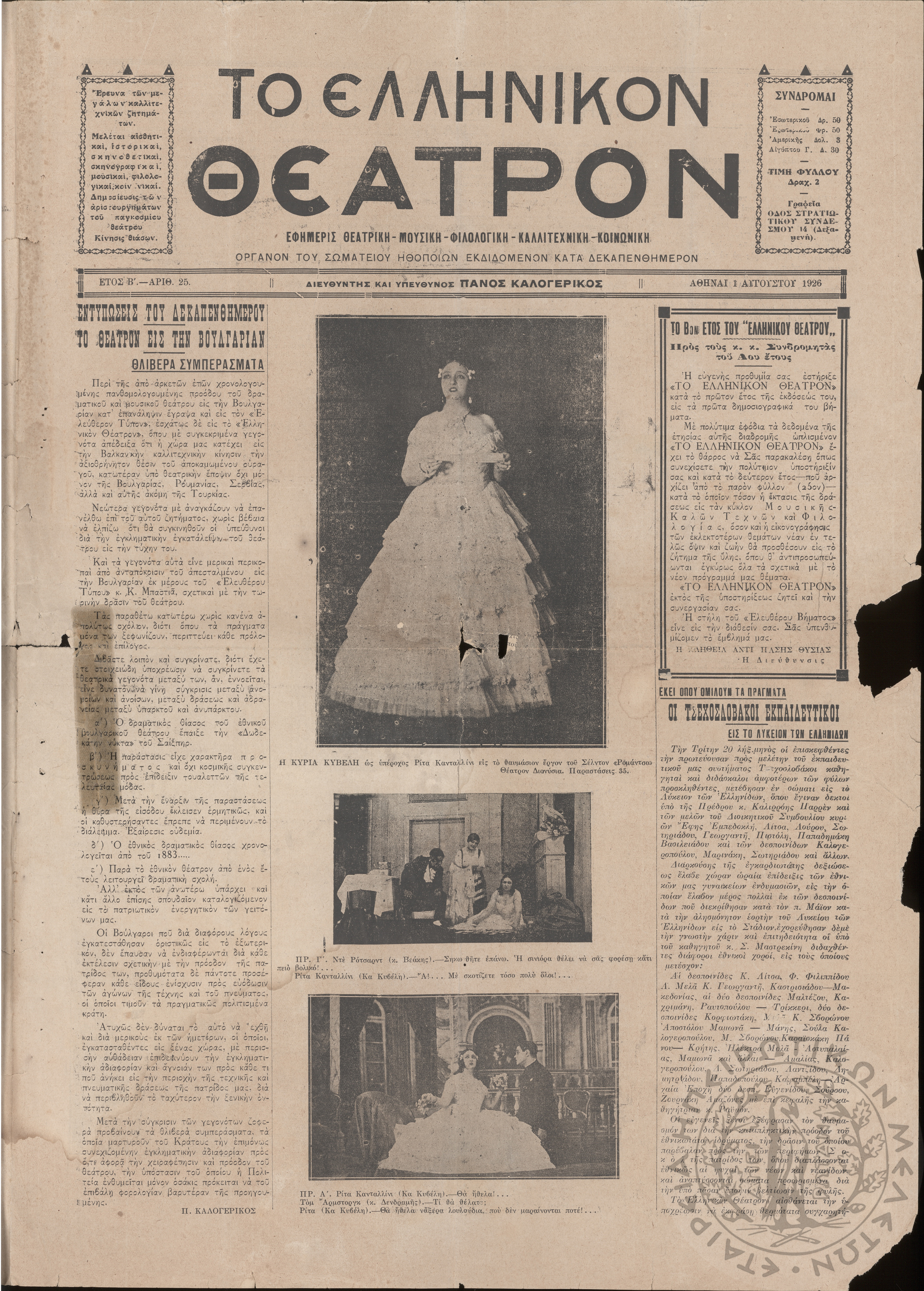 To Ελληνικόν θέατρον: εφημερίς θεατρική, μουσική, φιλολογική, καλλιτεχνική, κοινωνική: όργανον του Σωματείου Ηθοποιών εκδιδόμενον κατά δεκαπενθήμερον, 1926, φ. 25Έτος Β΄, φ. 25...