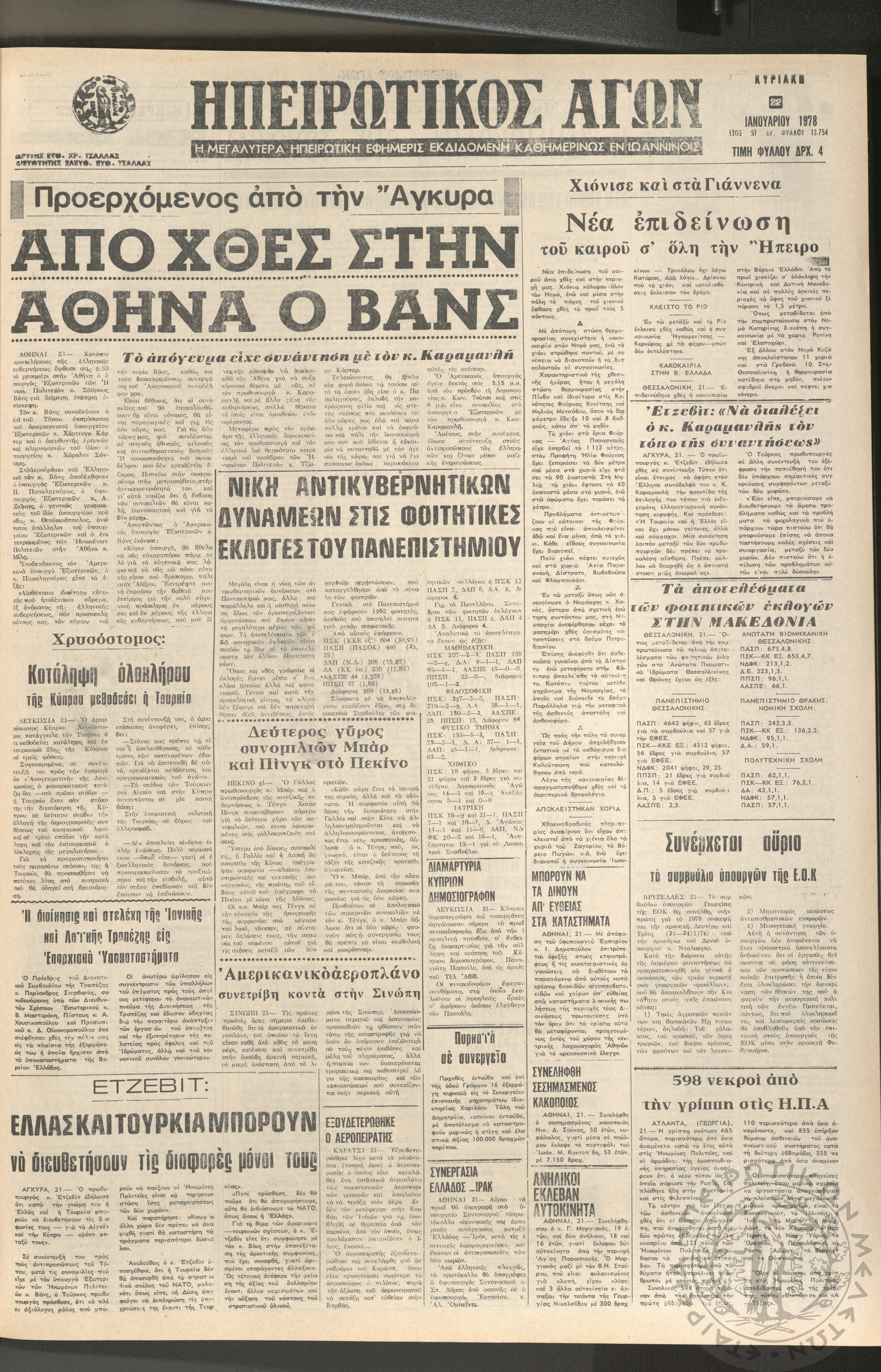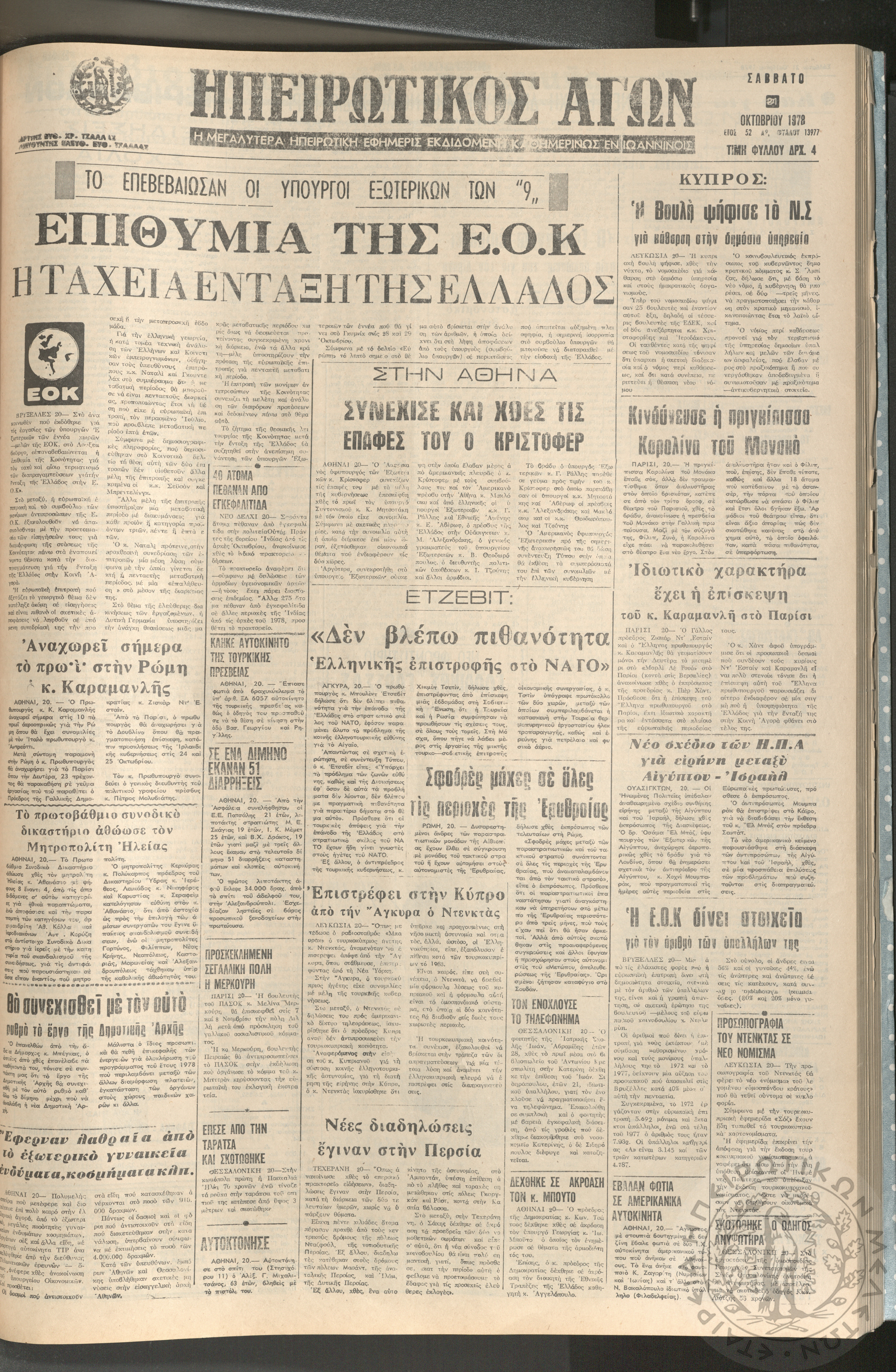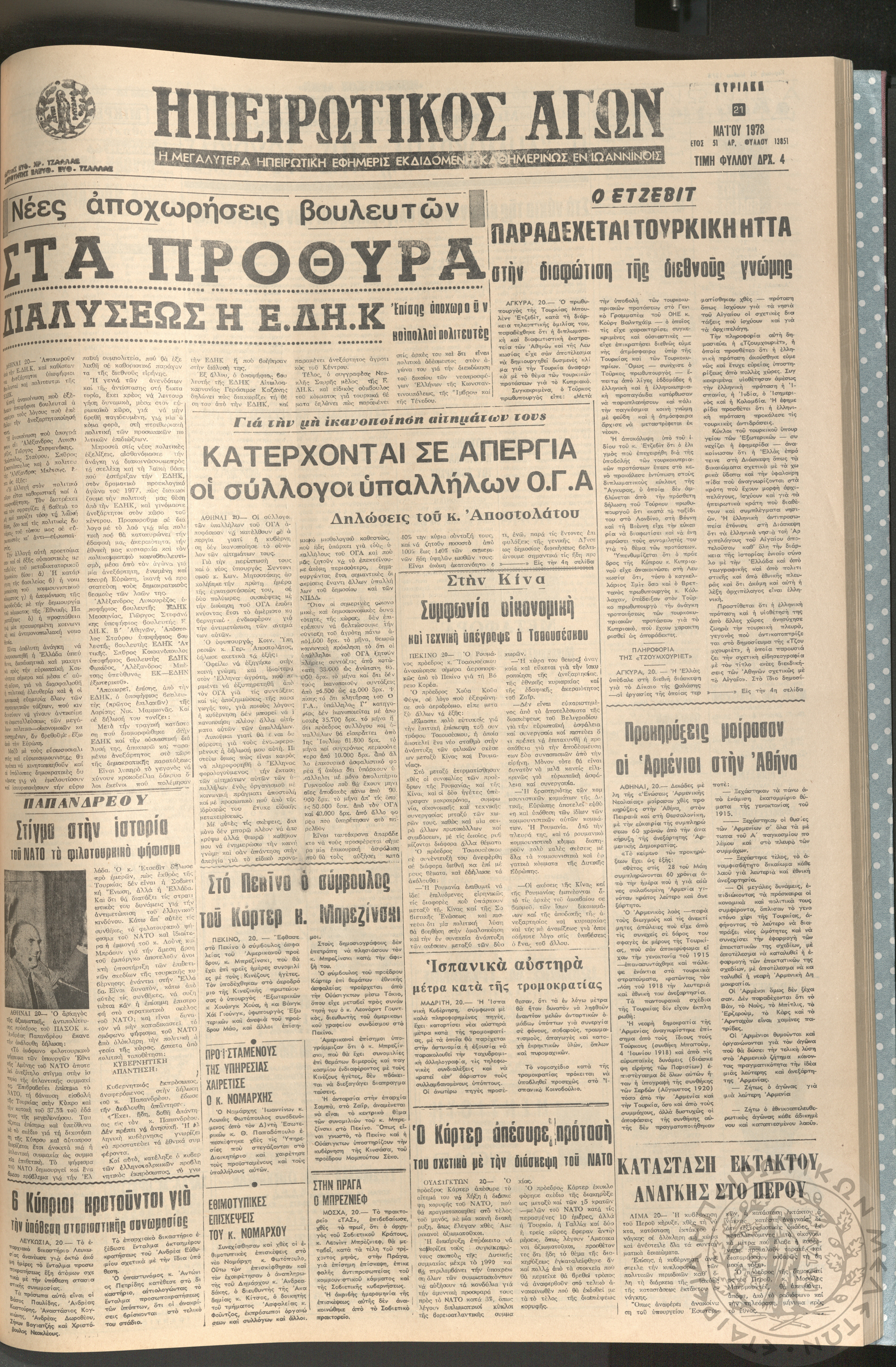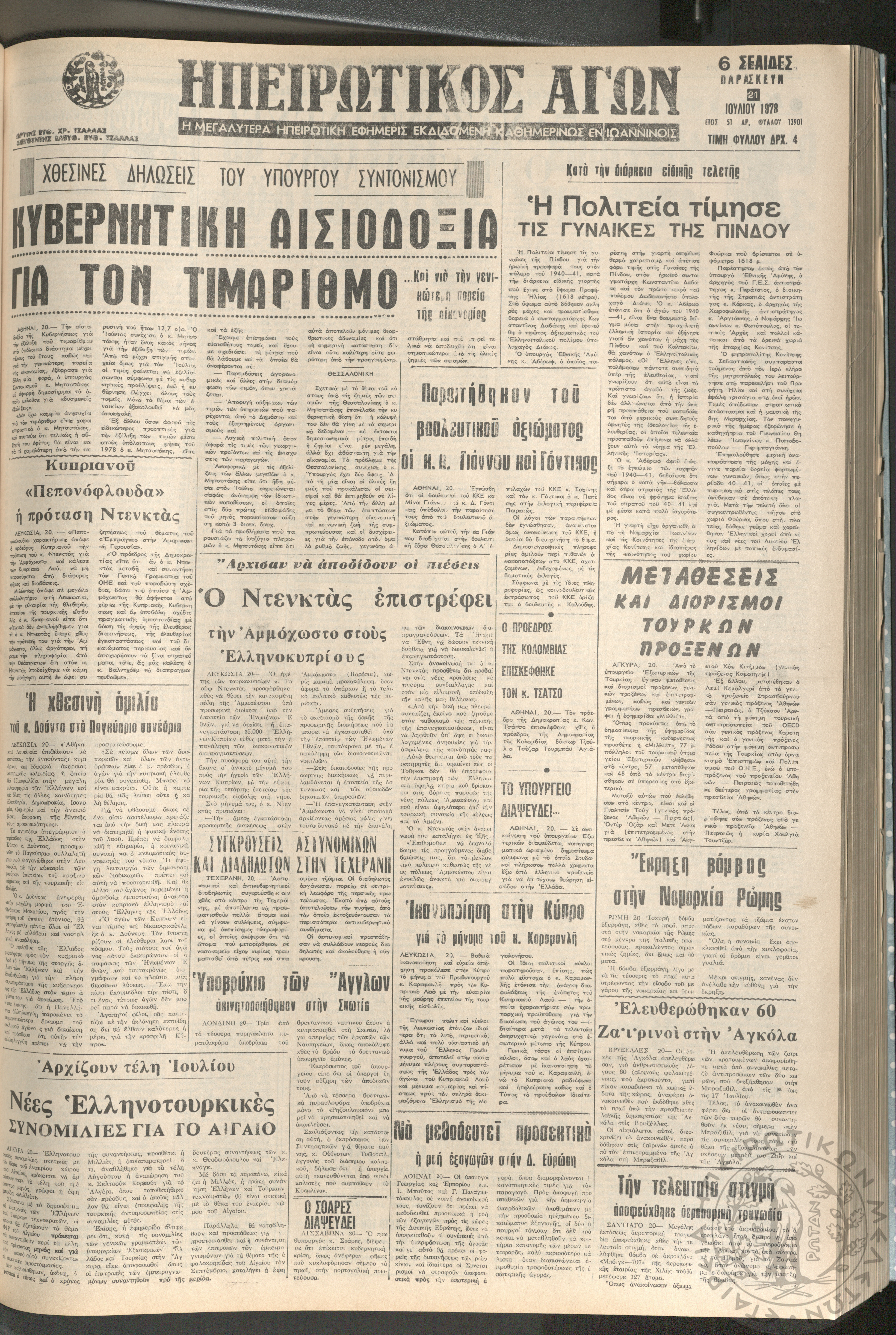 Ηπειρωτικός Αγών: η μεγαλυτέρα ηπειρωτική εφημερίς εκδιδόμενη καθημερινώς εν Ιωαννίνοις, 1978, φ. 13901Έτος 51, φ. 13901...