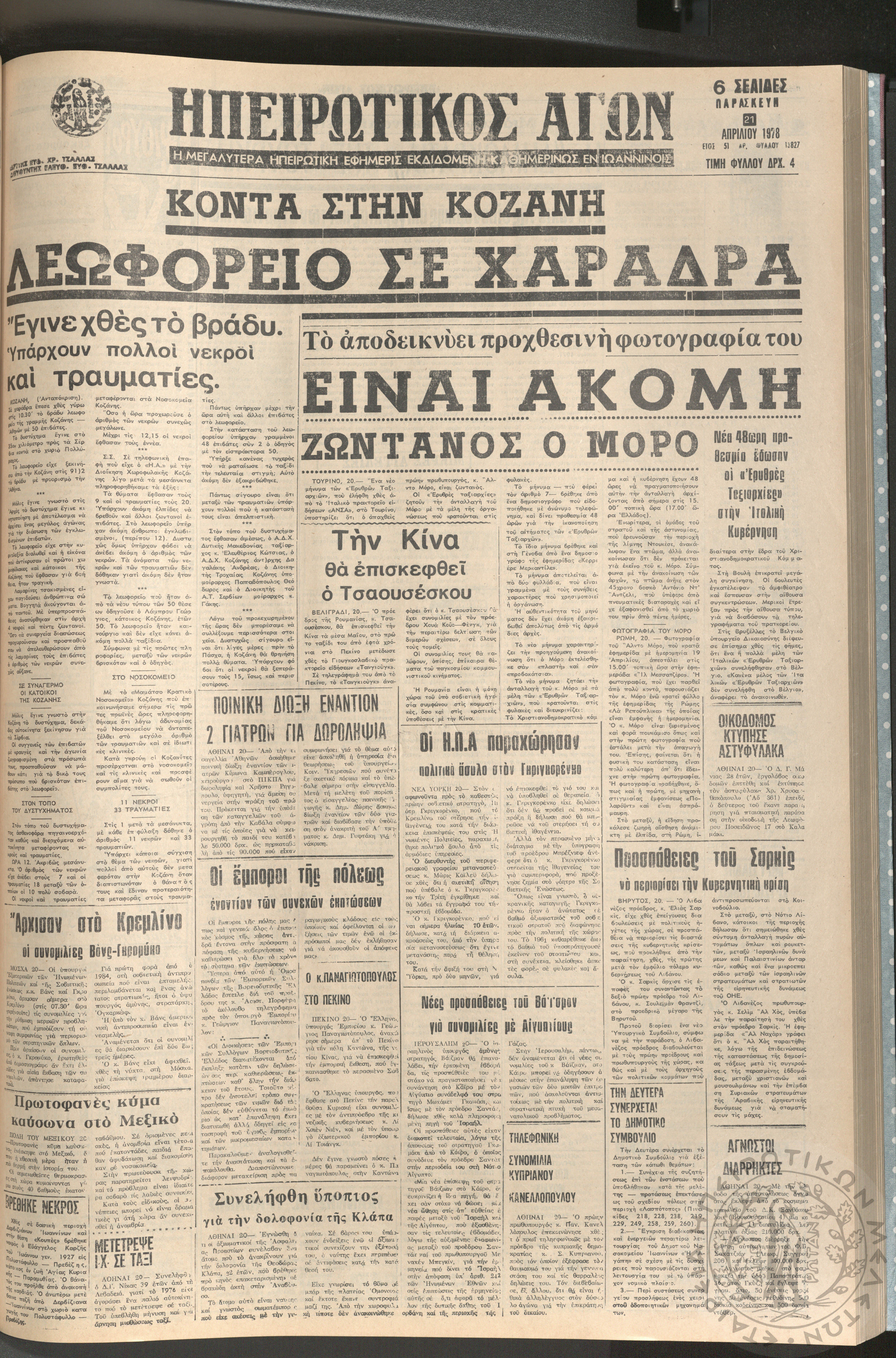 Ηπειρωτικός Αγών: η μεγαλυτέρα ηπειρωτική εφημερίς εκδιδόμενη καθημερινώς εν Ιωαννίνοις, 1978, φ. 13827Έτος 51, φ. 13827...