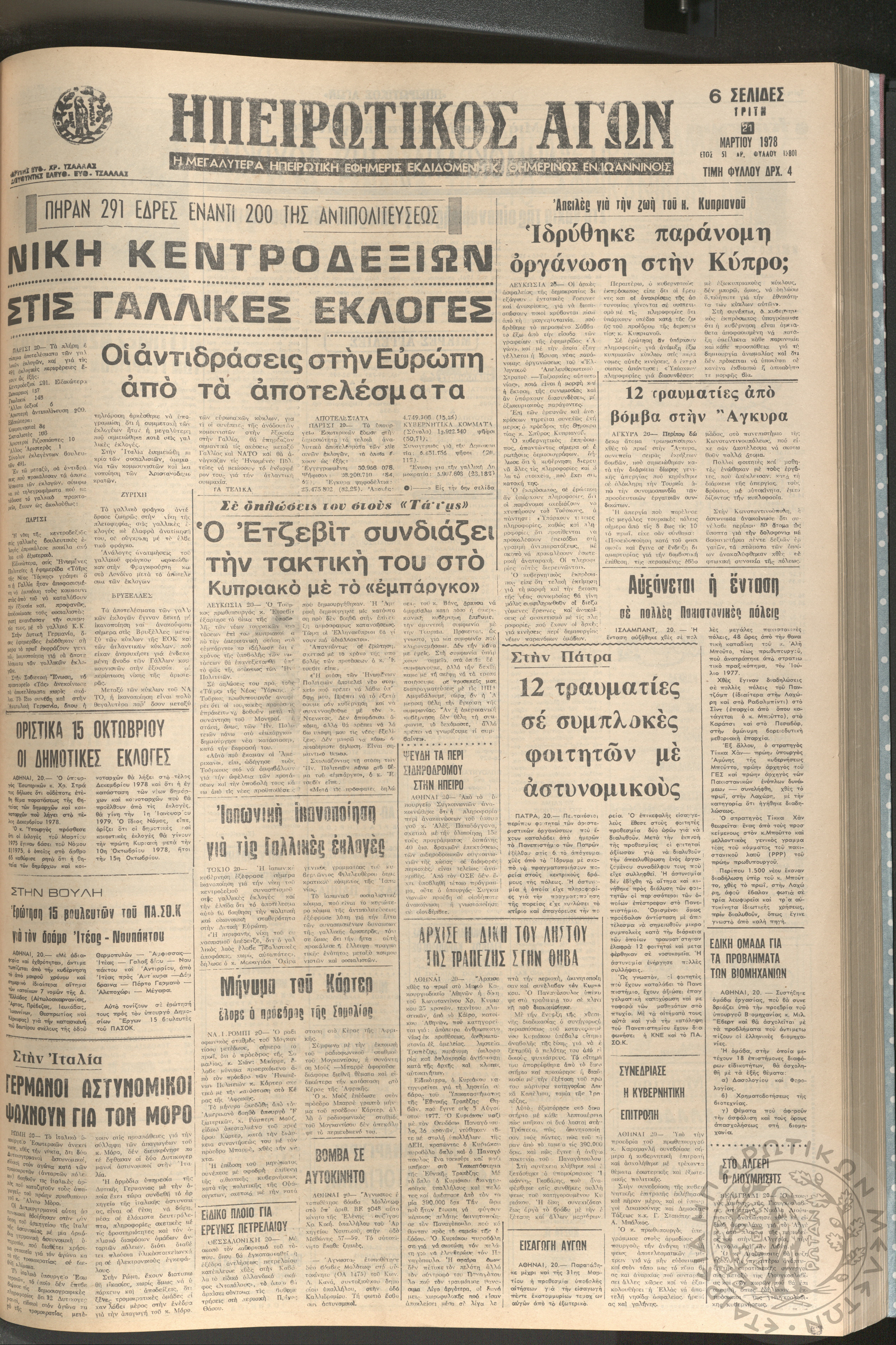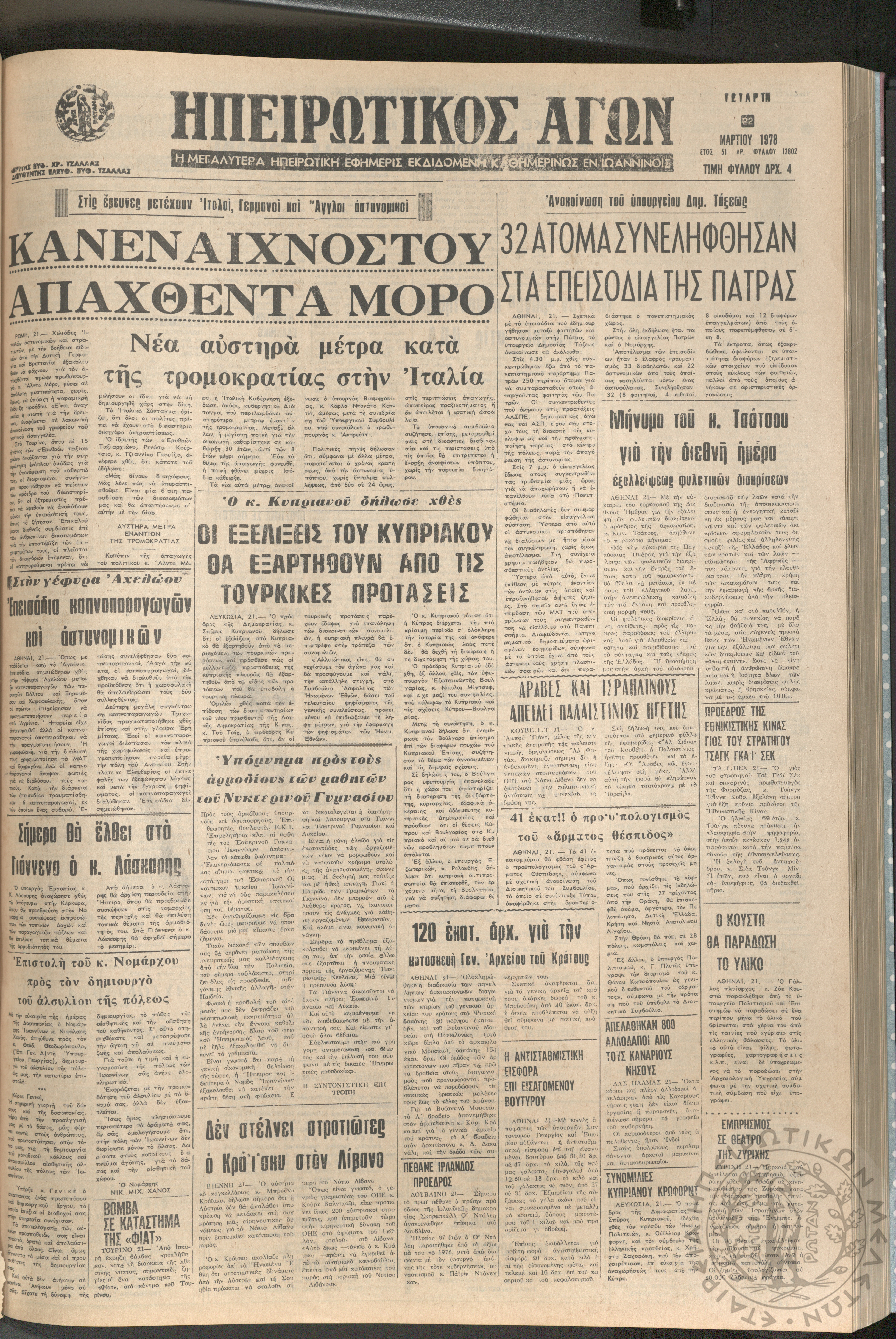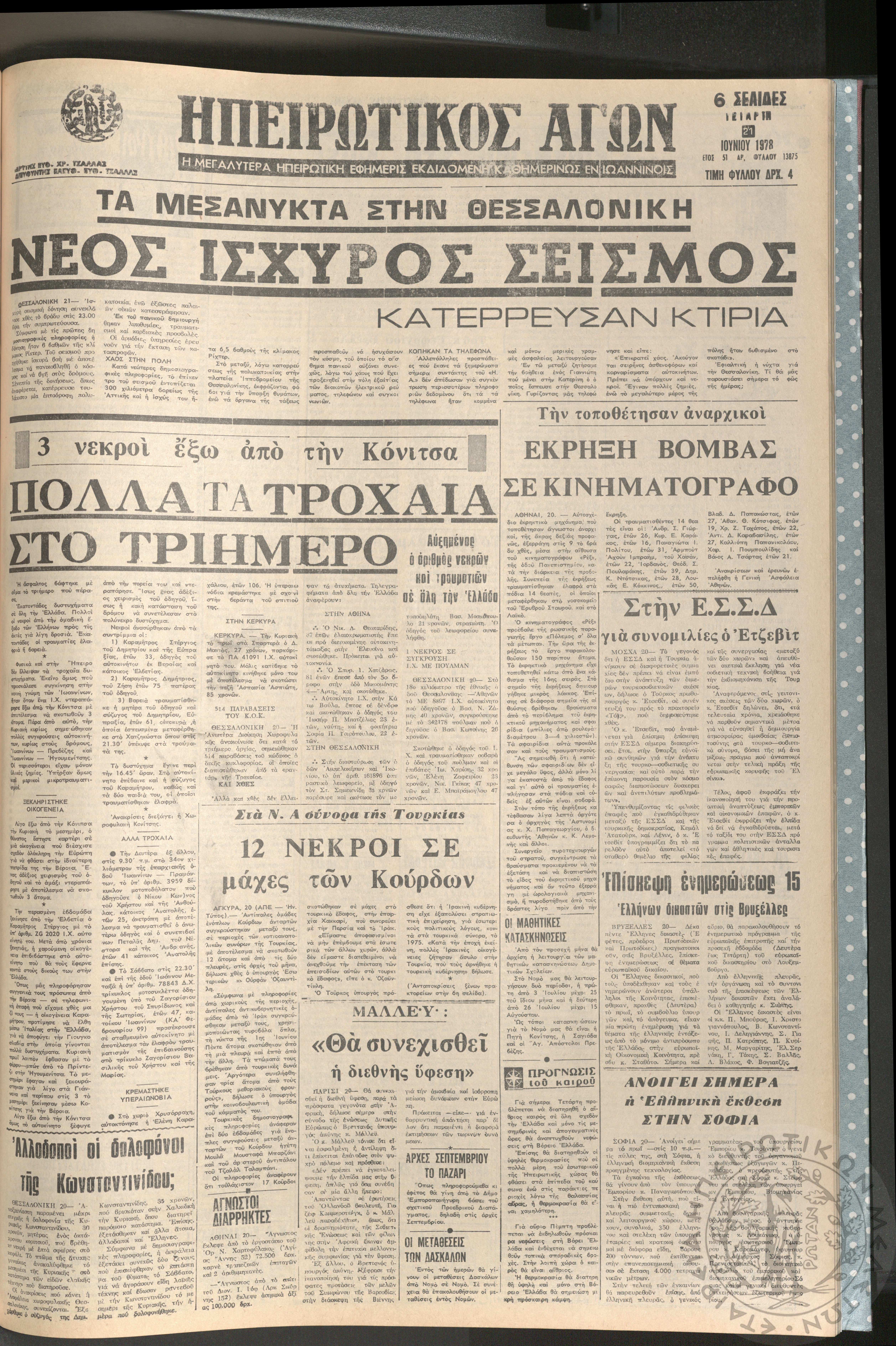 Ηπειρωτικός Αγών: η μεγαλυτέρα ηπειρωτική εφημερίς εκδιδόμενη καθημερινώς εν Ιωαννίνοις, 1978, φ. 13779Έτος 51, φ. 13779...