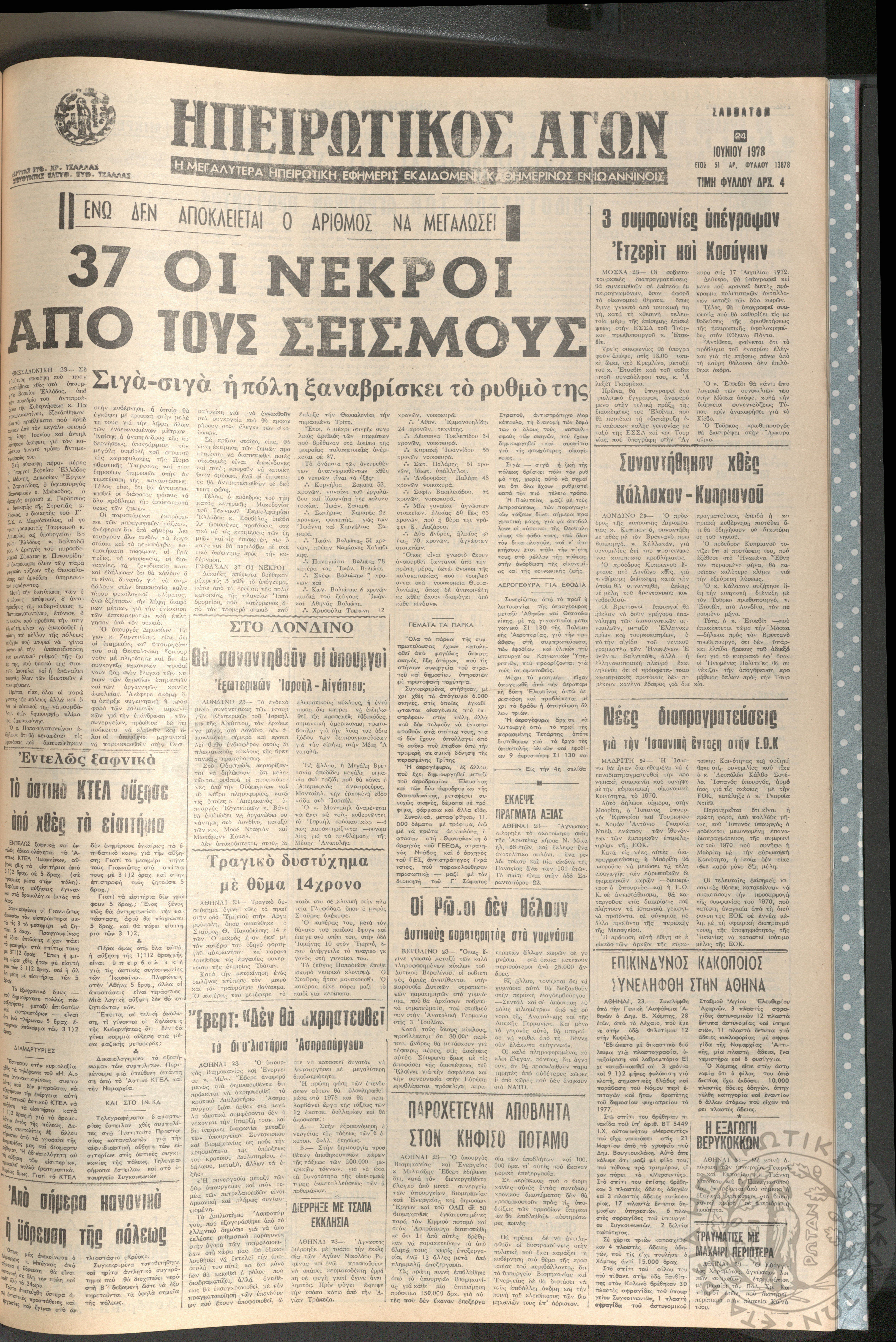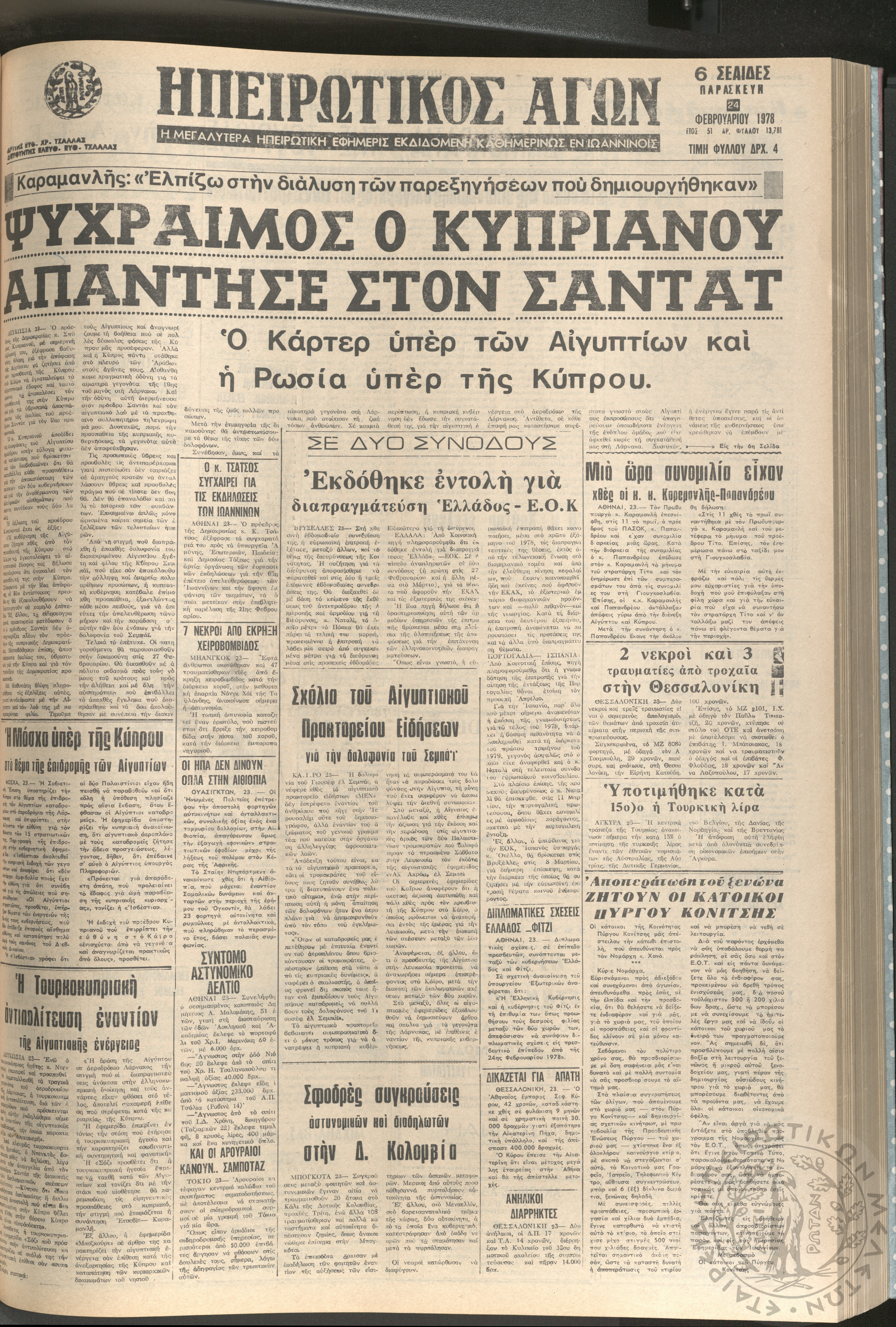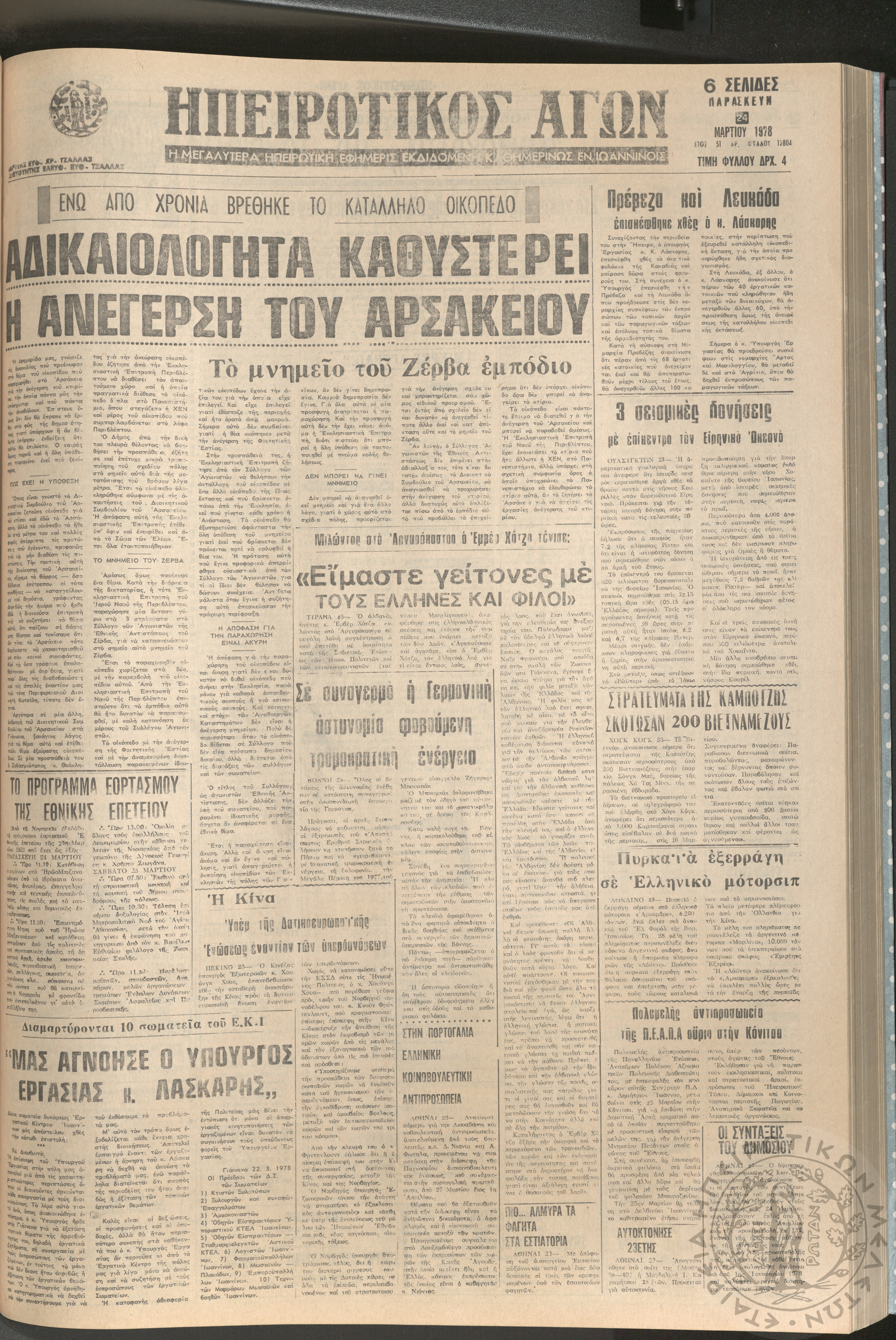 Ηπειρωτικός Αγών: η μεγαλυτέρα ηπειρωτική εφημερίς εκδιδόμενη καθημερινώς εν Ιωαννίνοις, 1978, φ. 13781Έτος 51, φ. 13781...