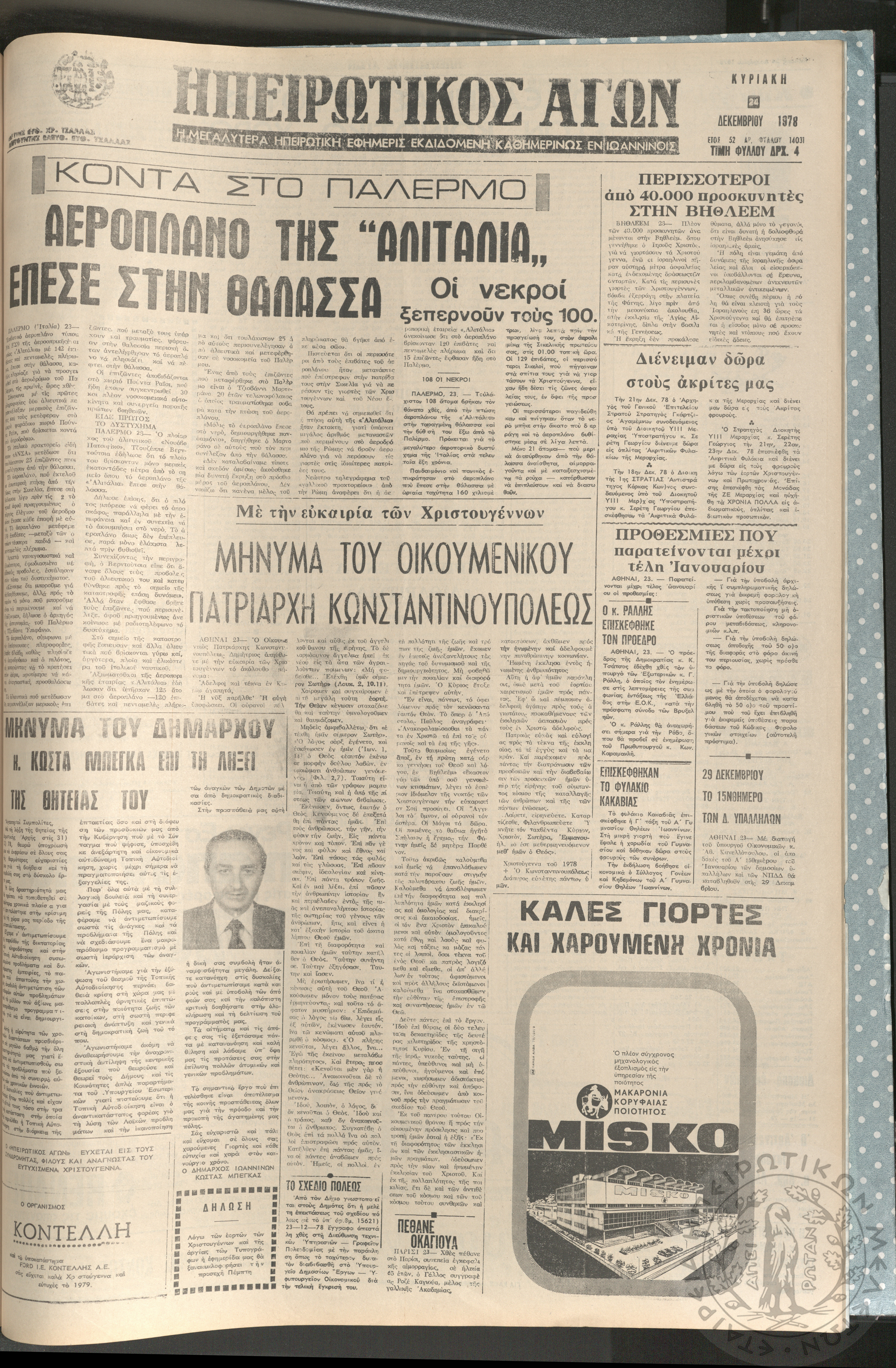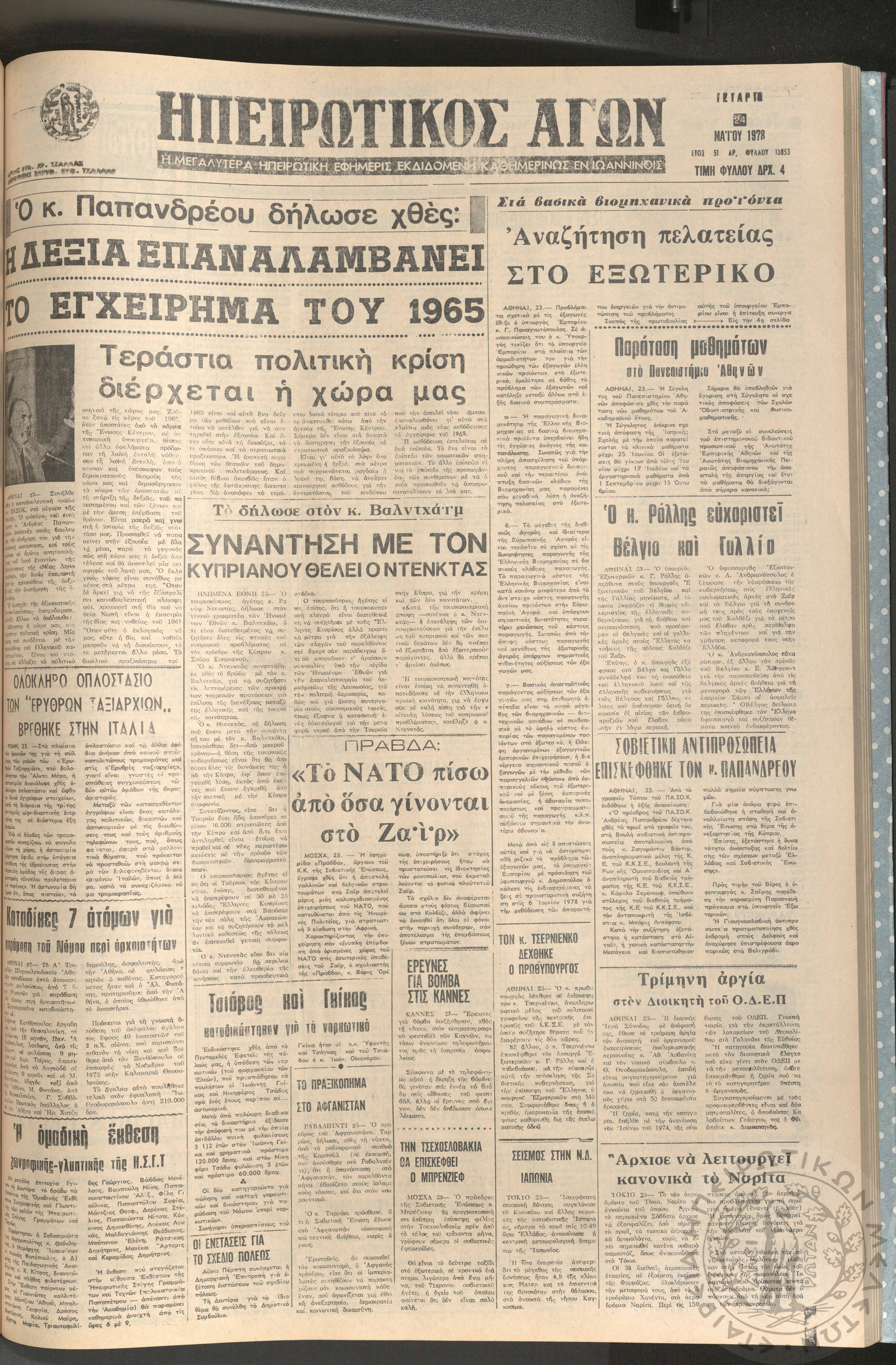 Ηπειρωτικός Αγών: η μεγαλυτέρα ηπειρωτική εφημερίς εκδιδόμενη καθημερινώς εν Ιωαννίνοις, 1978, φ. 13804Έτος 51, φ. 13804...
