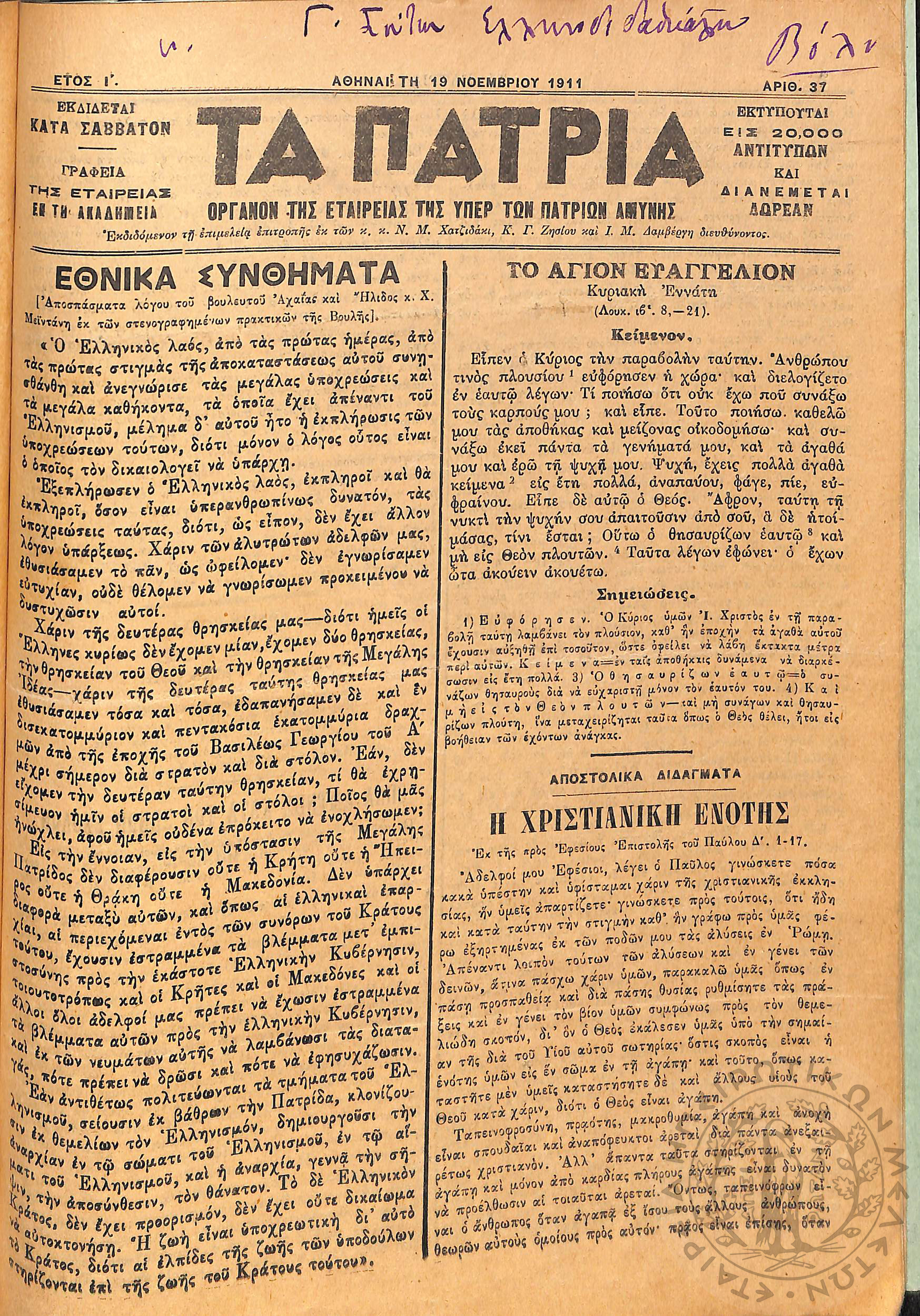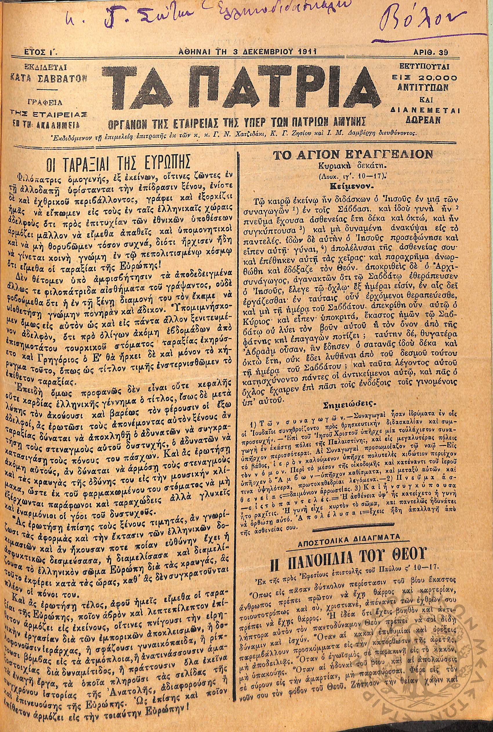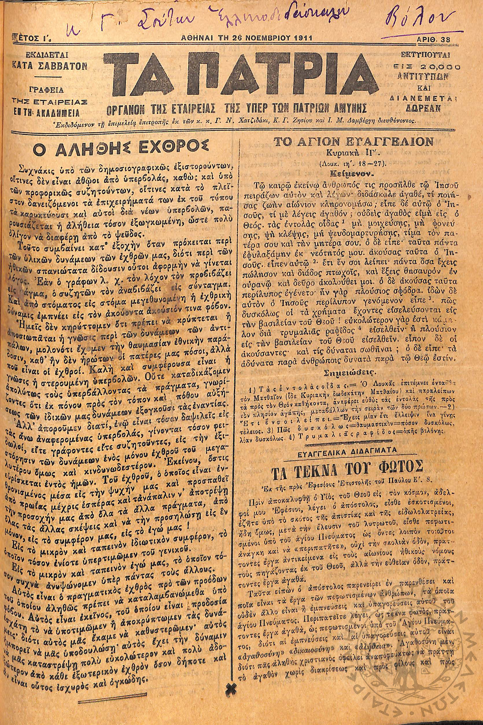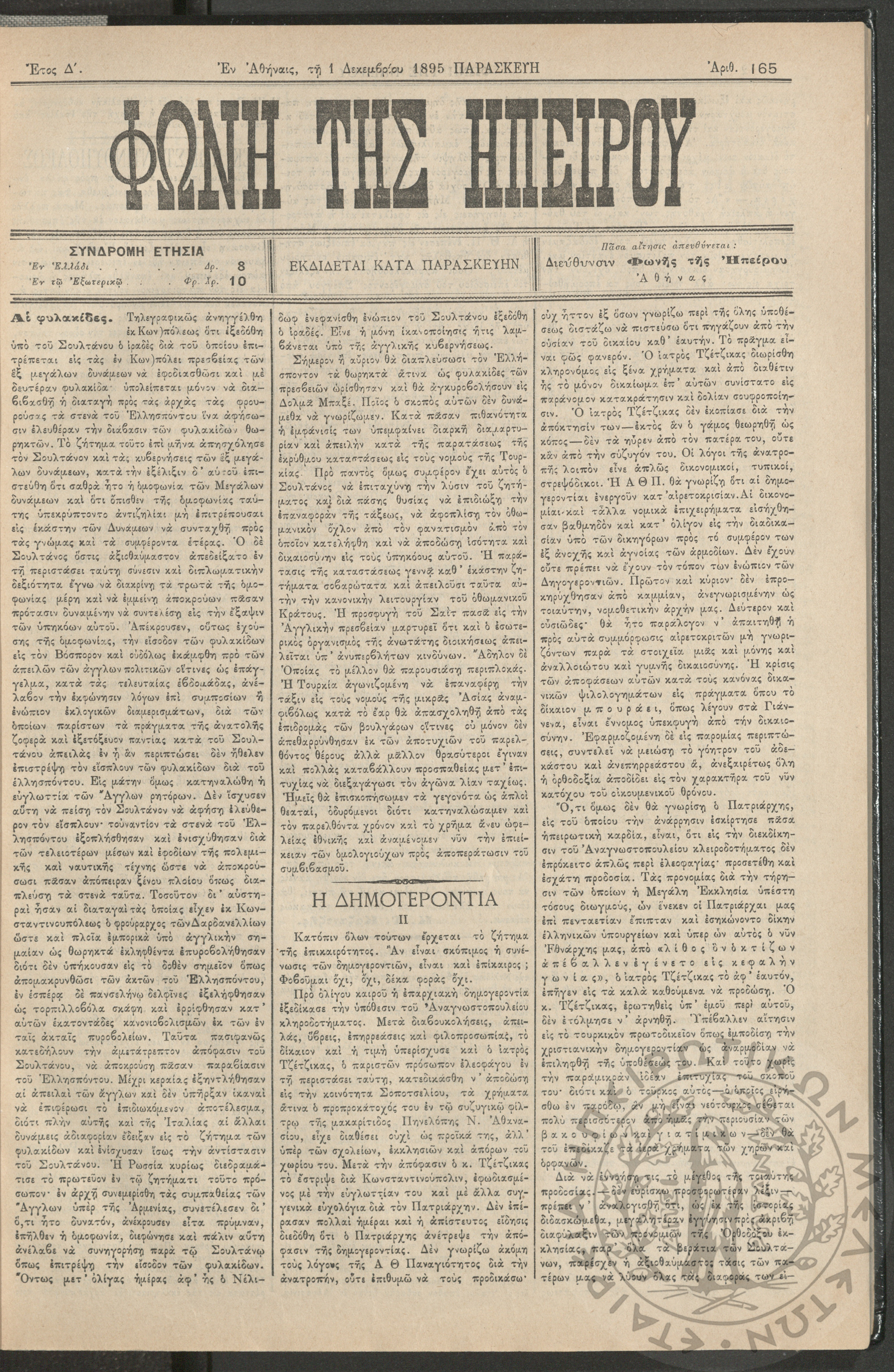 Ηπειρωτικός Αγών: η μεγαλυτέρα ηπειρωτική εφημερίς εκδιδόμενη καθημερινώς εν Ιωαννίνοις, φ. 14031Έτος 52, φ. 14031...