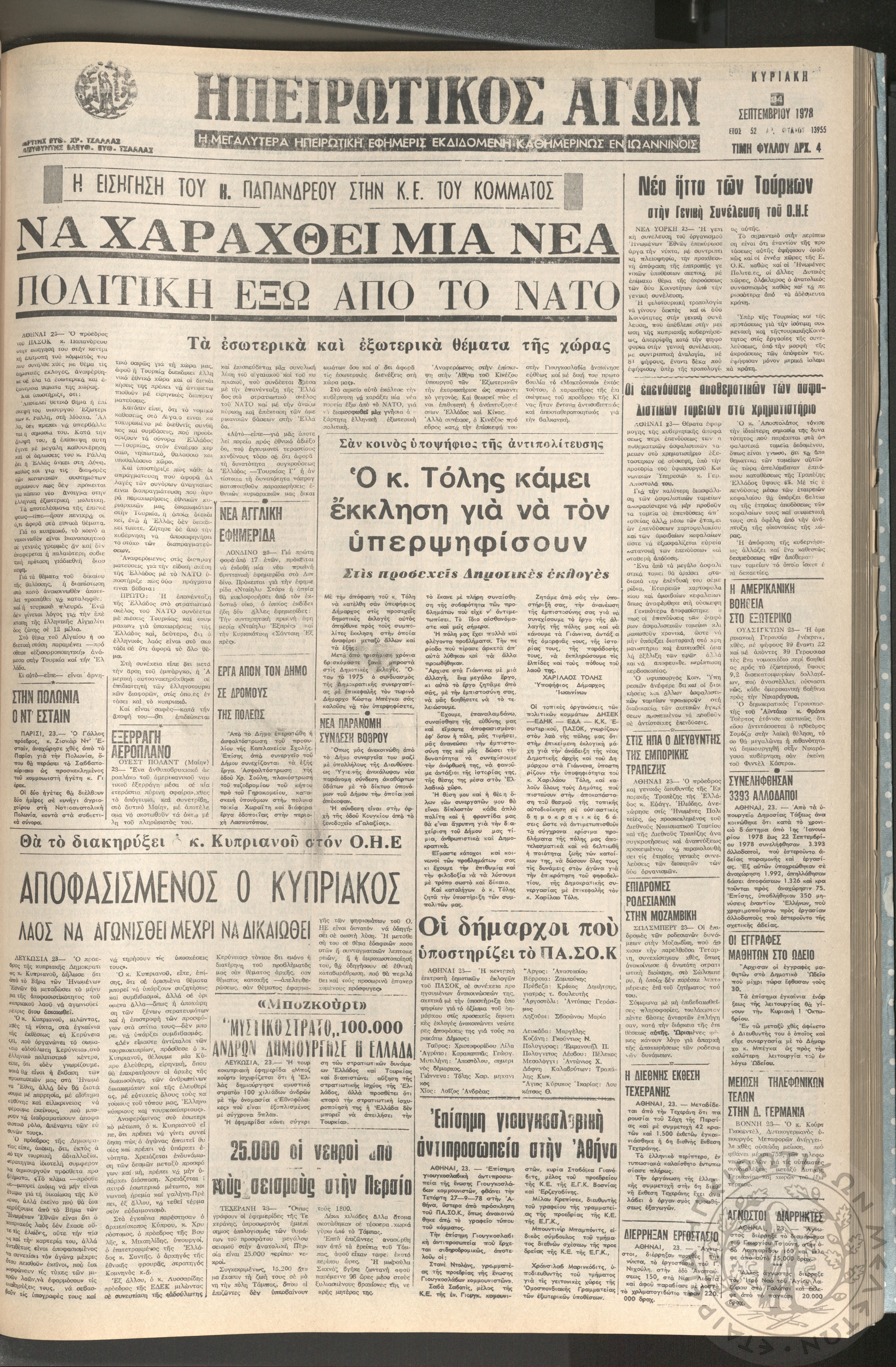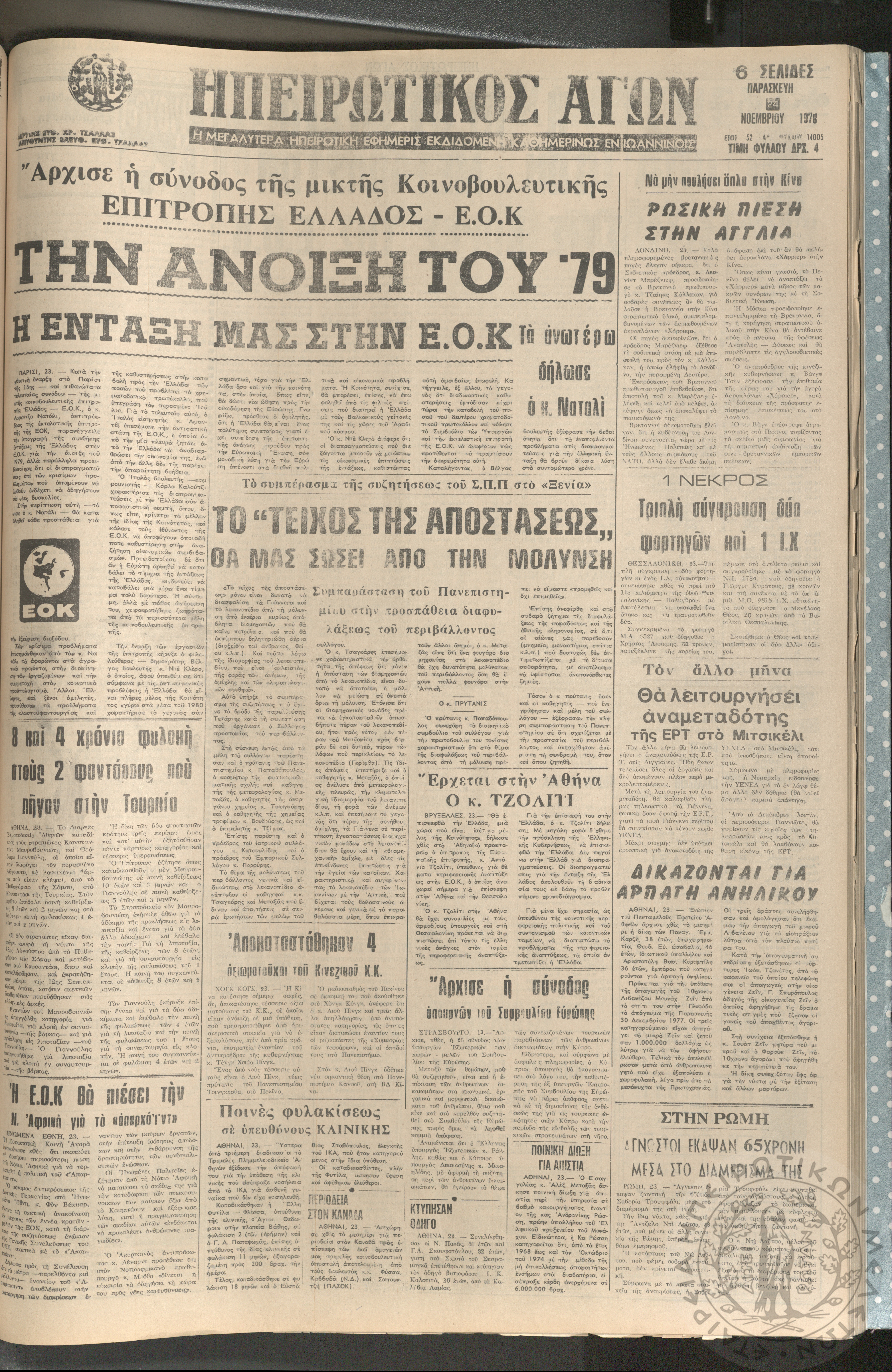 Ηπειρωτικός Αγών: η μεγαλυτέρα ηπειρωτική εφημερίς εκδιδόμενη καθημερινώς εν Ιωαννίνοις, 1978, φ. 13979Έτος 52, φ. 13979...