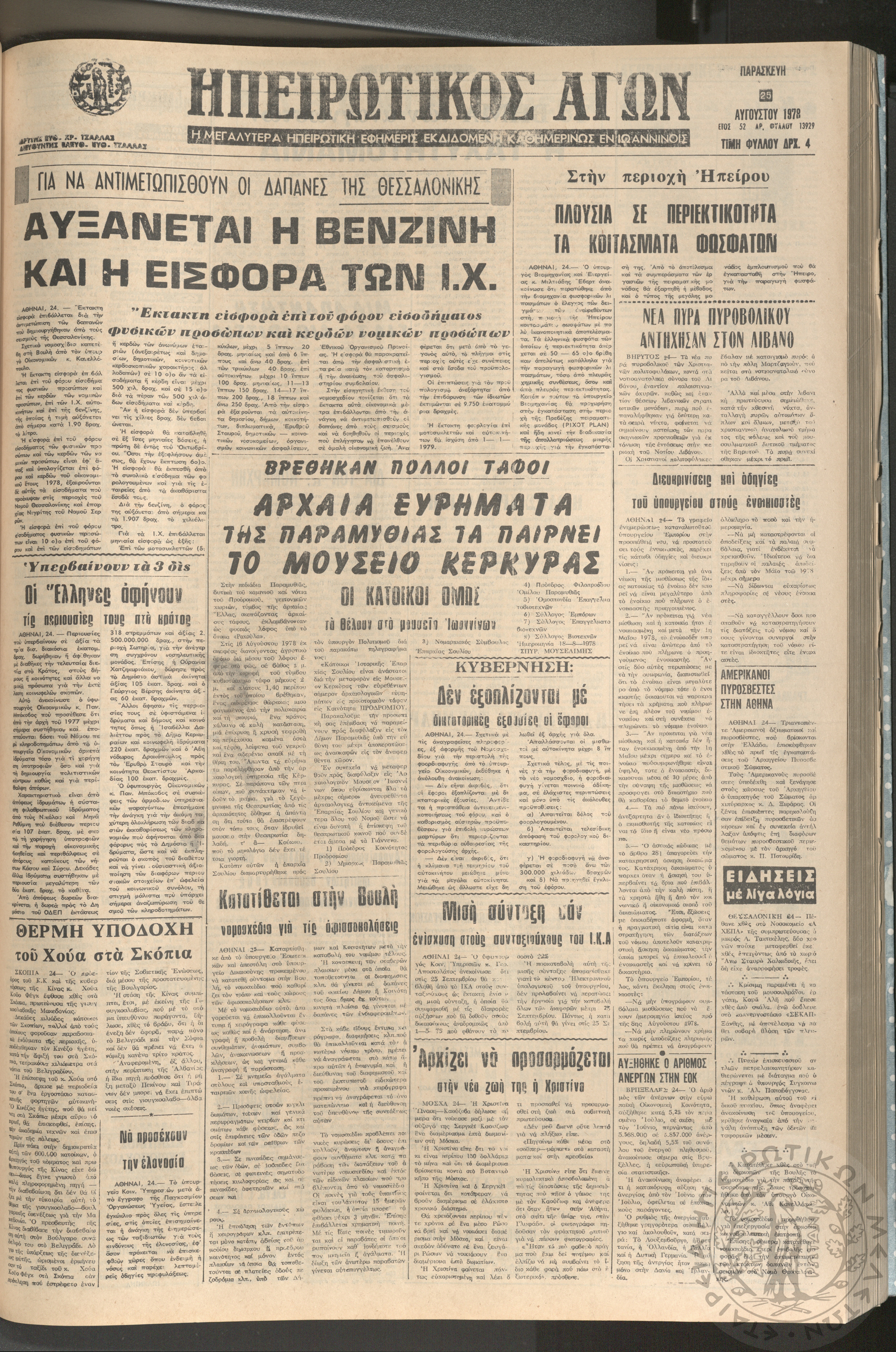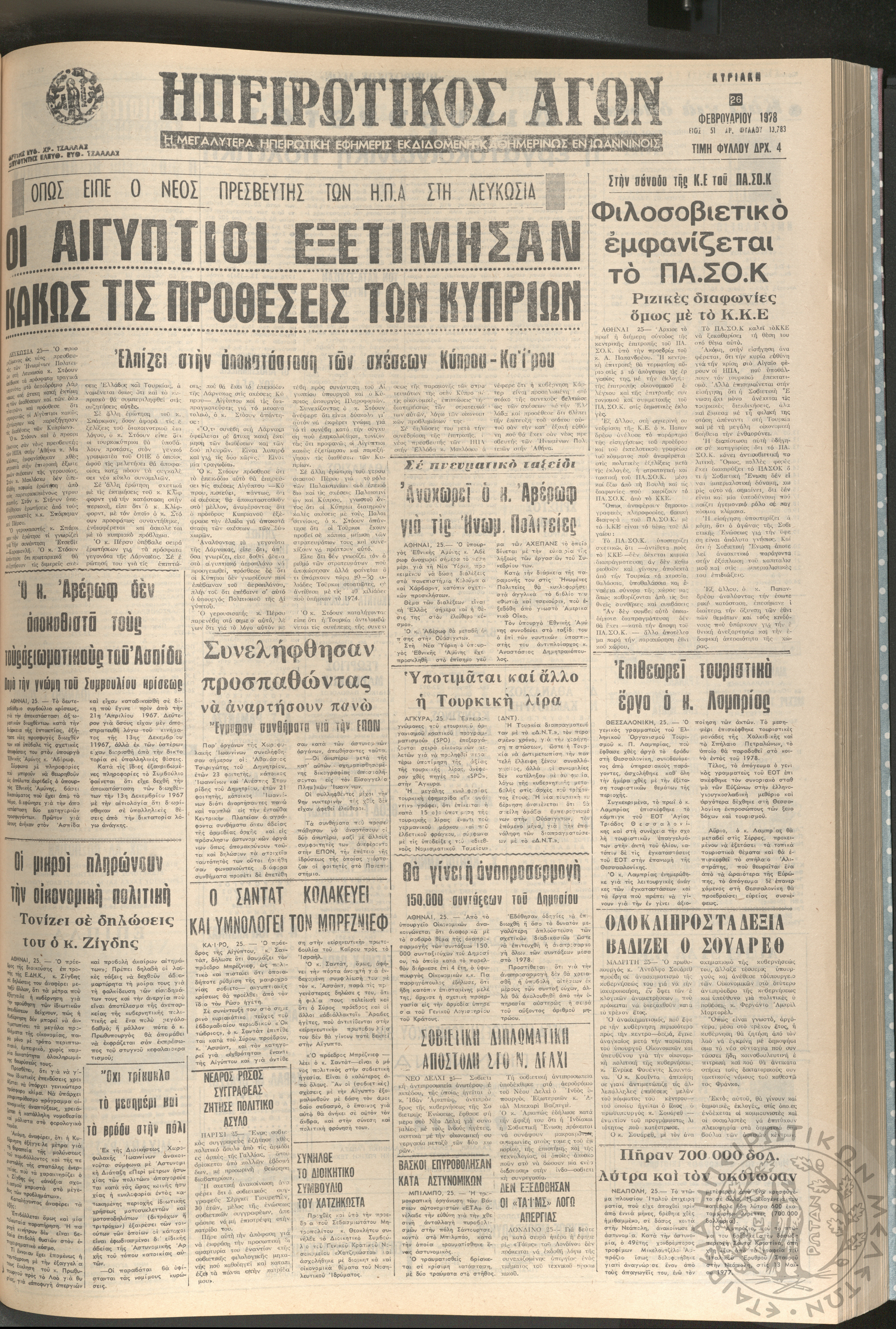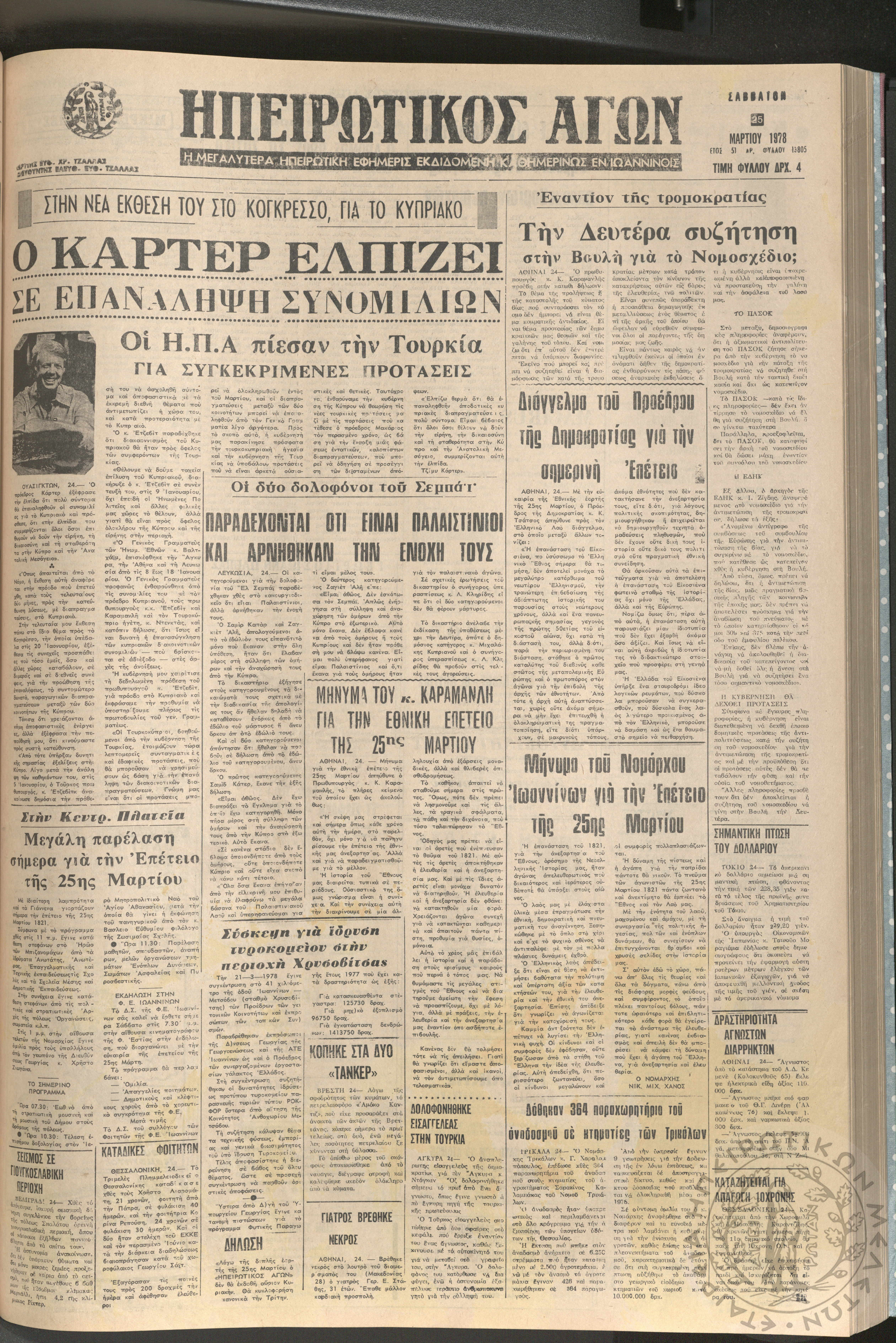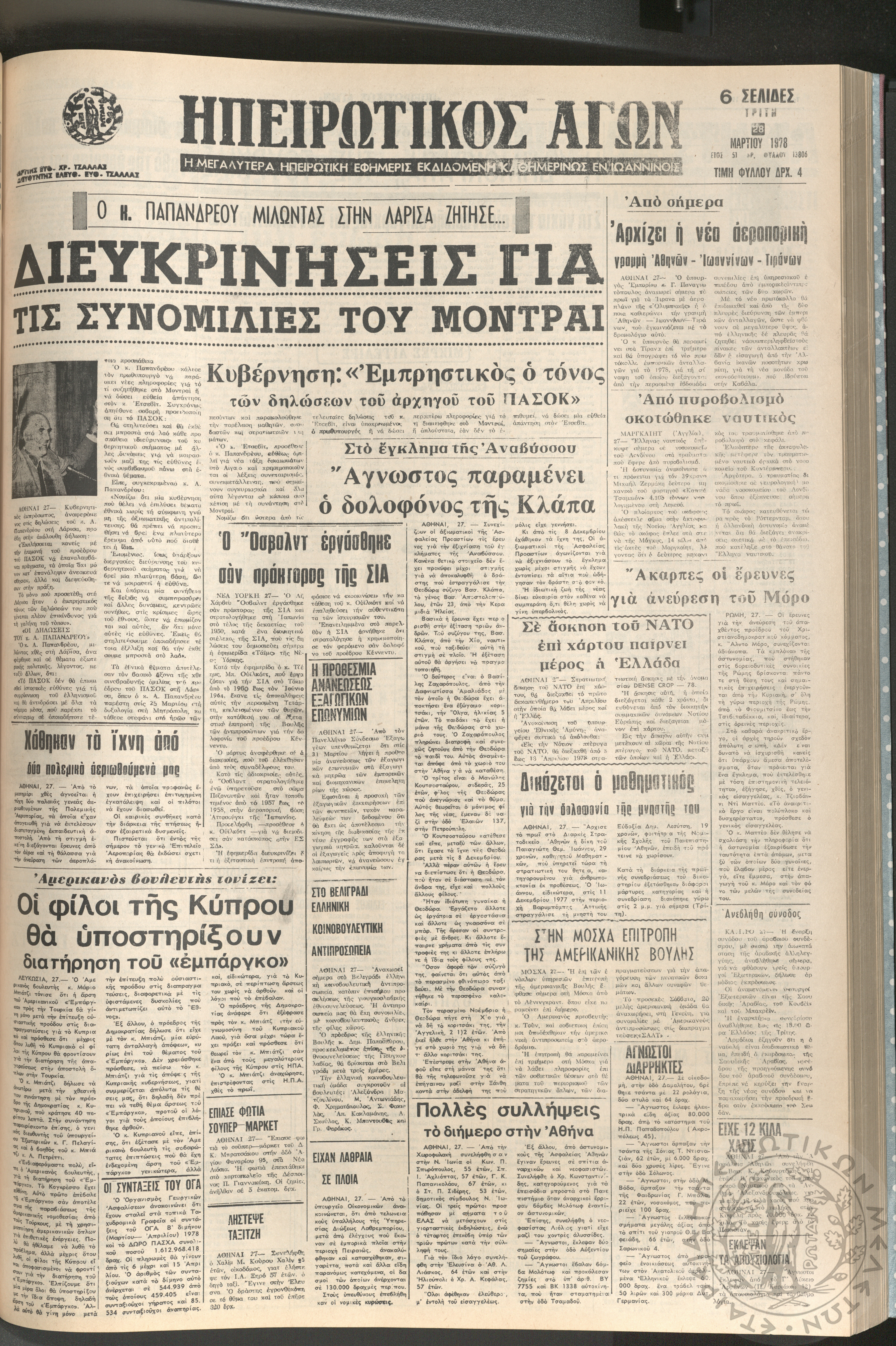 Ηπειρωτικός Αγών: η μεγαλυτέρα ηπειρωτική εφημερίς εκδιδόμενη καθημερινώς εν Ιωαννίνοις, 1978, φ. [1390]Έτος 51, φ. [1390]...