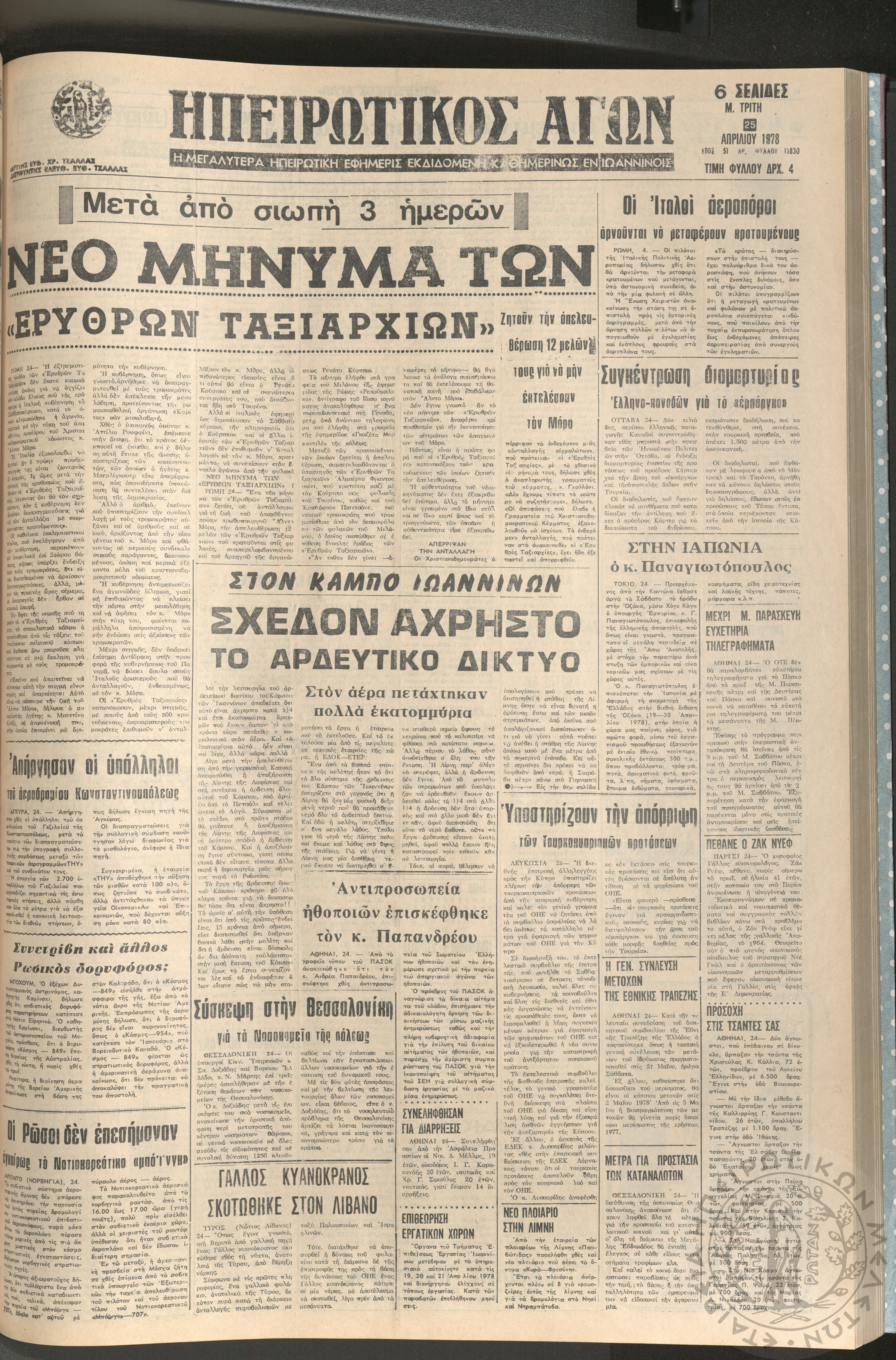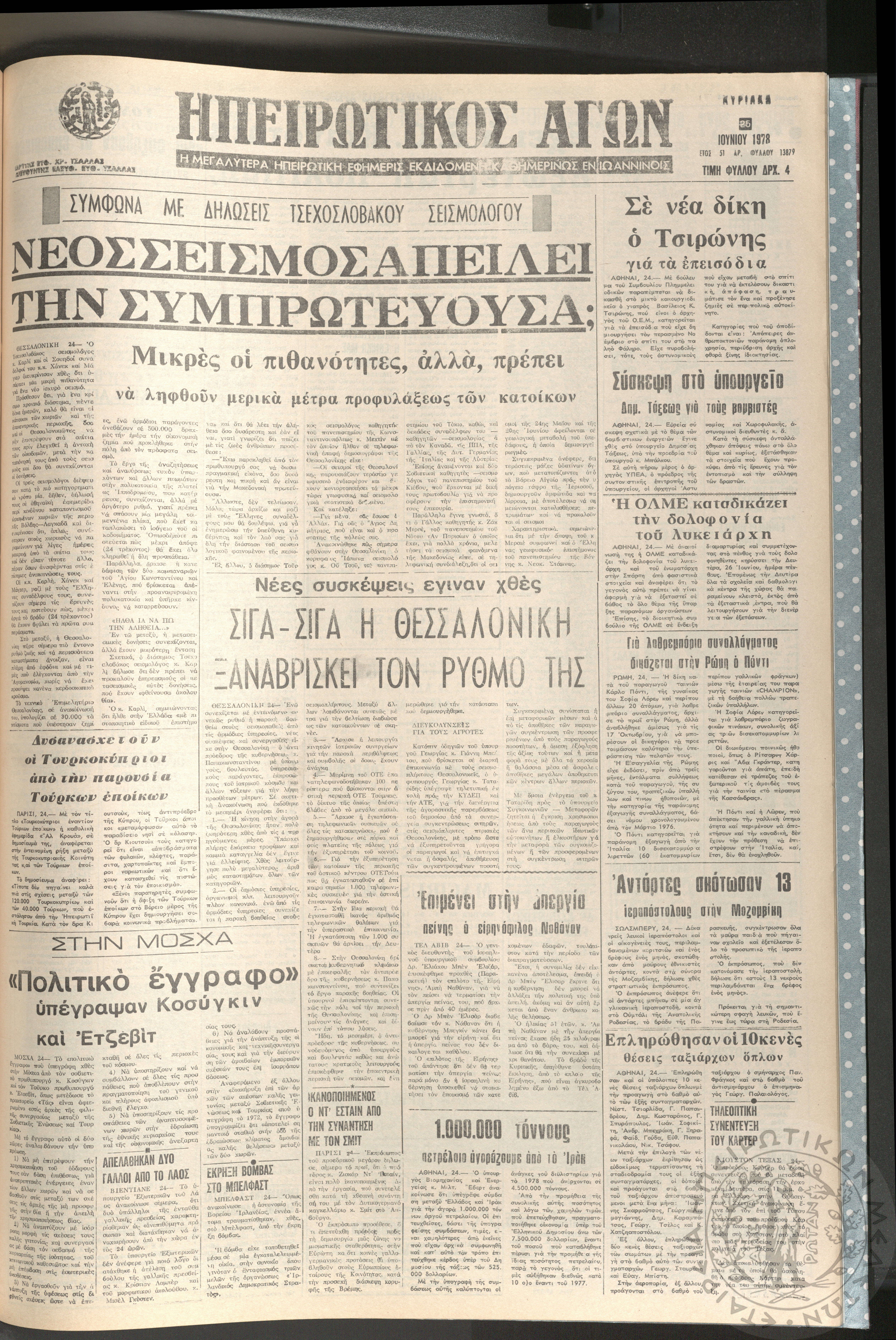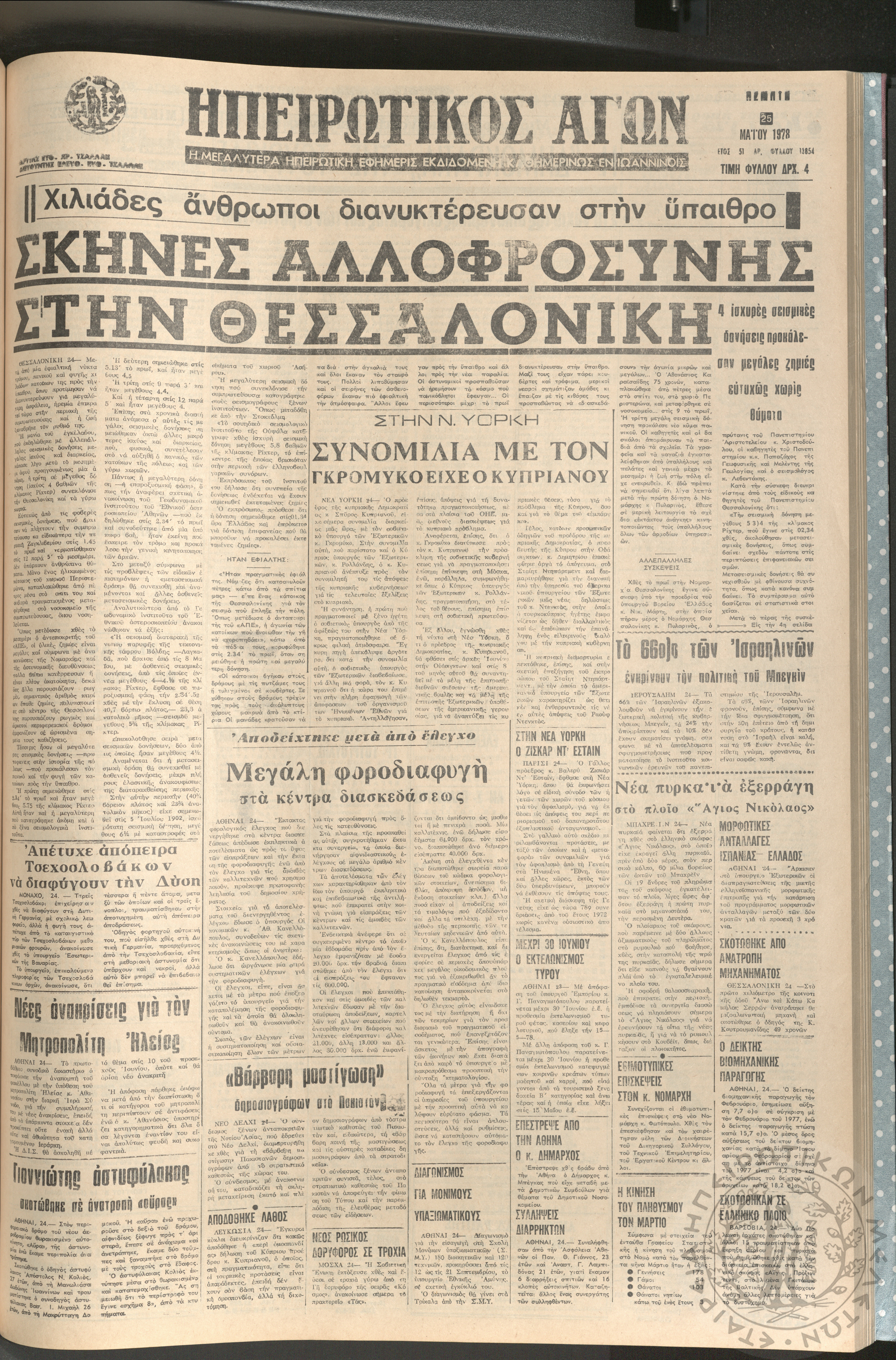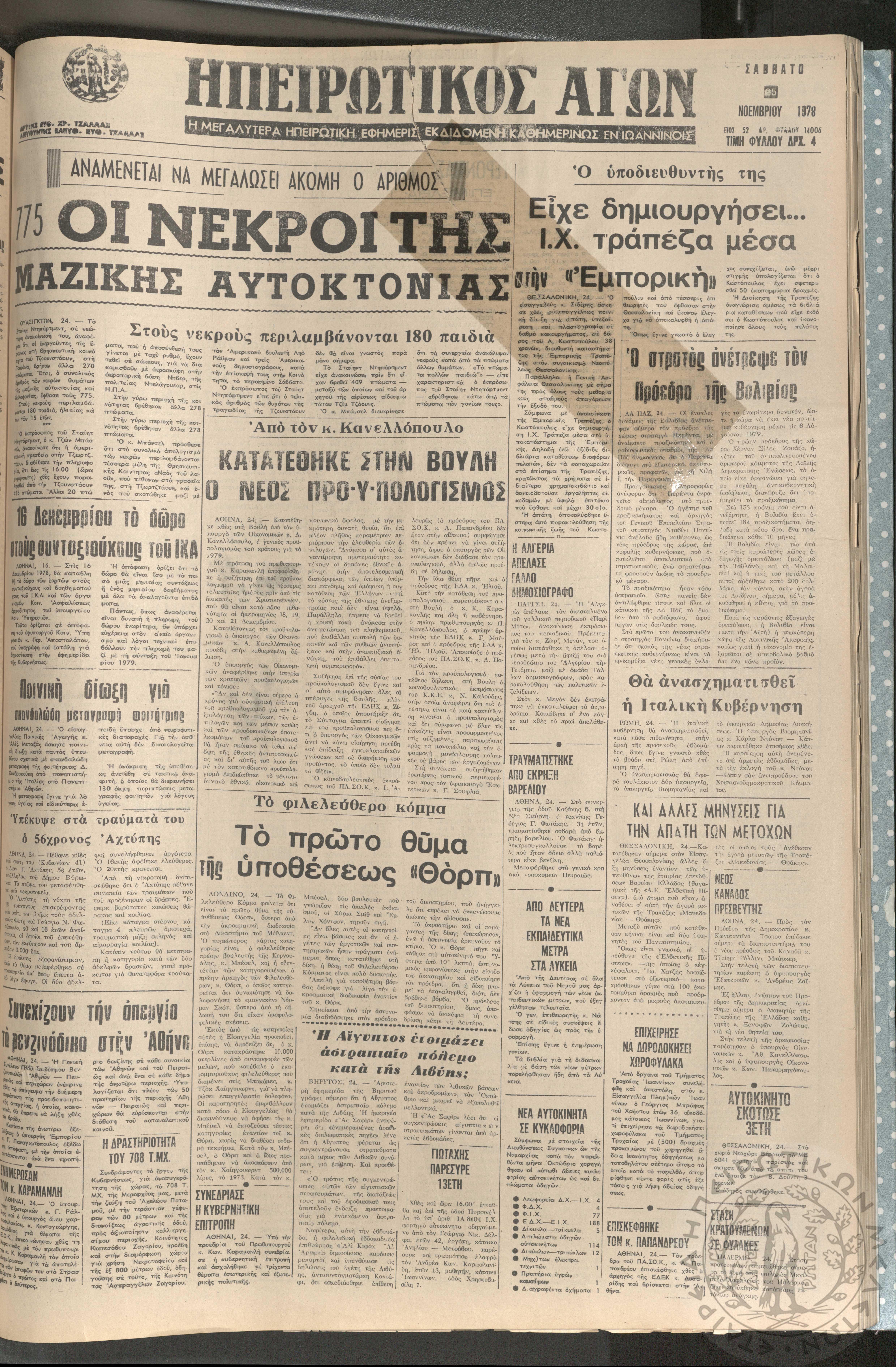 Ηπειρωτικός Αγών: η μεγαλυτέρα ηπειρωτική εφημερίς εκδιδόμενη καθημερινώς εν Ιωαννίνοις, 1978, φ. [1390]Έτος 51, φ. [1390]...