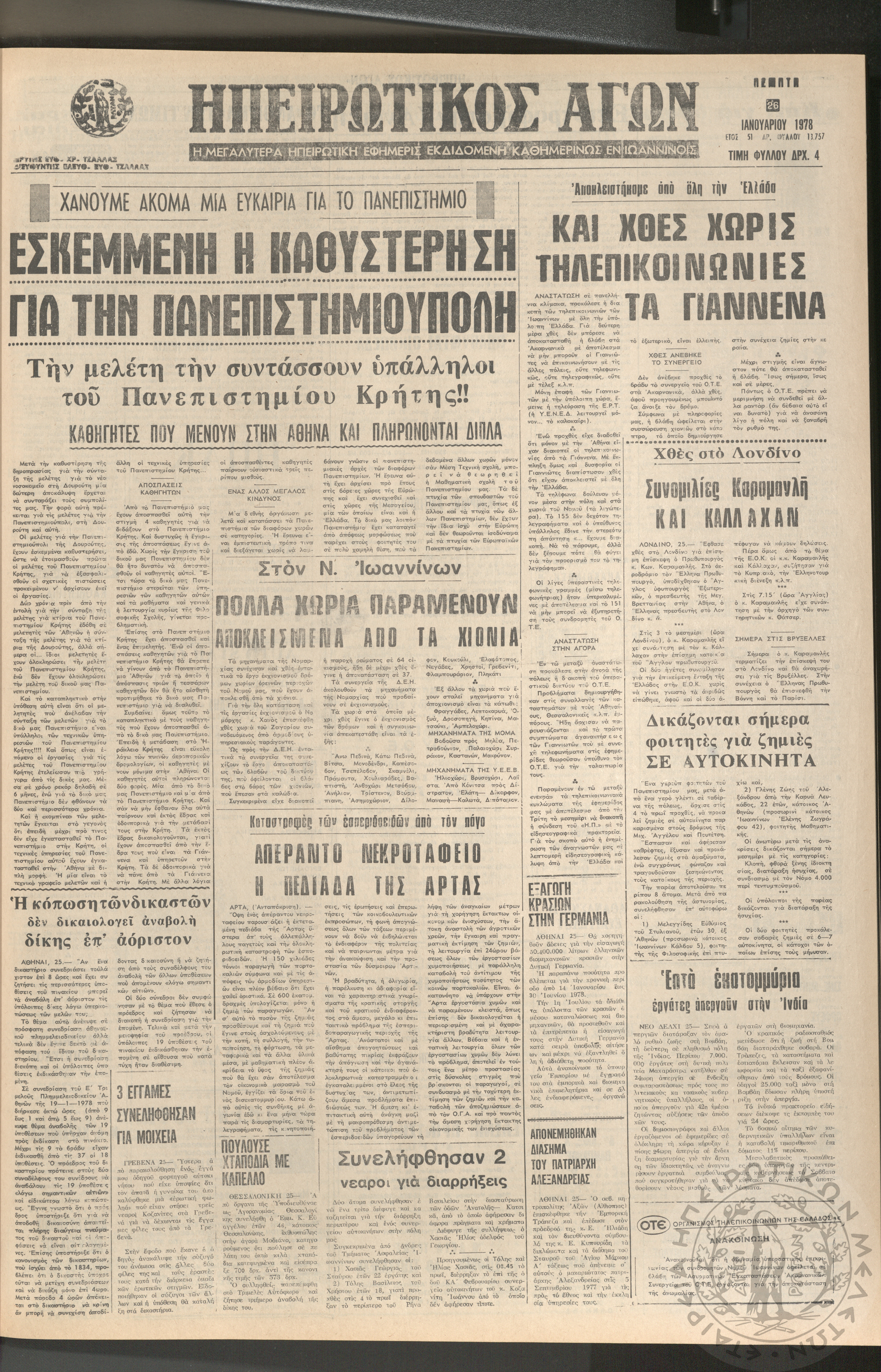 Ηπειρωτικός Αγών: η μεγαλυτέρα ηπειρωτική εφημερίς εκδιδόμενη καθημερινώς εν Ιωαννίνοις, 1978, φ. 13831Έτος 51, φ. 13831...