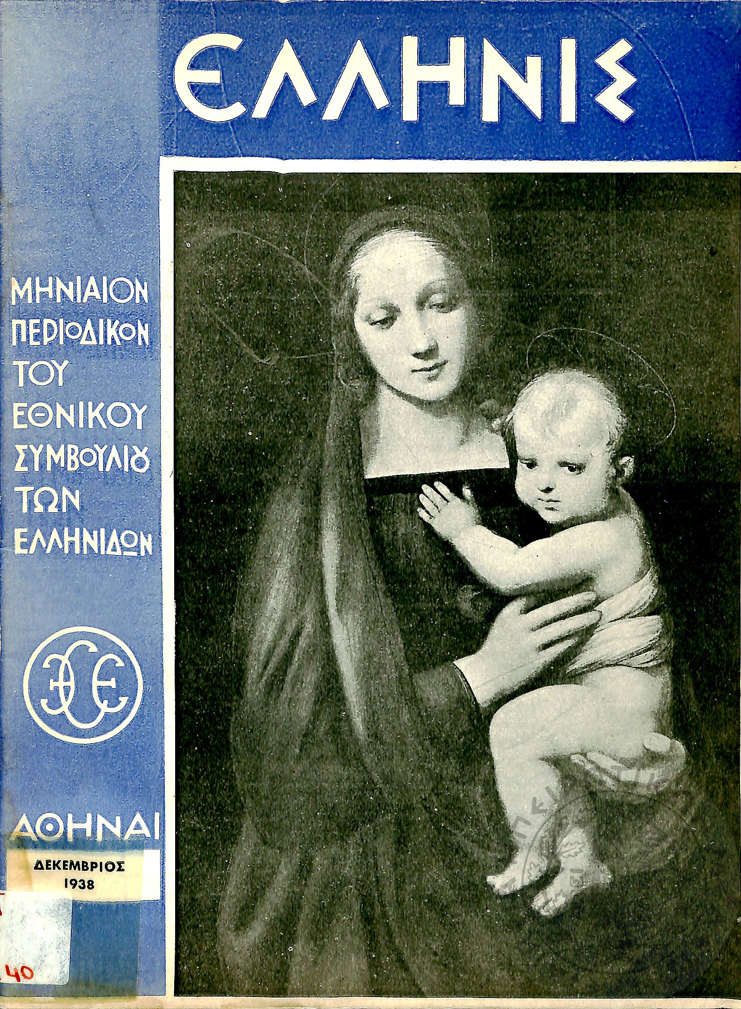 Ελληνίς: μηνιαίον περιοδικόν του Εθνικού Συμβουλίου των Ελληνίδων (1938, τεύχ. 12)Έτος ΙH΄, τεύχ. 12...