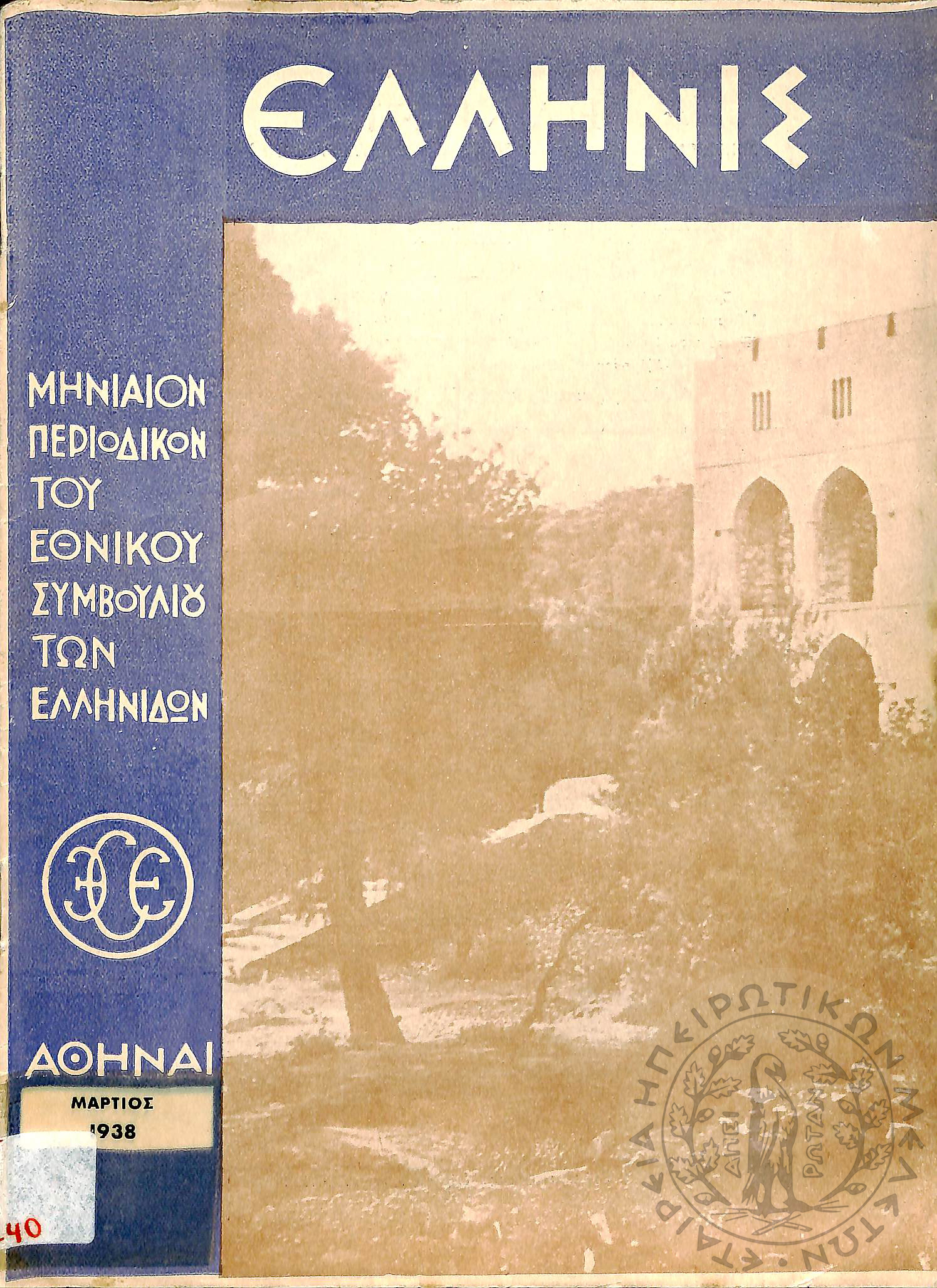 Ελληνίς: μηνιαίον περιοδικόν του Εθνικού Συμβουλίου των Ελληνίδων (1938, τεύχ. 3)Έτος ΙH΄, τεύχ. 3...