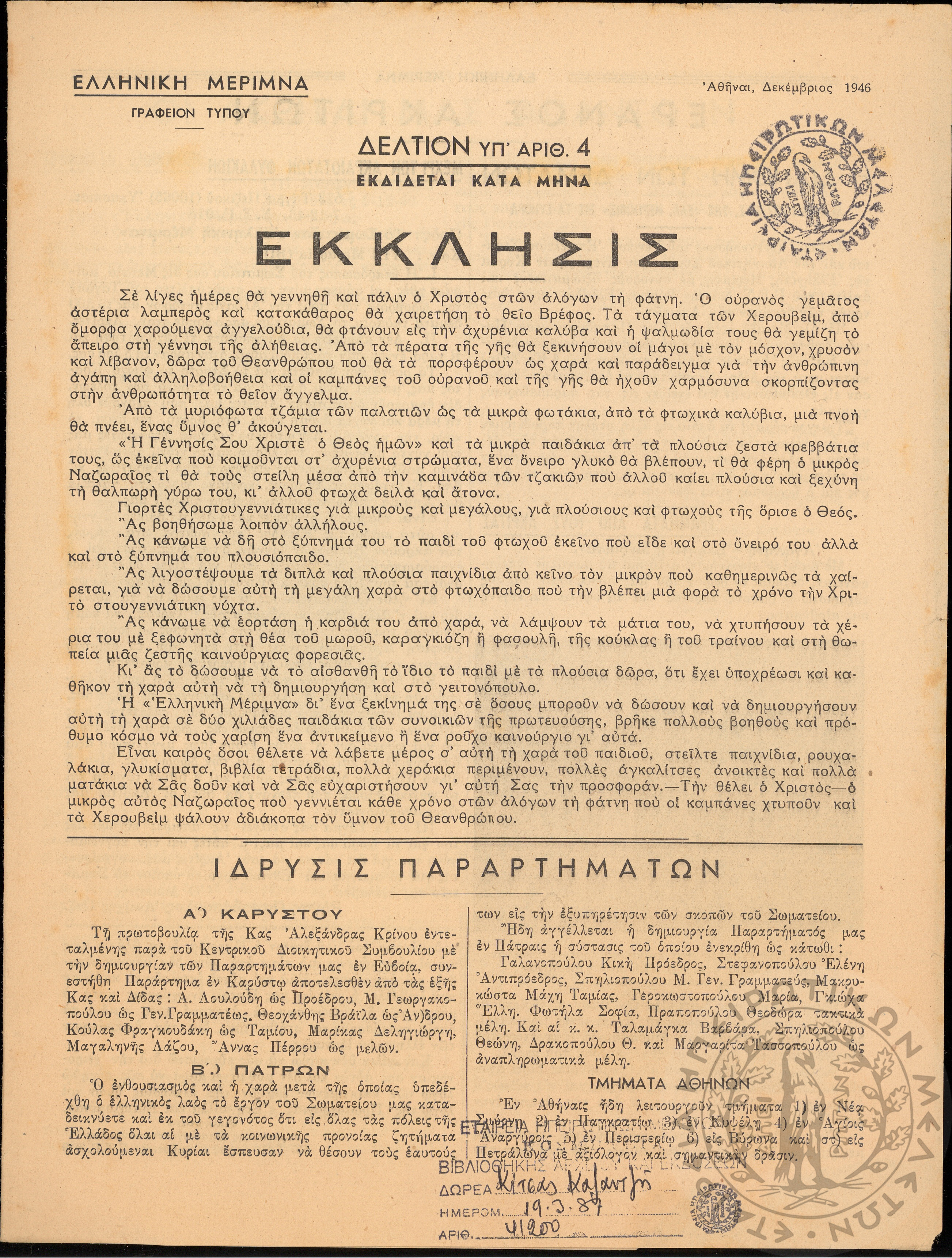 Ελληνίς: μηνιαίον περιοδικόν του Εθνικού Συμβουλίου των Ελληνίδων (1939, τεύχ. 4)Έτος ΙΘ΄, τεύχ. 4...