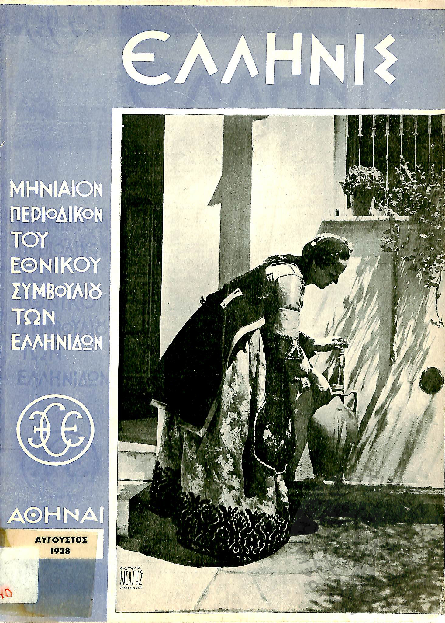 Ελληνίς: μηνιαίον περιοδικόν του Εθνικού Συμβουλίου των Ελληνίδων (1938, τεύχ. 8)Έτος ΙH΄, τεύχ. 8...