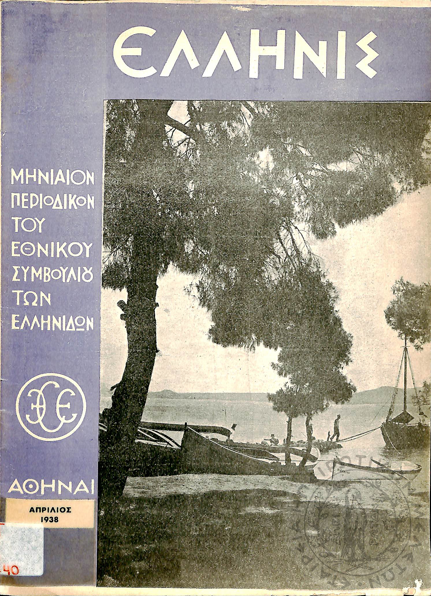 Ελληνίς: μηνιαίον περιοδικόν του Εθνικού Συμβουλίου των Ελληνίδων (1938, τεύχ. 4)Έτος ΙH΄, τεύχ. 4...