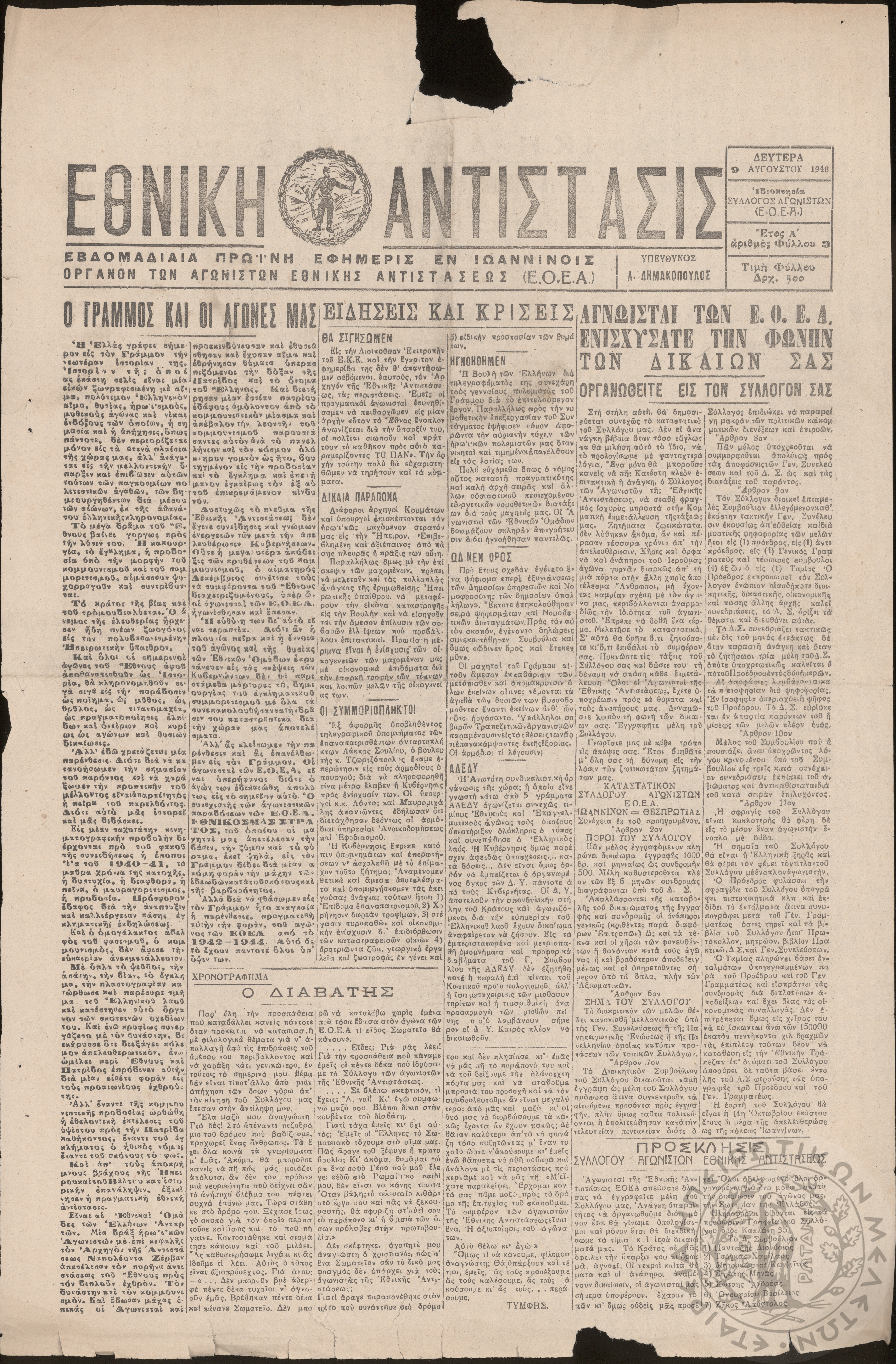 Εθνική Αντίστασις: εβδομαδιαία πρωϊνή εφημερίς εν Ιωαννίνοις: όργανον των αγωνιστών της Εθνικής Αντιστάσεως (Ε.Ο.Ε.Α.), 1948, φ. 3Έτος Α΄, φ. 3...