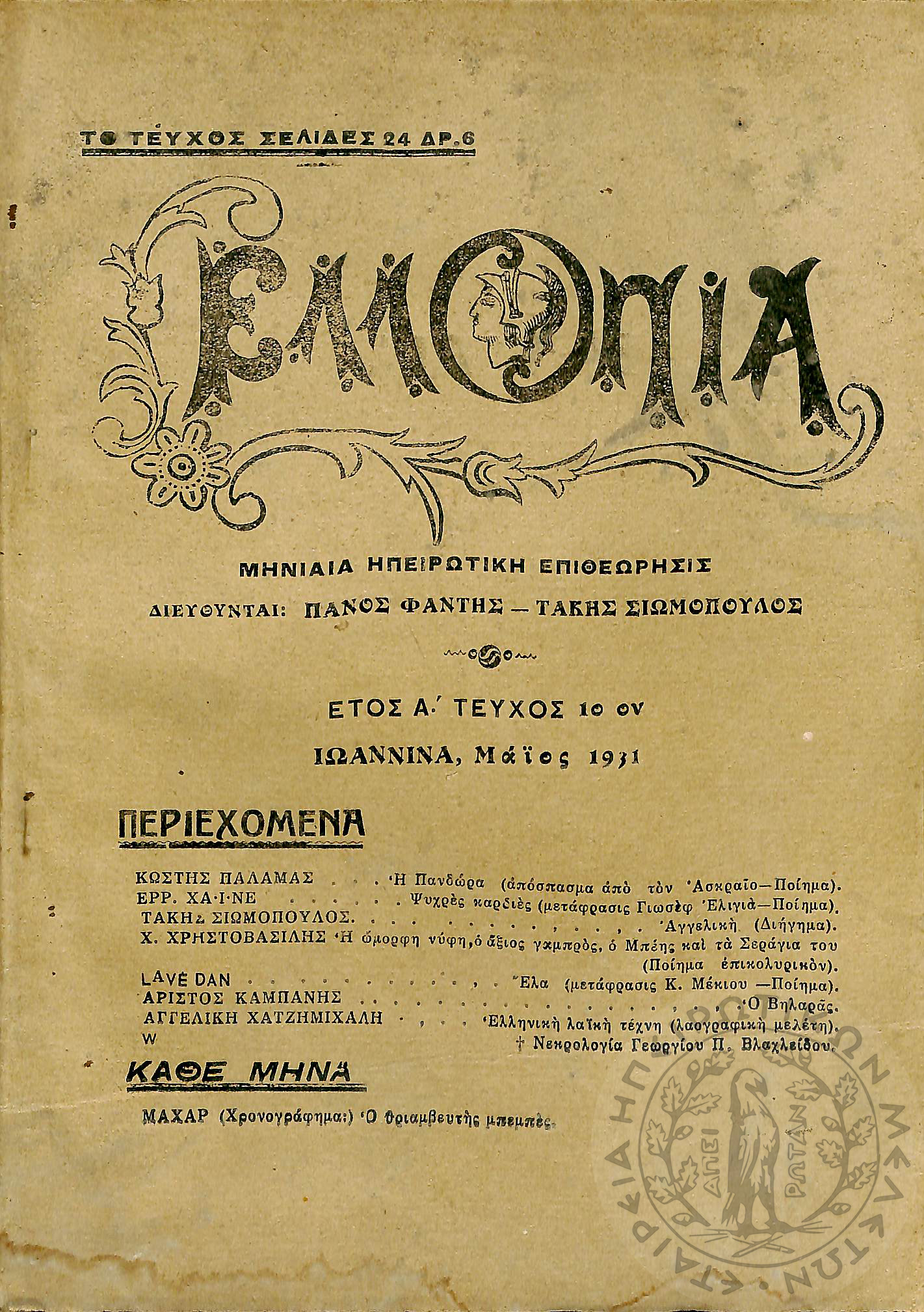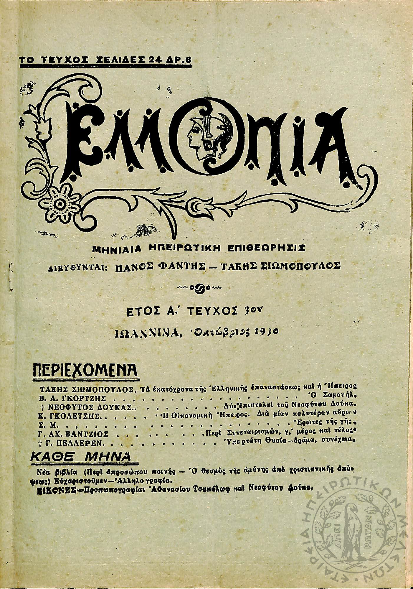 Ελληνίς: μηνιαίον περιοδικόν του Εθνικού Συμβουλίου των Ελληνίδων (1940, τεύχ. 10)Έτος Κ΄, τεύχ. 10...