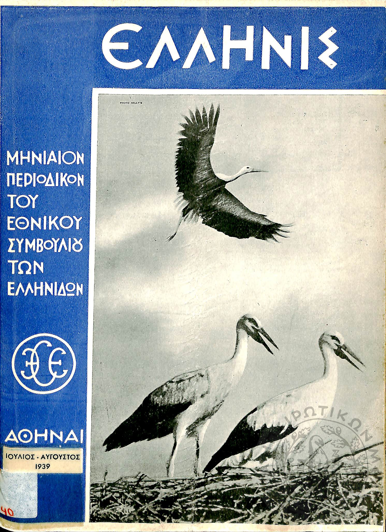 Ελληνίς: μηνιαίον περιοδικόν του Εθνικού Συμβουλίου των Ελληνίδων (1939, τεύχ. 7-8)Έτος ΙΘ΄, τεύχ. 7-8...