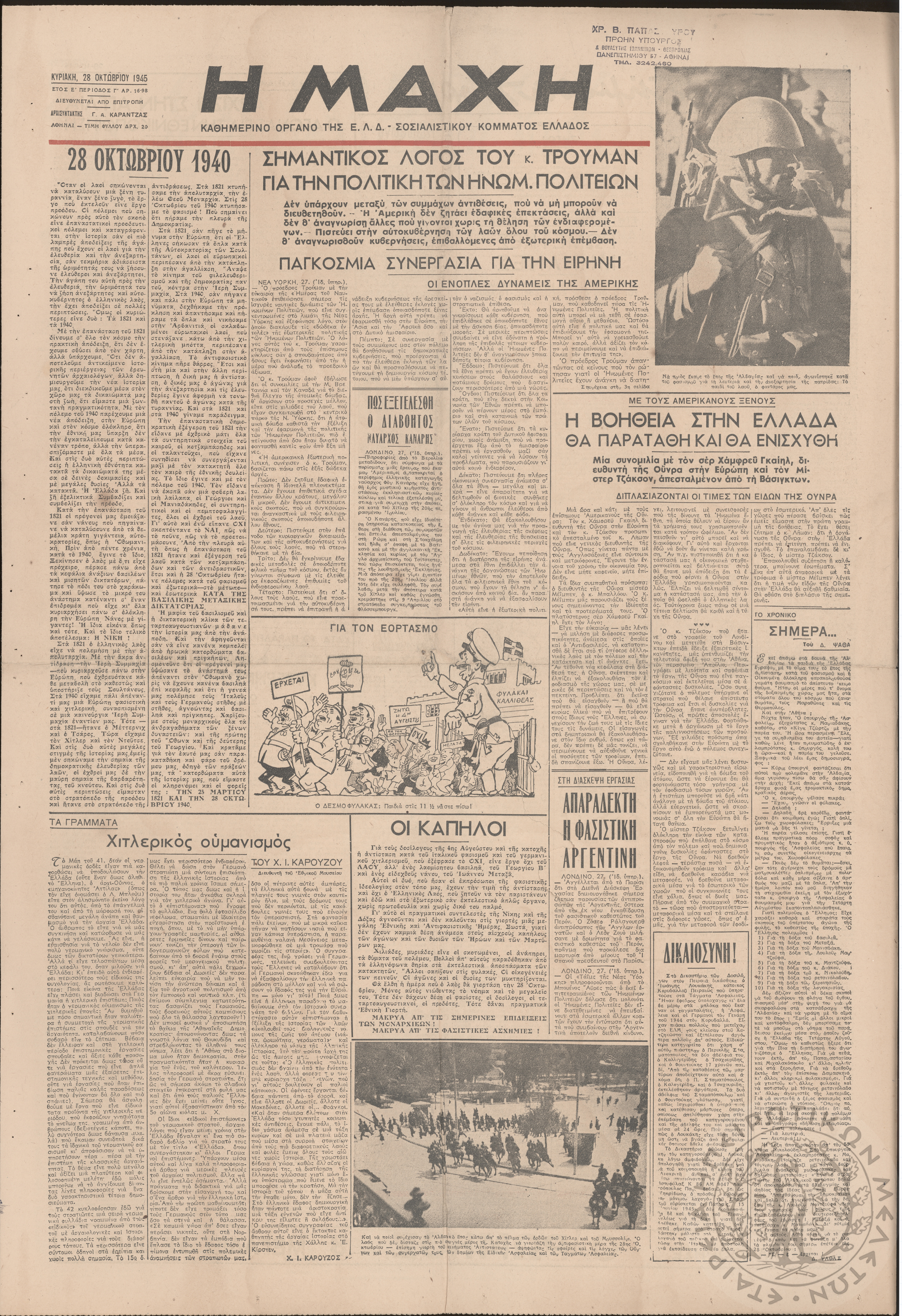 Η Μάχη: καθημερινό όργανο της Ε. Λ. Δ. - Σοσιαλιστικού Κόμματος Ελλάδος, 1945, φ. 16-98Έτος Ε΄, φ. 16-98...