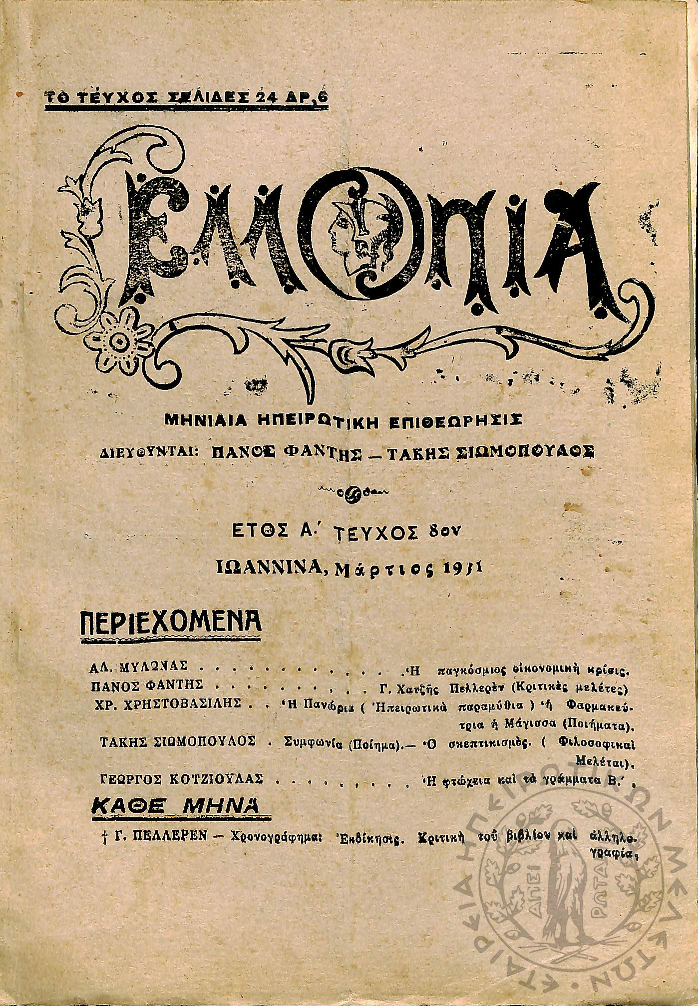 Ελληνίς: μηνιαίον περιοδικόν του Εθνικού Συμβουλίου των Ελληνίδων (1940, τεύχ. 7-8)Έτος Κ΄, τεύχ. 7-8...