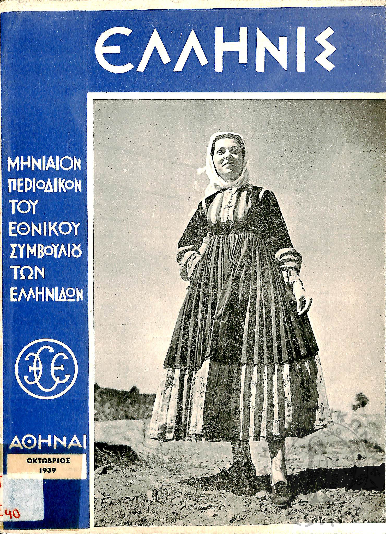 Ελληνίς: μηνιαίον περιοδικόν του Εθνικού Συμβουλίου των Ελληνίδων (1939, τεύχ. 10)Έτος ΙΘ΄, τεύχ. 10...