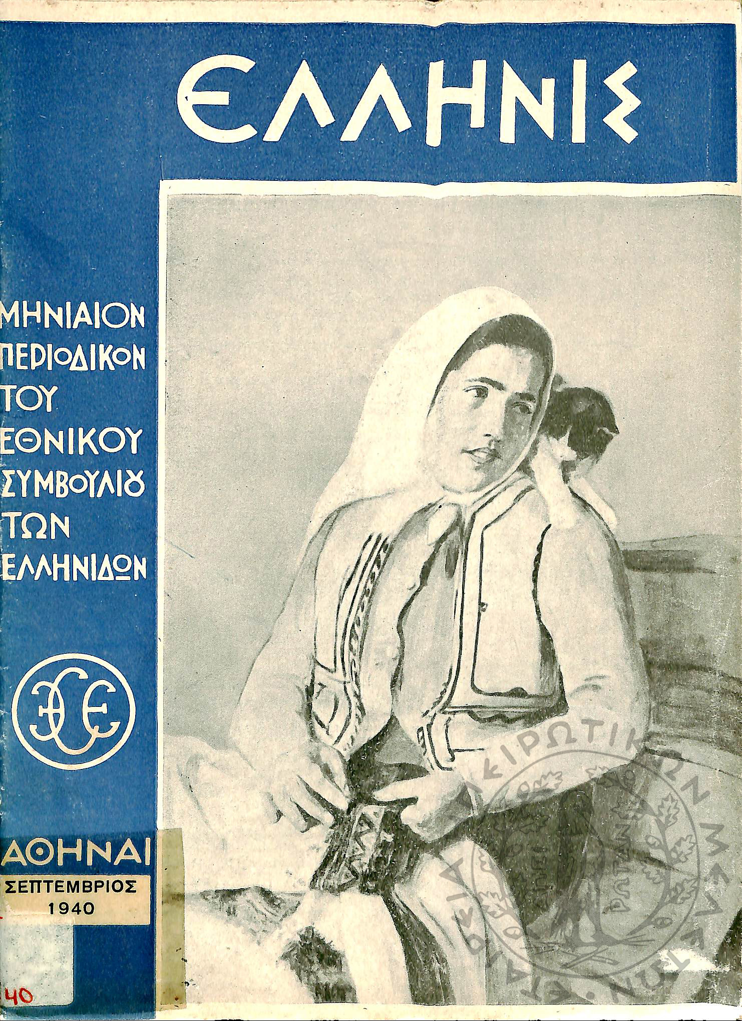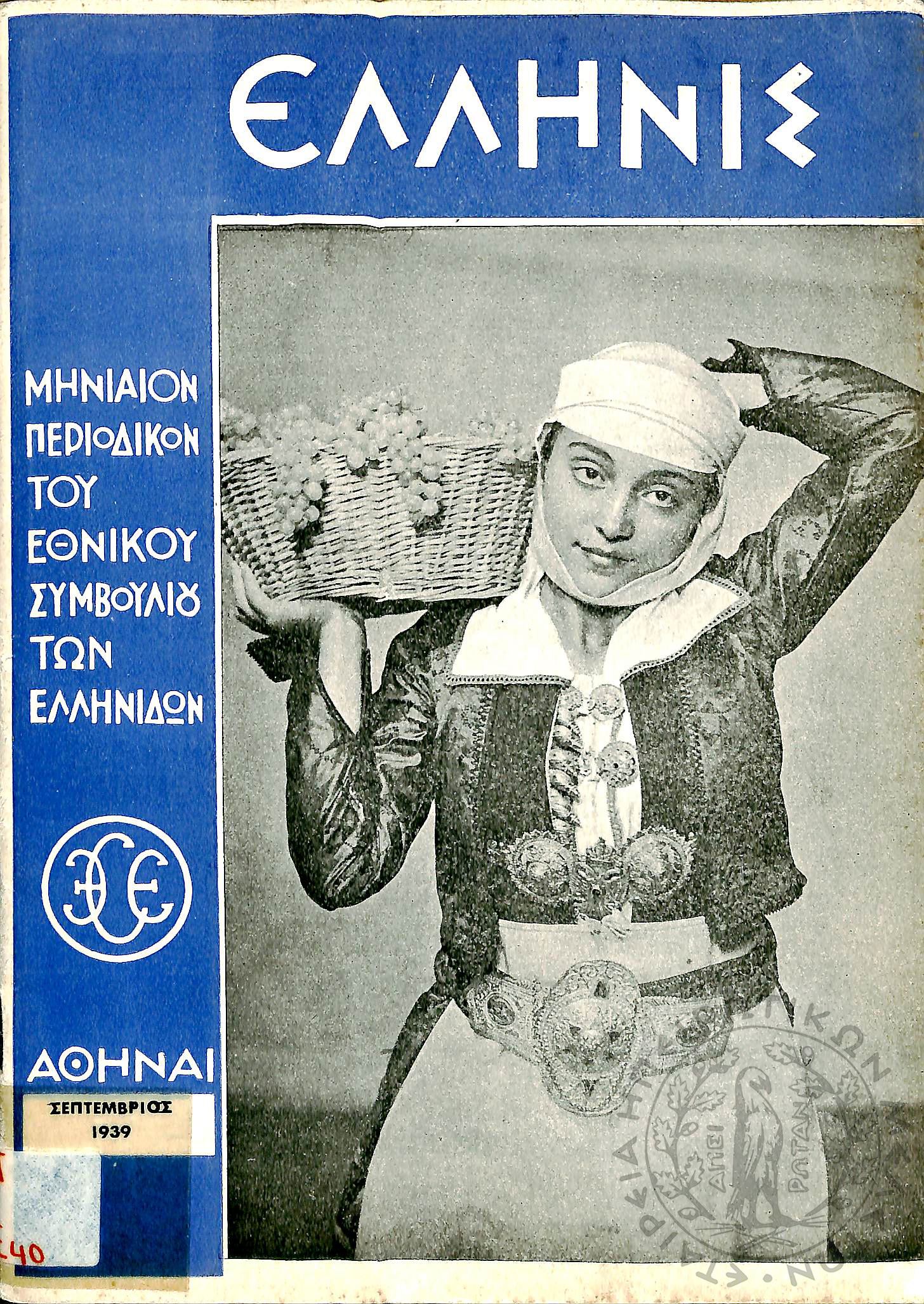 Ελληνίς: μηνιαίον περιοδικόν του Εθνικού Συμβουλίου των Ελληνίδων (1939, τεύχ. 9)Έτος ΙΘ΄, τεύχ. 9...