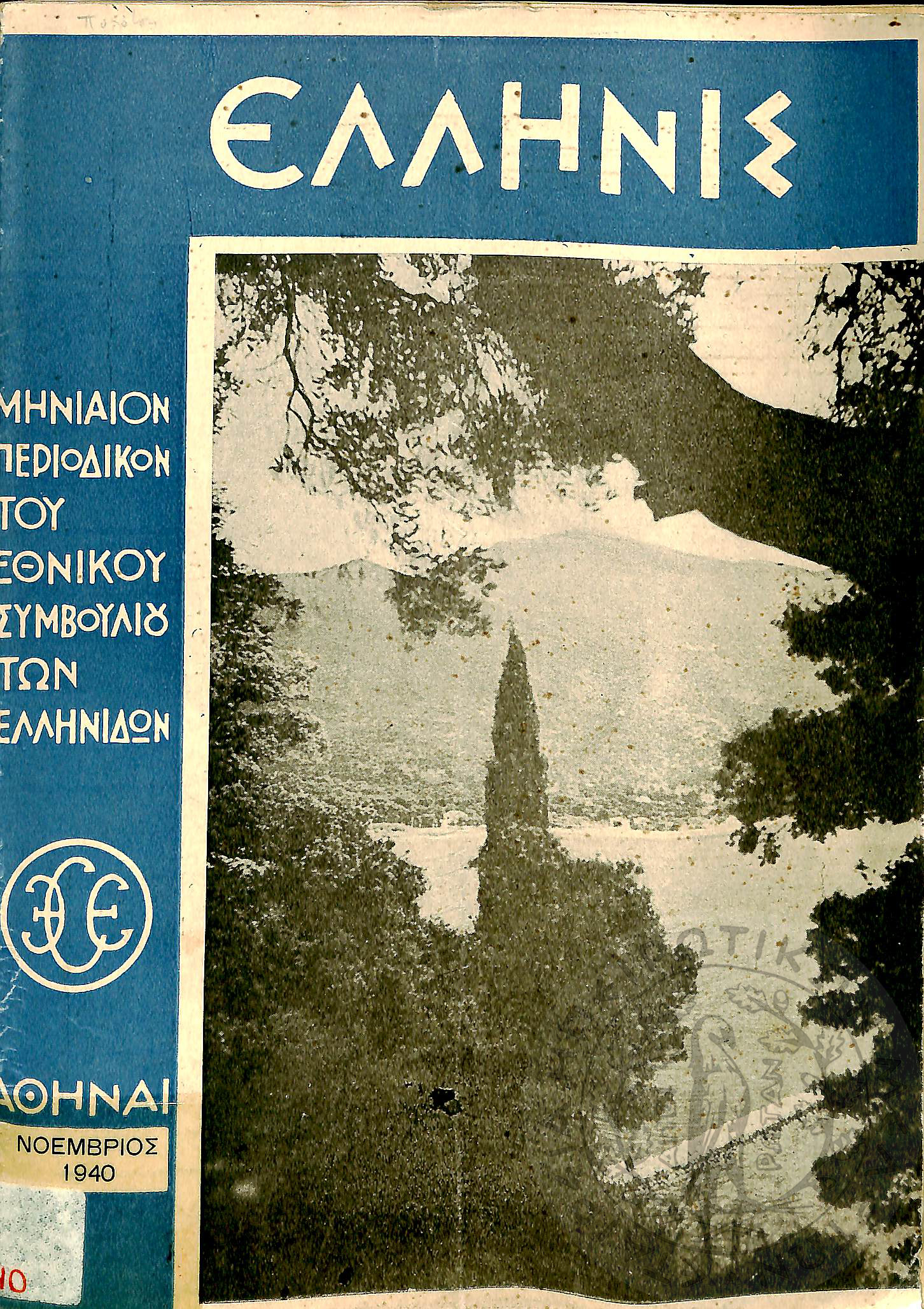 Ελληνίς: μηνιαίον περιοδικόν του Εθνικού Συμβουλίου των Ελληνίδων (1940, τεύχ. 11)Έτος Κ΄, τεύχ. 11...