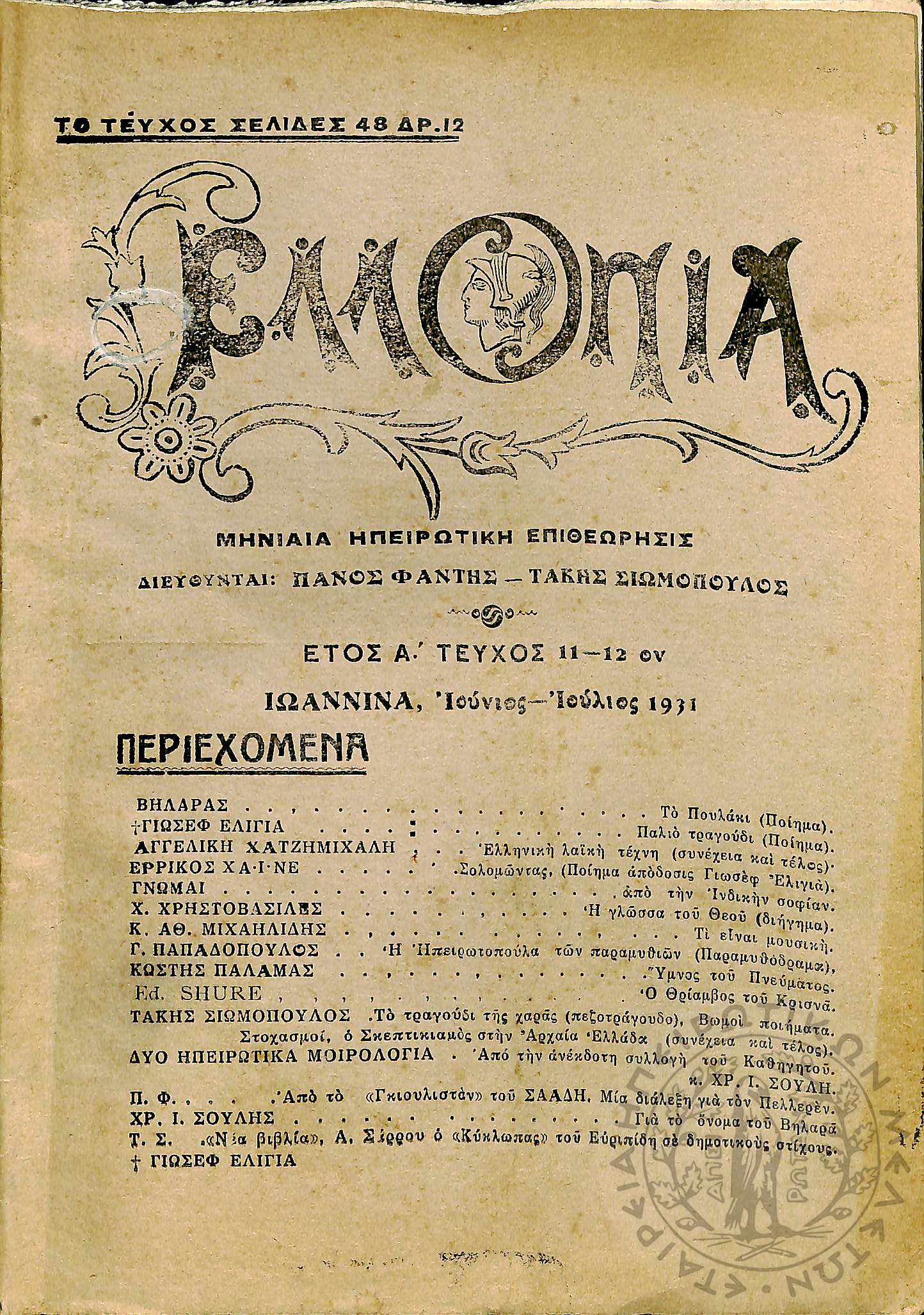 Ελληνίς: μηνιαίον περιοδικόν του Εθνικού Συμβουλίου των Ελληνίδων (1939, τεύχ. 12)Έτος ΙΘ΄, τεύχ. 12...
