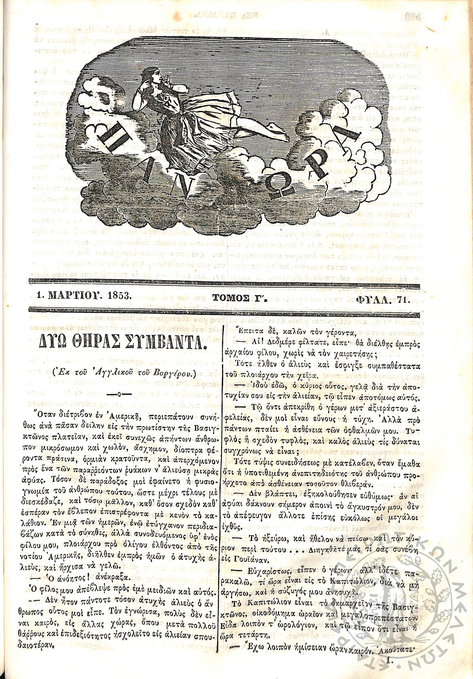 Πανδώρα: σύγγραμμα περιοδικόν εκδιδόμενον δις του μηνός (Τόμ. 3, τεύχ. 71)