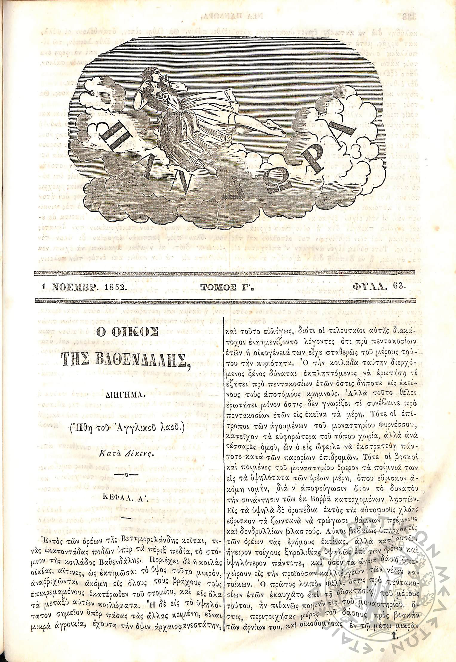 Πανδώρα: σύγγραμμα περιοδικόν εκδιδόμενον δις του μηνός (Τόμ. 3, τεύχ. 63)