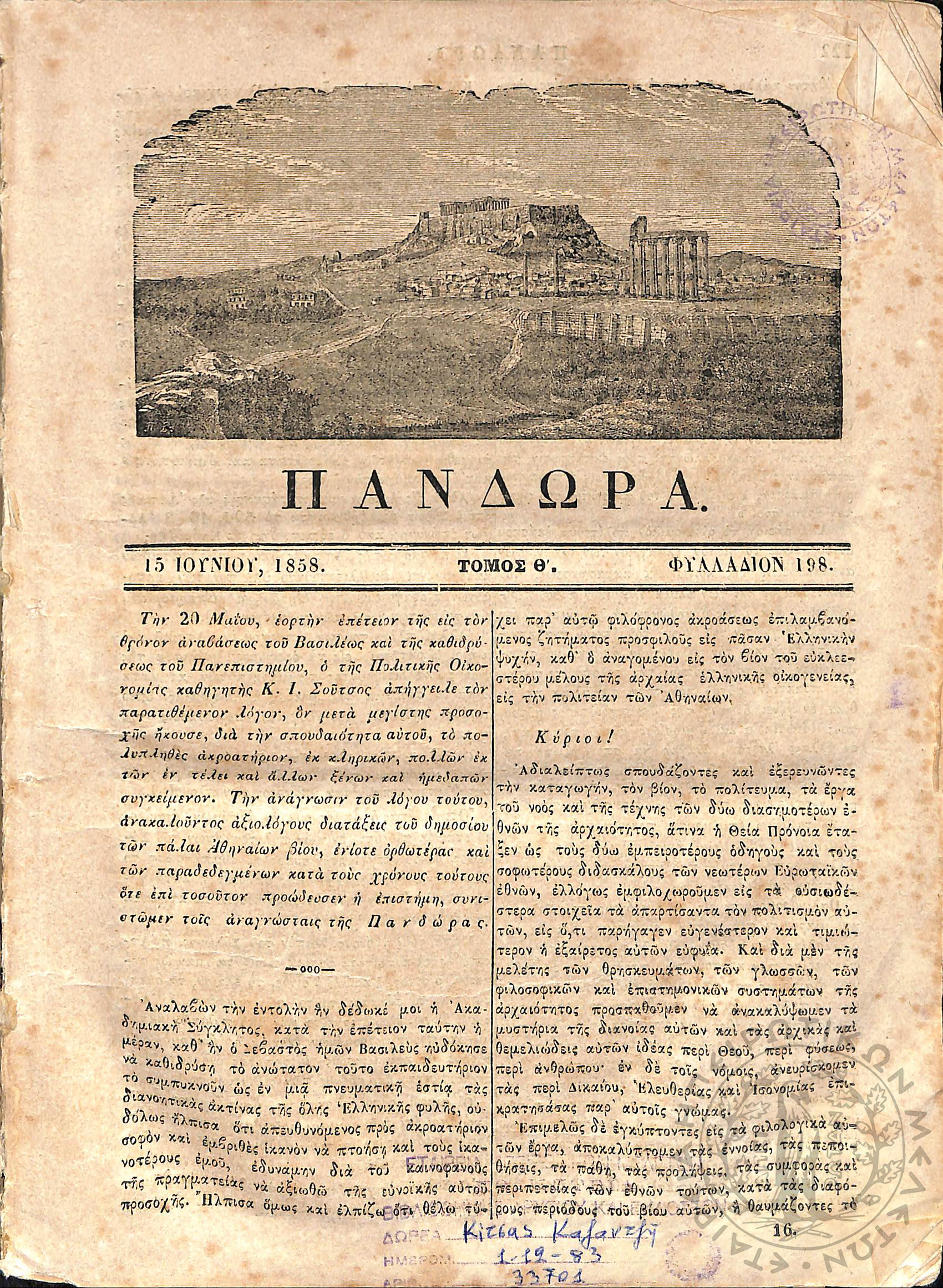 Πανδώρα: σύγγραμμα περιοδικόν εκδιδόμενον δις του μηνός (Τόμ. 9, τεύχ. 198)