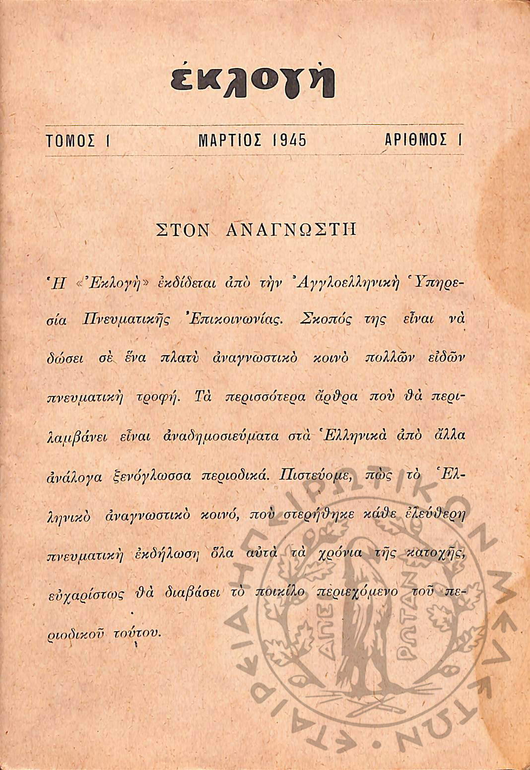 Εκλογή (τόμ. Α΄, τεύχ. 1)